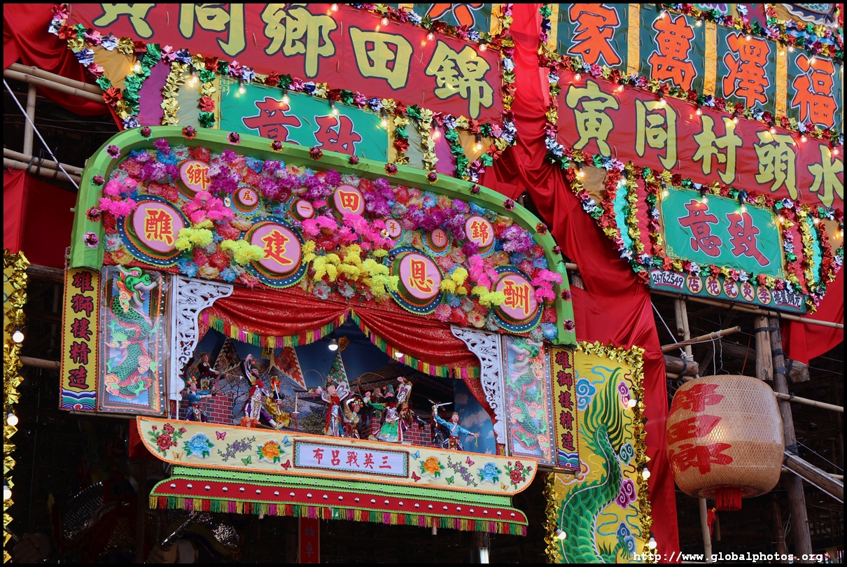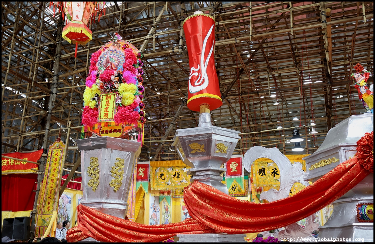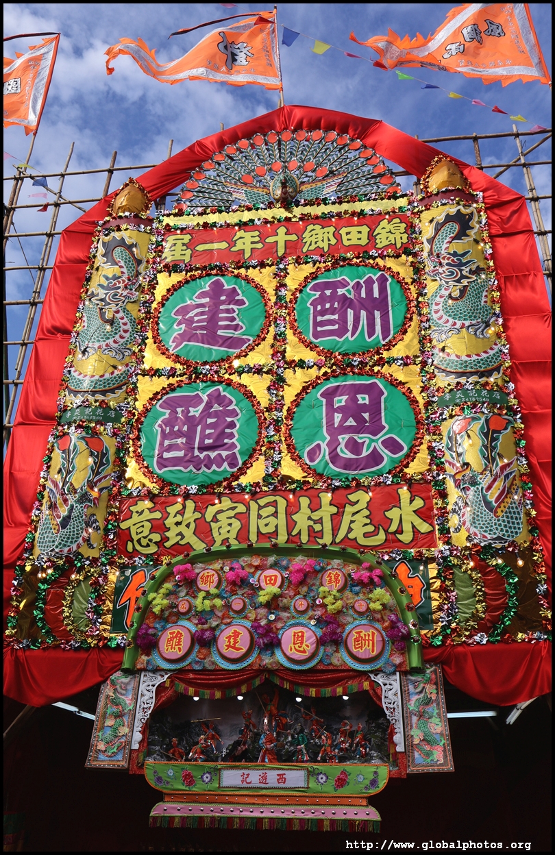 Once every 10 years, Kam Tin's villagers put on an elaborate show for a festival with Taoist rituals and performances. Its history goes back to 1685 to commemorate 2 government officials from the Qing Dynasty that assisted the Tang clan to return to Kam Tin after coastal regions were evacuated by force amidst war with Ming loyalists based in Taiwan.The 2025 edition took place in December and attracted huge crowds. It gained particular attention thanks to a massive bamboo scaffolding hall, which set a Guinness World Record as the world's largest temporary bamboo altar. It was made with over 25,000 bamboo poles, 3500 fir logs, and zinc sheets, taking more than 2 months to complete. The use of bamboo has been thrown into the spotlight during this time as it was initially blamed for the massive fire at Tai Po's Wang Fuk Court. Even before the tragedy, the government had proposed to phase out bamboo scaffolding in favour of metal, a fairly controversial topic. Bamboo theatres started appearing in Hong Kong in the late 19th century and were initially covered with palm leaves and canvas. The fire-prone materials were replaced with zinc sheets in the 1970s. Outside, over 100 flower boards decorate the festival grounds. Believed to originate from Chinese archway or palace decorations, flower boards are widely used in traditional festivals and inaugurations. They are crafted with bamboo, coloured paper, and plastic, although in the past fresh flowers were used.