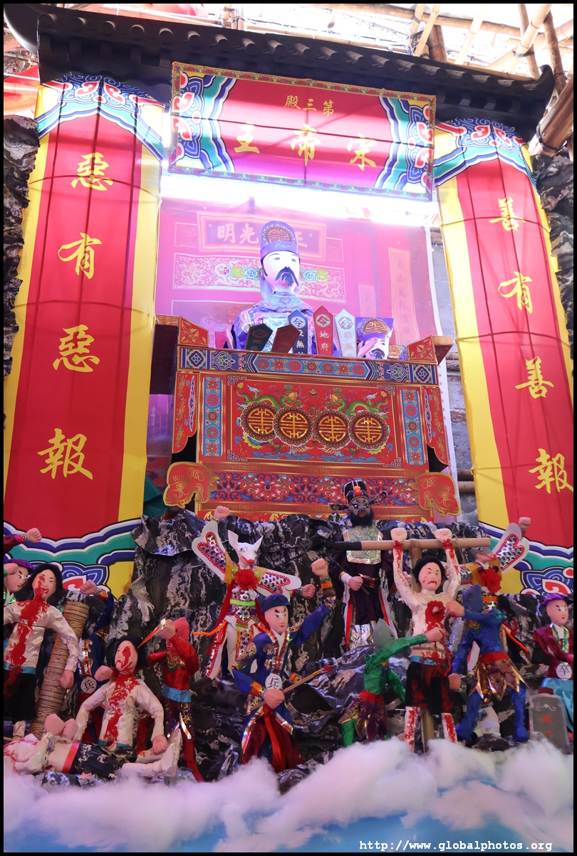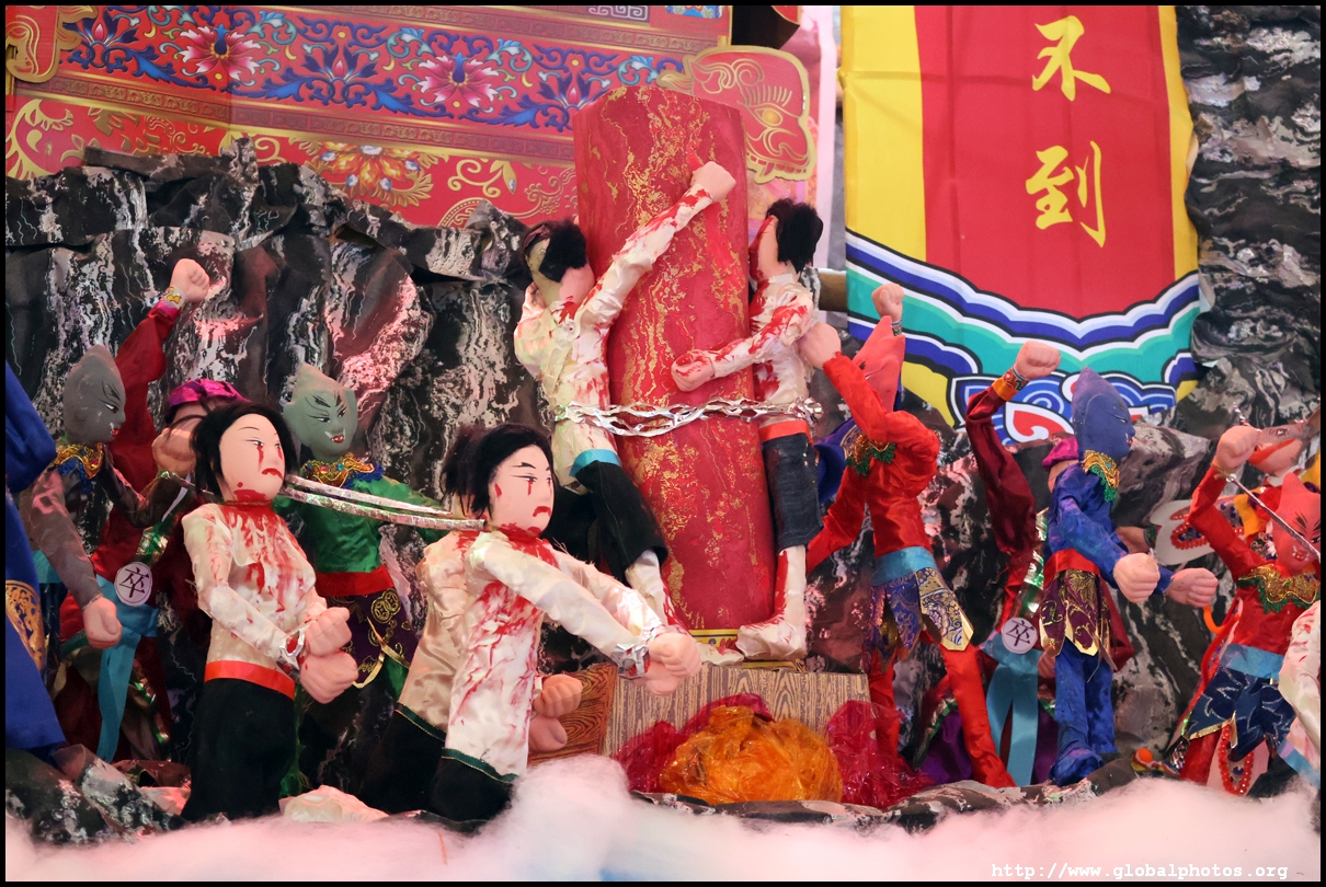 Inside, there is a huge space with a lot of exhibitions about their clan, culture, and history. There is a huge diorama display showing what happens to people who commit various vices and their punishments in hell.