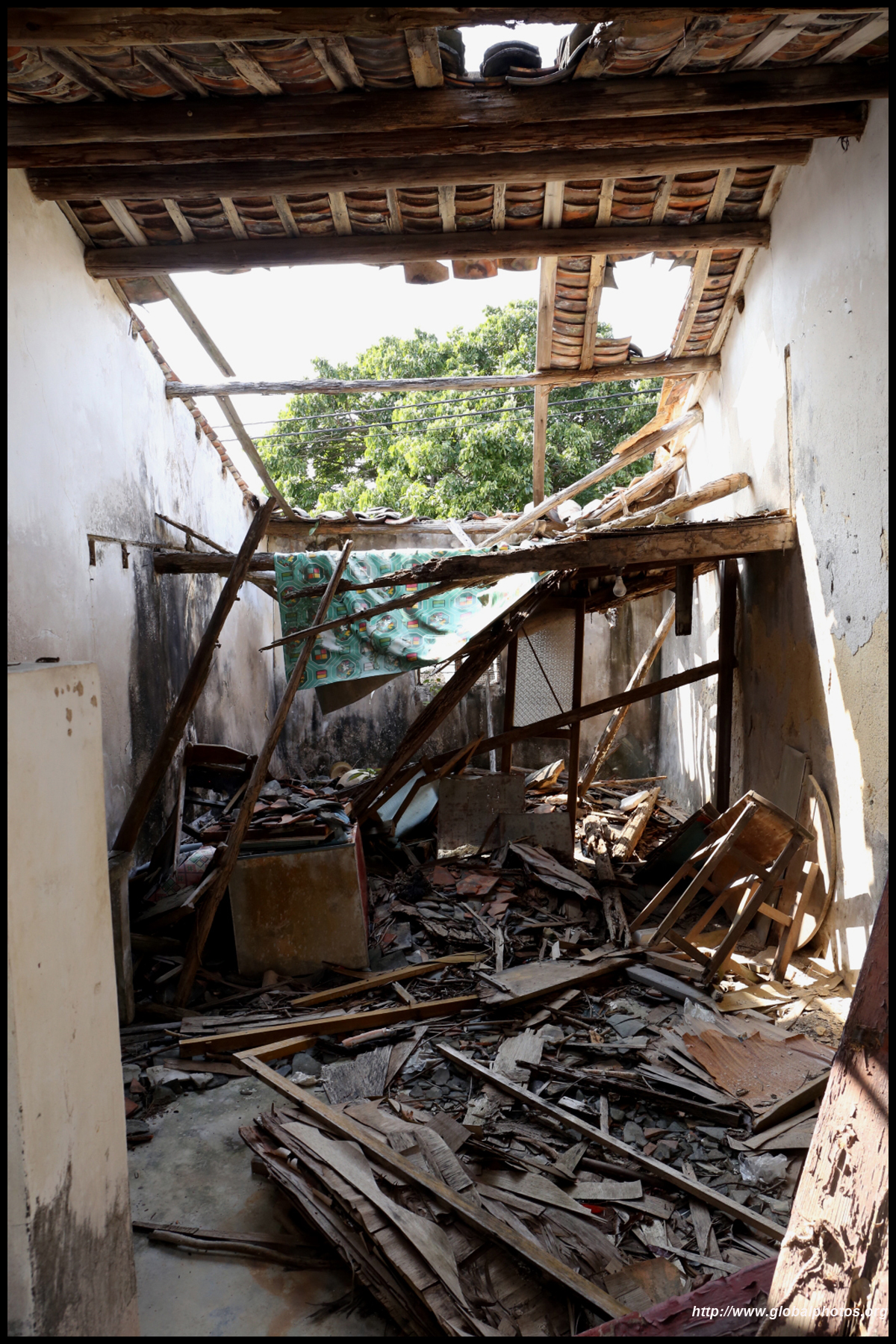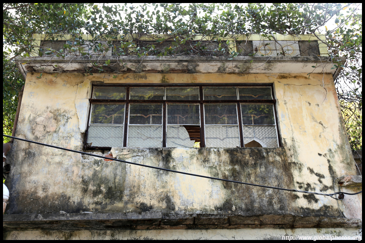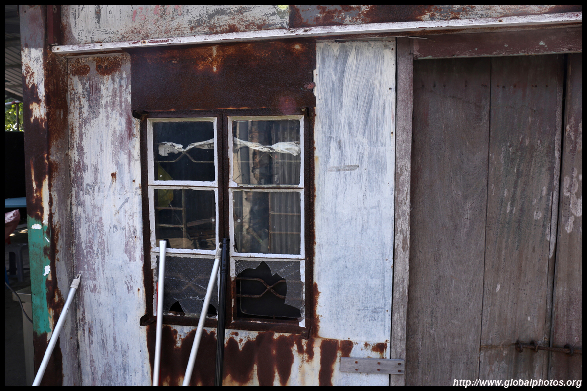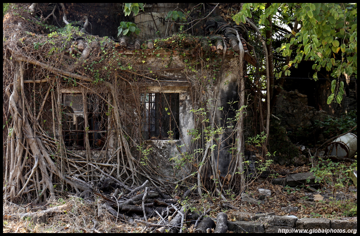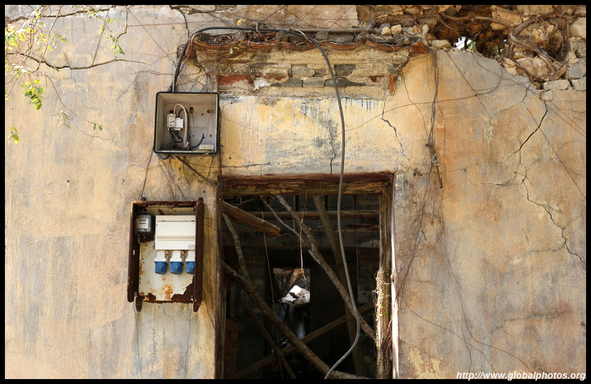 There is a mix of both modern buildings and dilapidated abandoned structures along the island's main street.