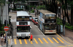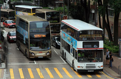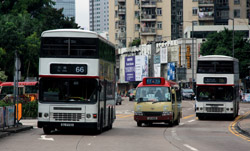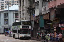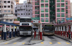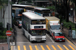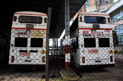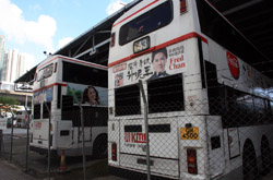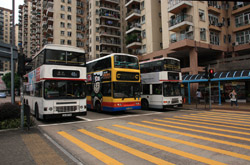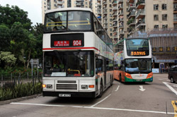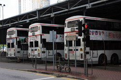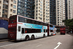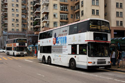 Many more of these older air-conditioned double deckers are parked at the Lai Chi Kok depot.