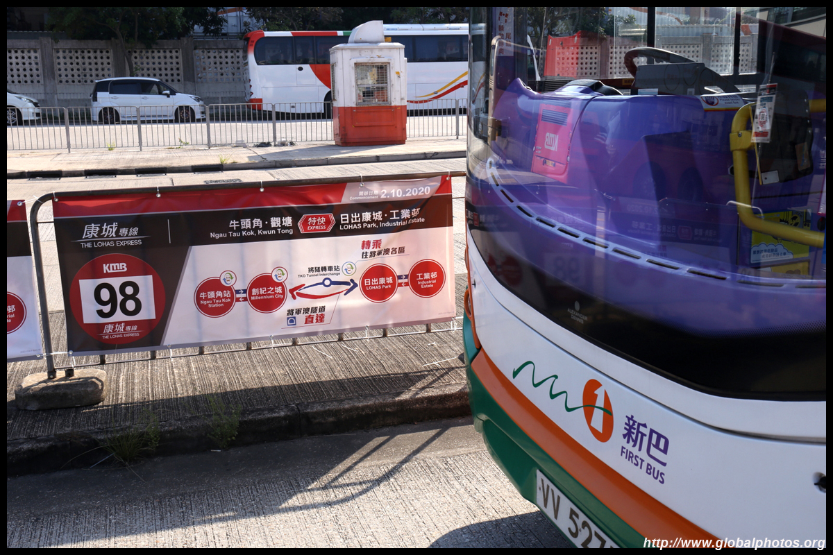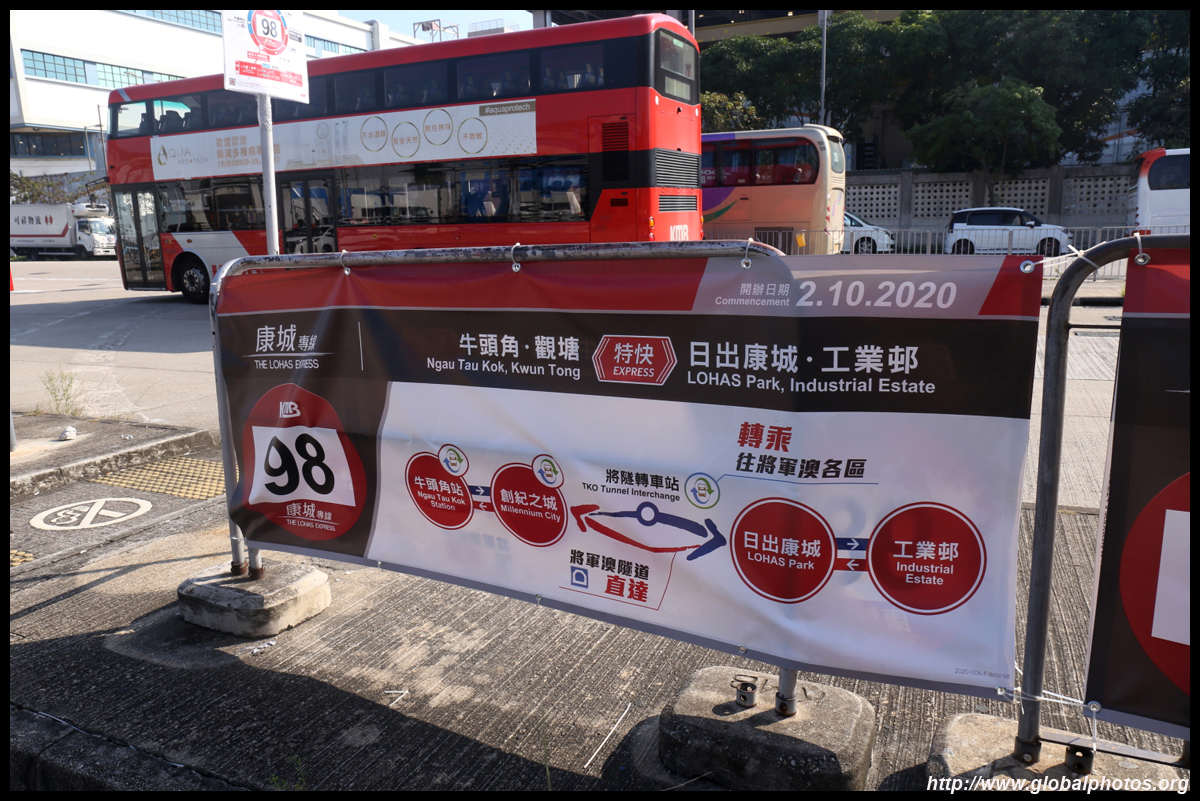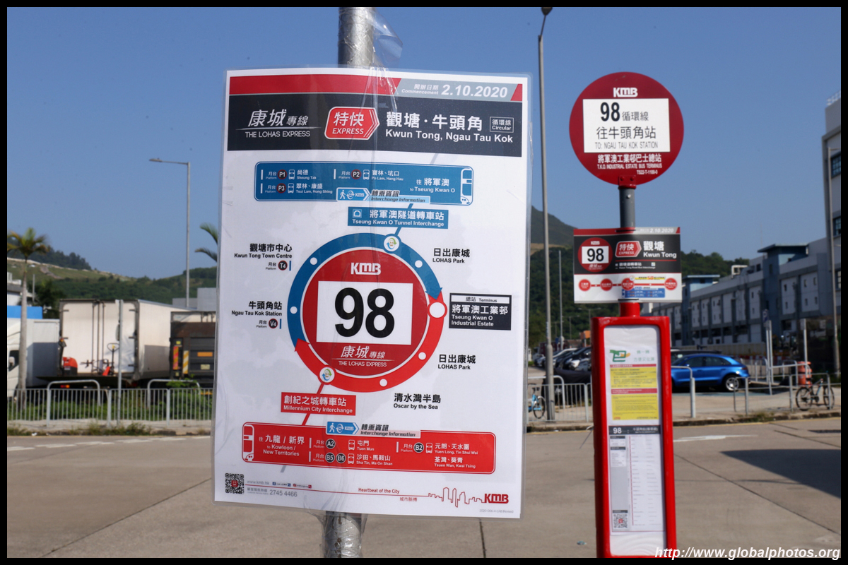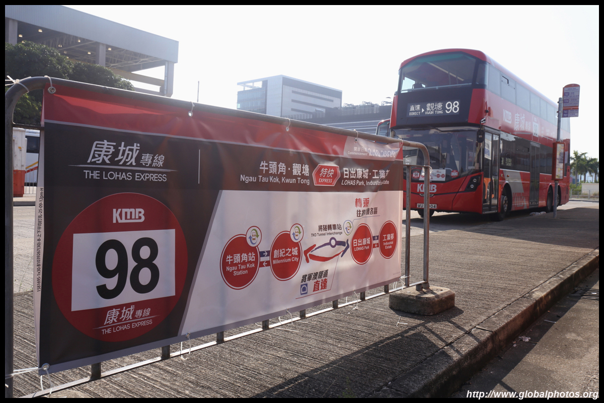 Route 98 is designed to be an express route linking the otherwise desolate LOHAS Park with Kowloon East. With sparse train frequencies, journey time on the bus can beat the train and in more comfort. The terminus is just beyond the residential area in an industrial estate further south.