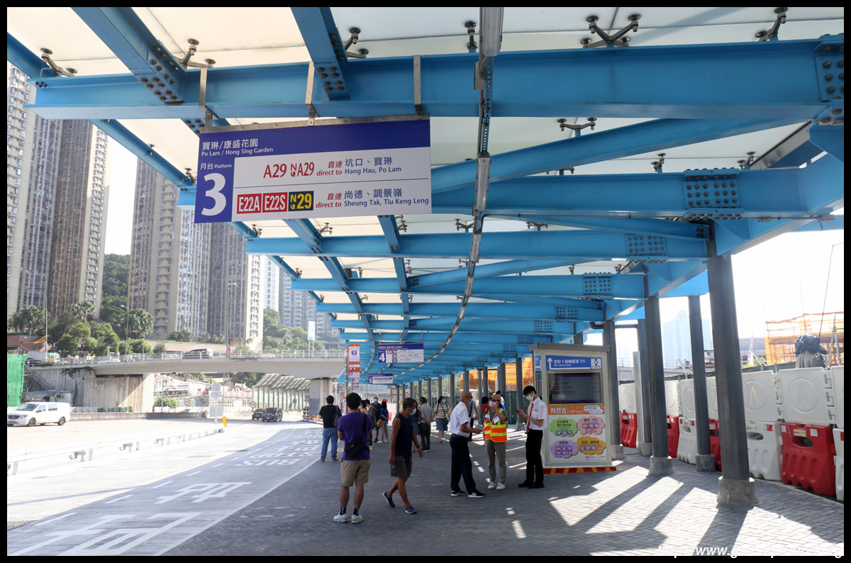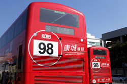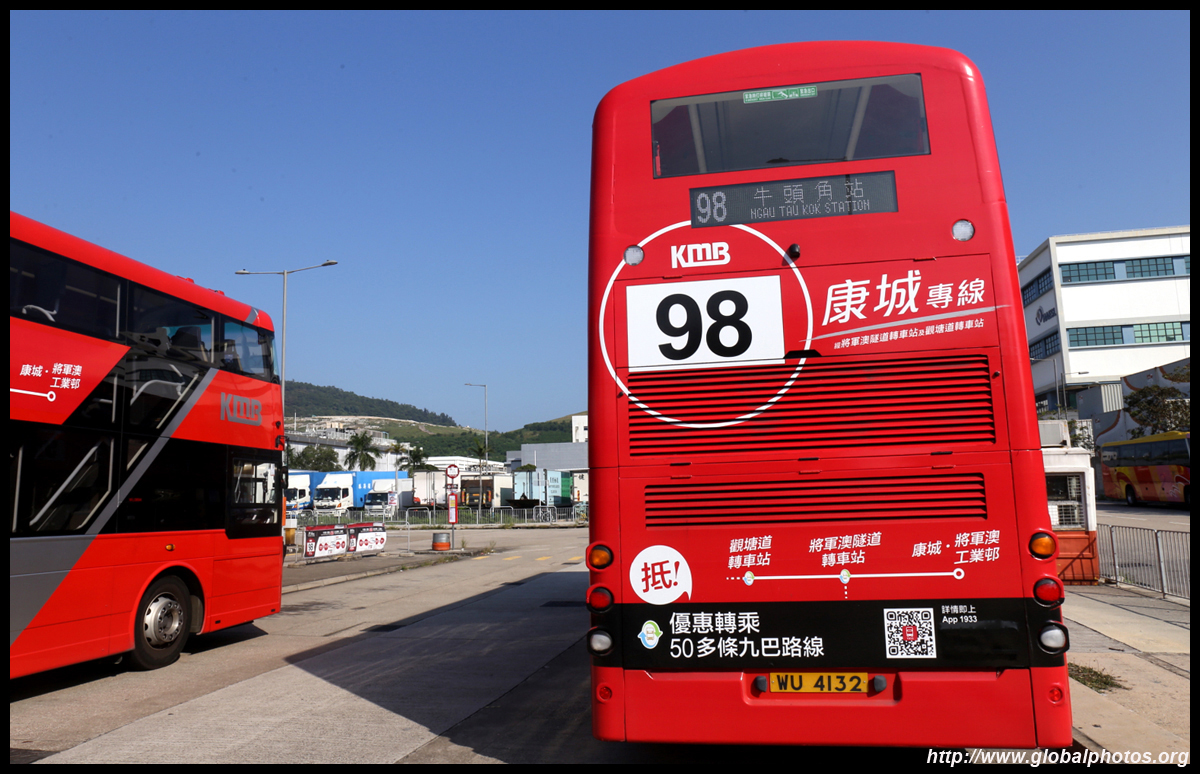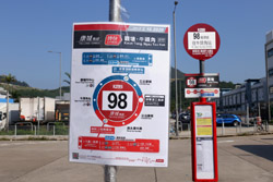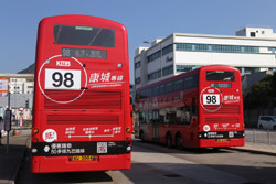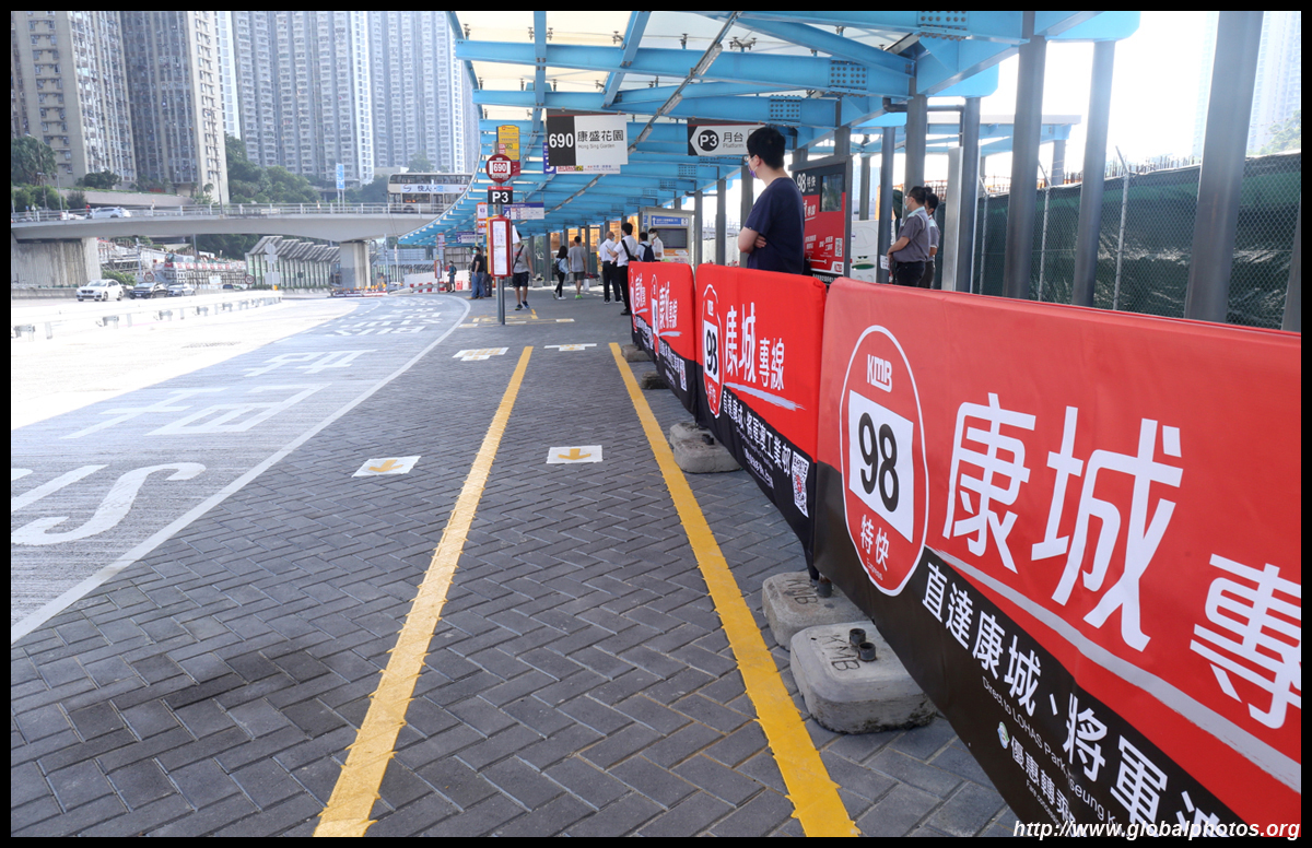 Route 98 is designed to be an express route linking the otherwise desolate LOHAS Park with Kowloon East. With sparse train frequencies, journey time on the bus can beat the train and in more comfort. The terminus is just beyond the residential area in an industrial estate further south.