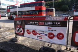 A new bus interchange at the Kowloon side of the Tseung Kwan O Tunnel opened today. It only applies for outbound traffic with 25 routes stopping here and offering interchange discounts. The structure is basic with a covered top, monitors showing arrival times, and a public toilet. KMB staff were on hand to give out promotion leaflets for their new 98 bus service that inaugurated on the same day and face mask covers.