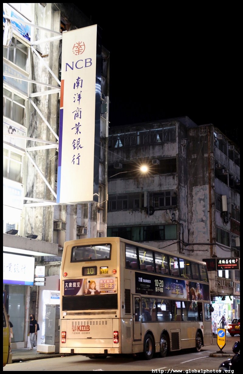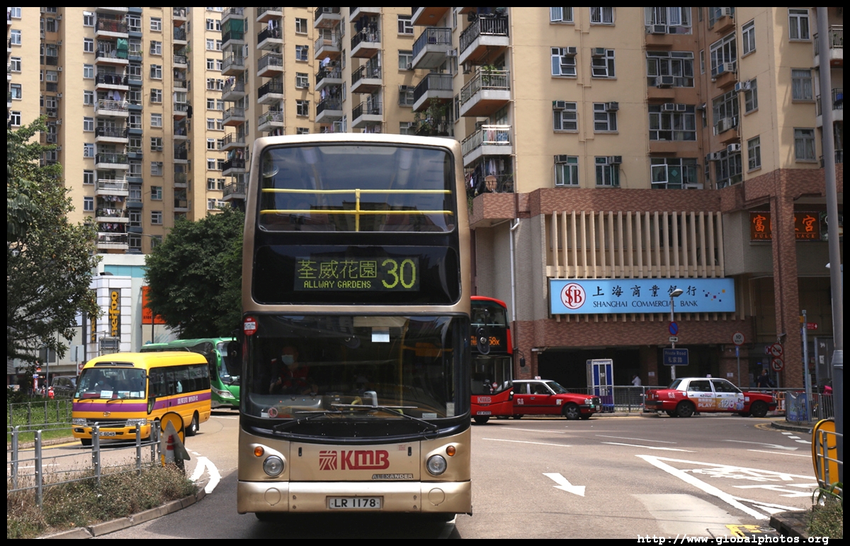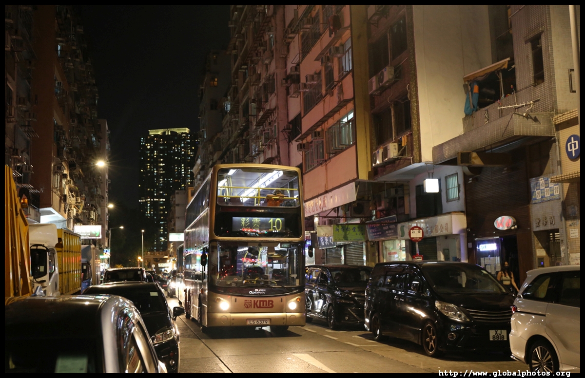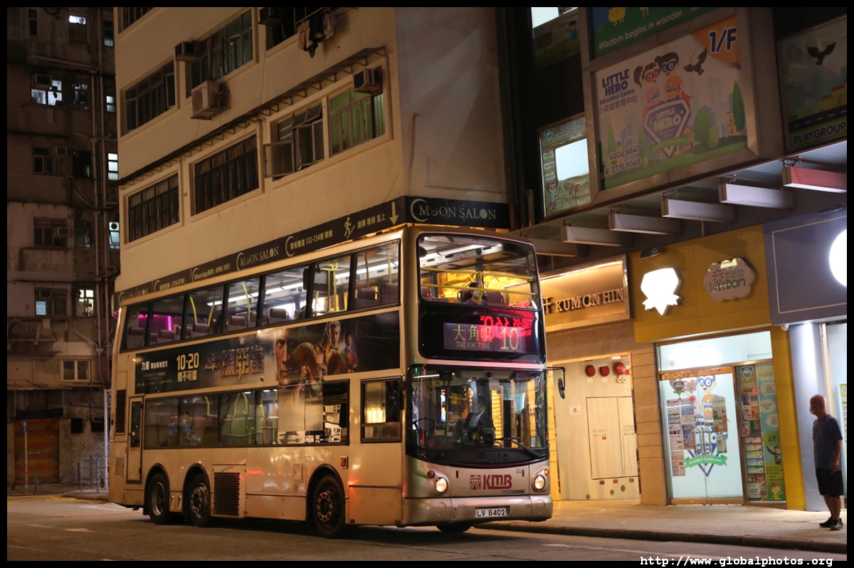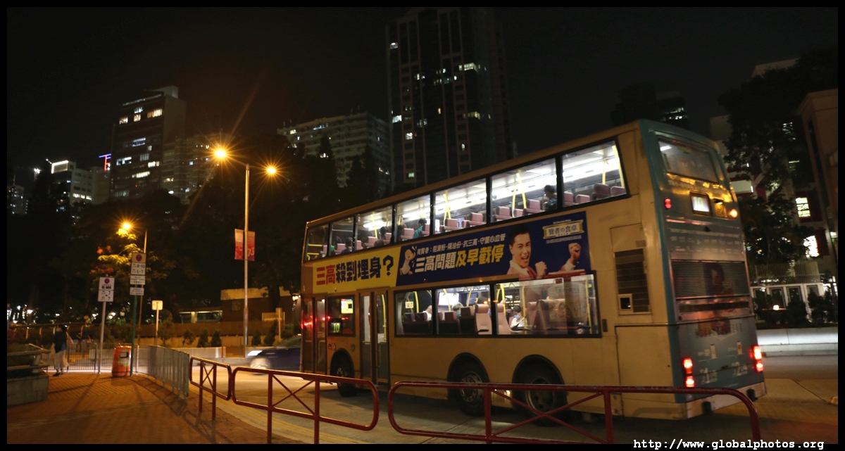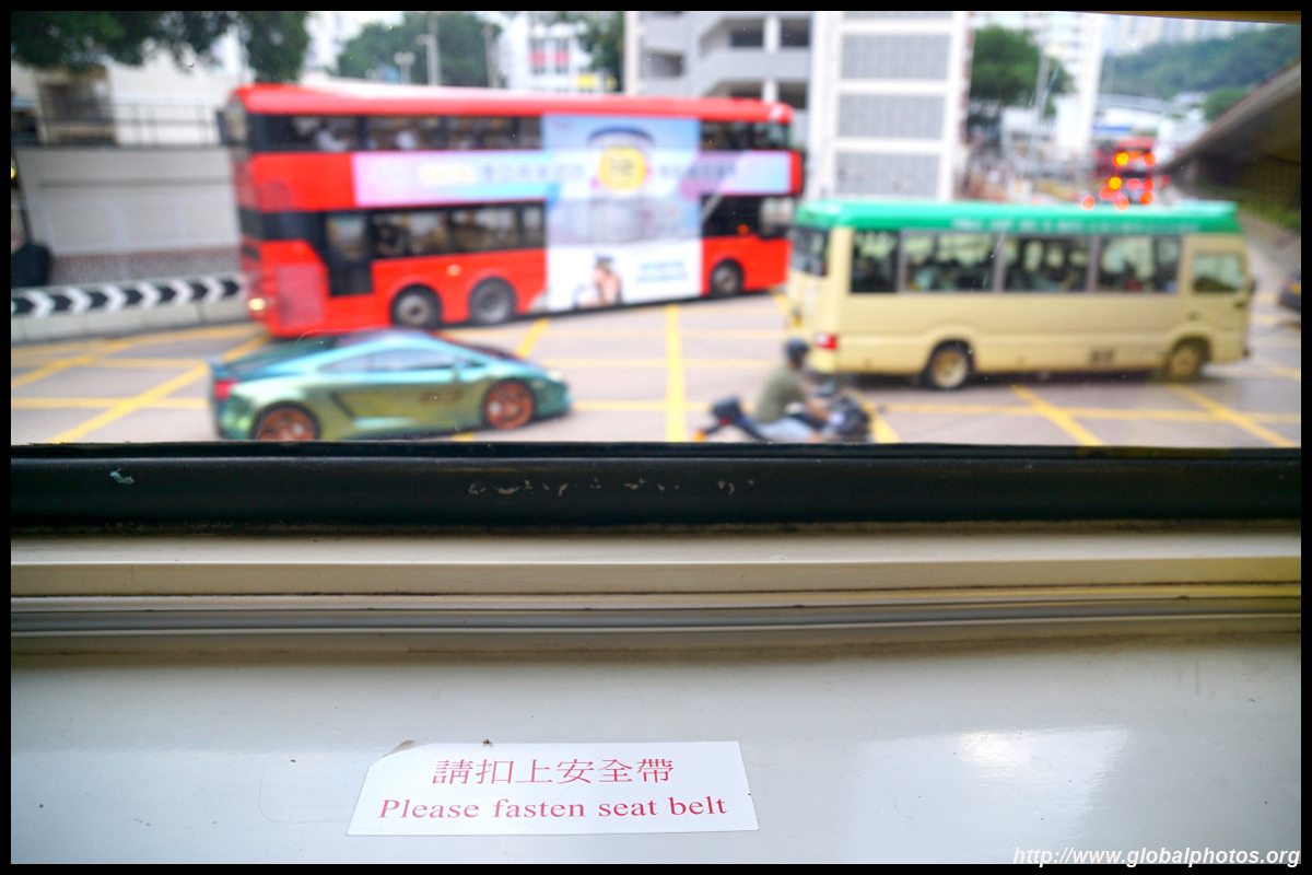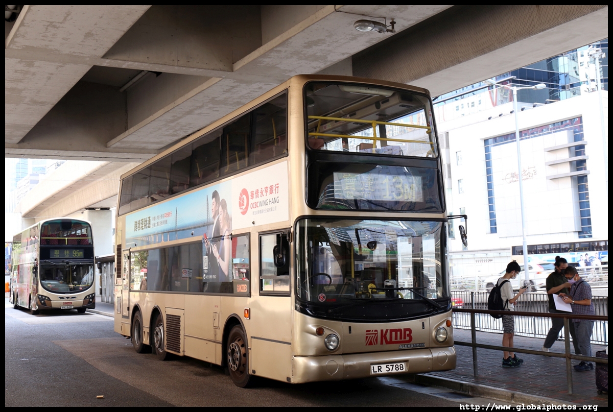 These buses have pink seats and the downstairs section has a long row of side-facing seats, a fairly unique arrangement.