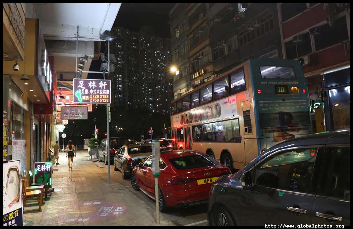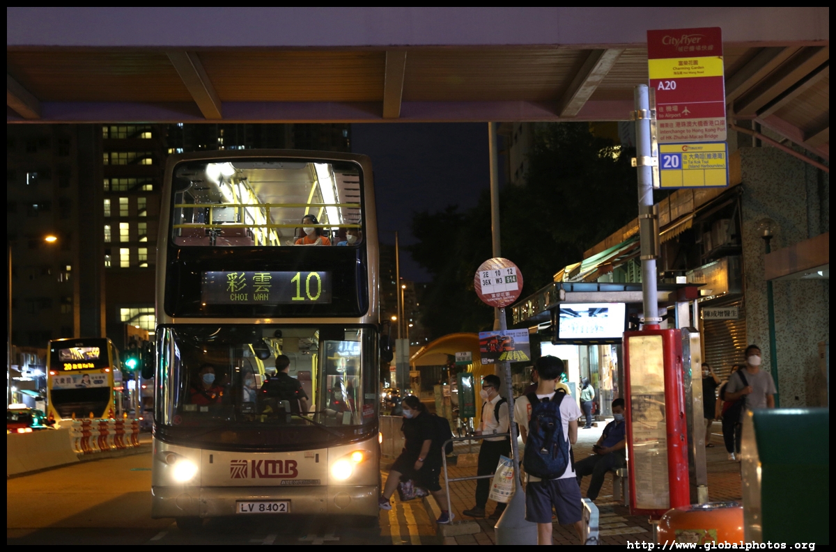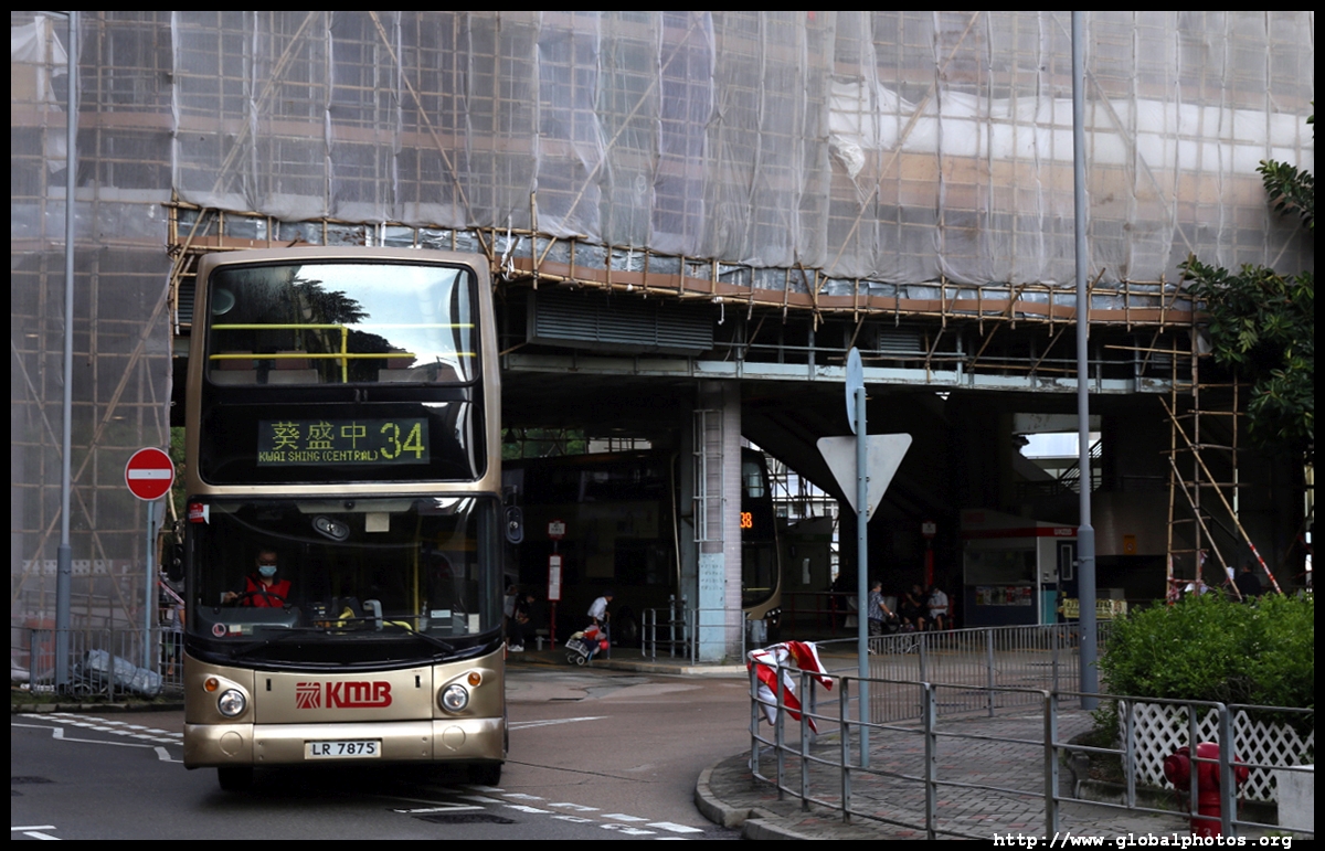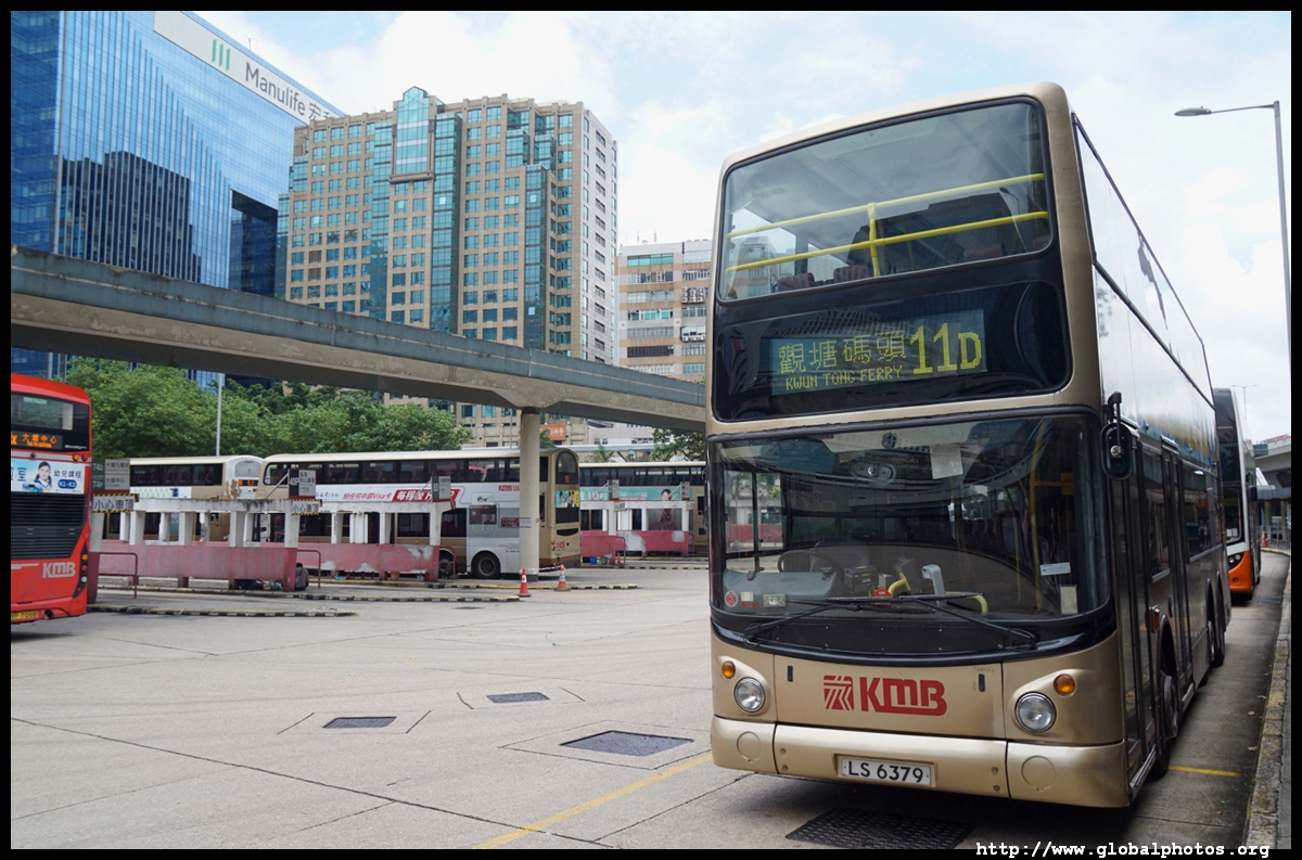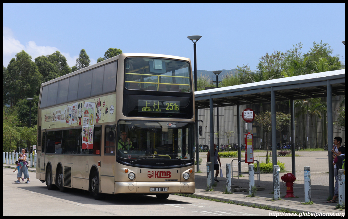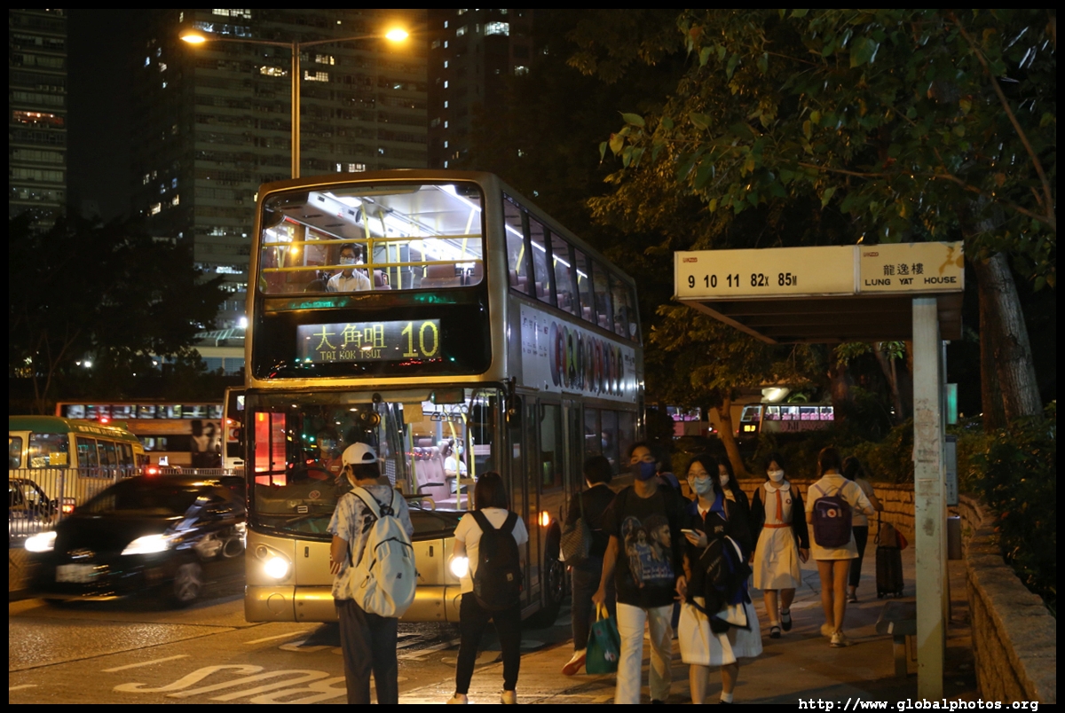 These buses have pink seats and the downstairs section has a long row of side-facing seats, a fairly unique arrangement.