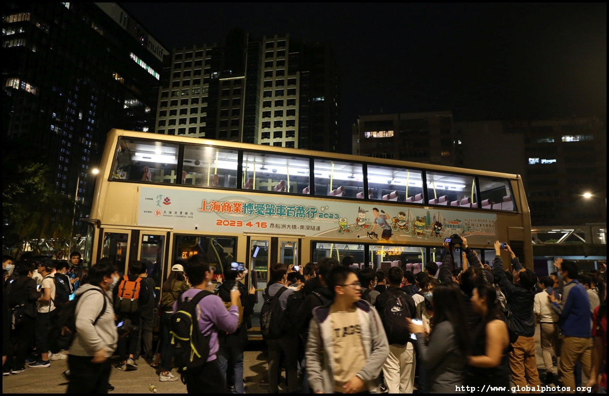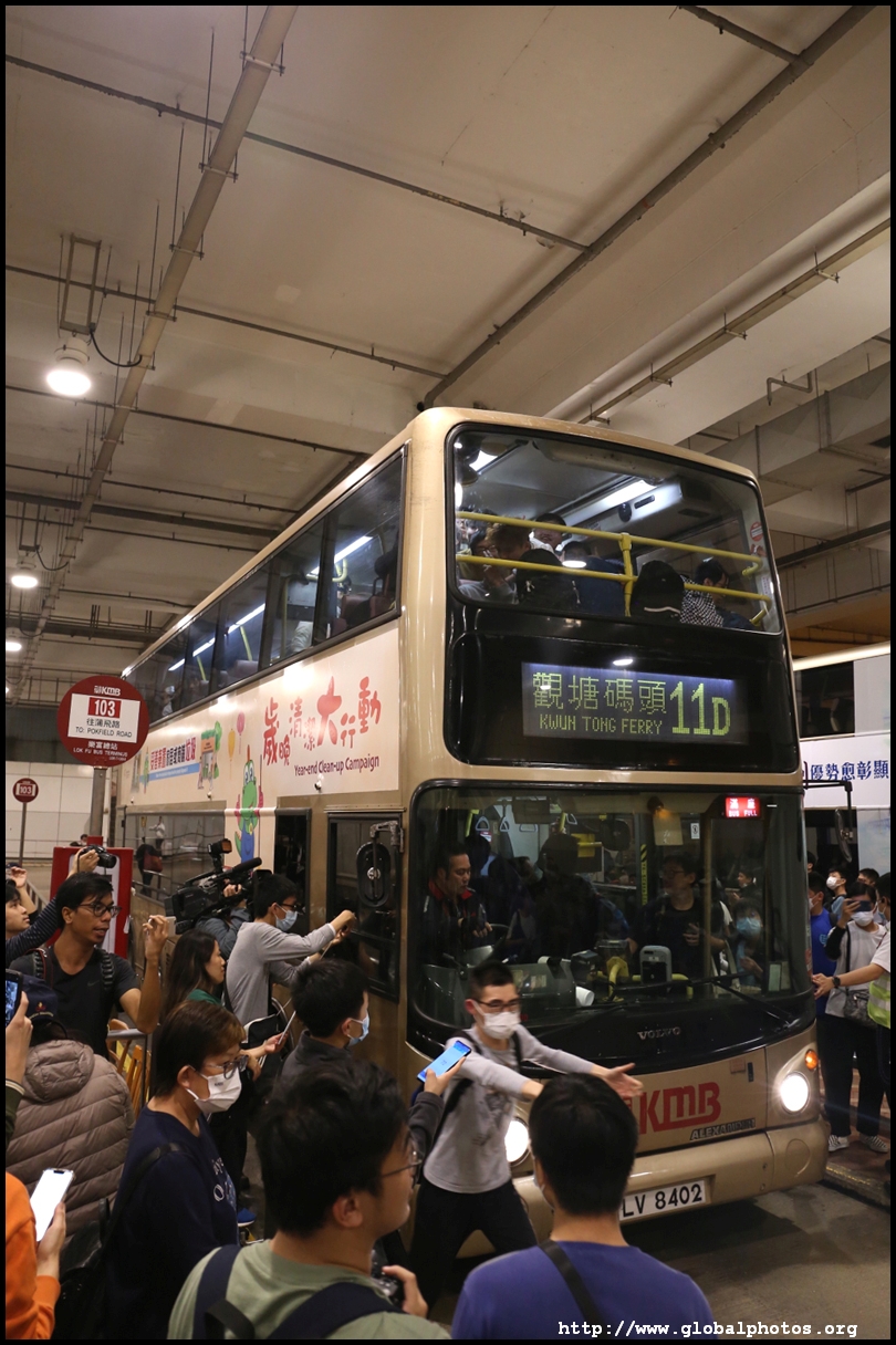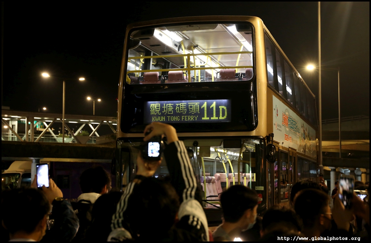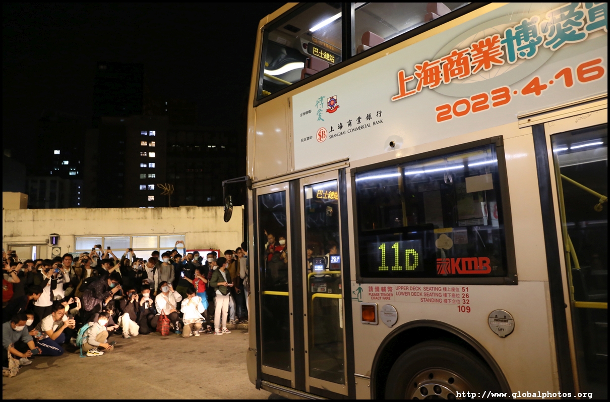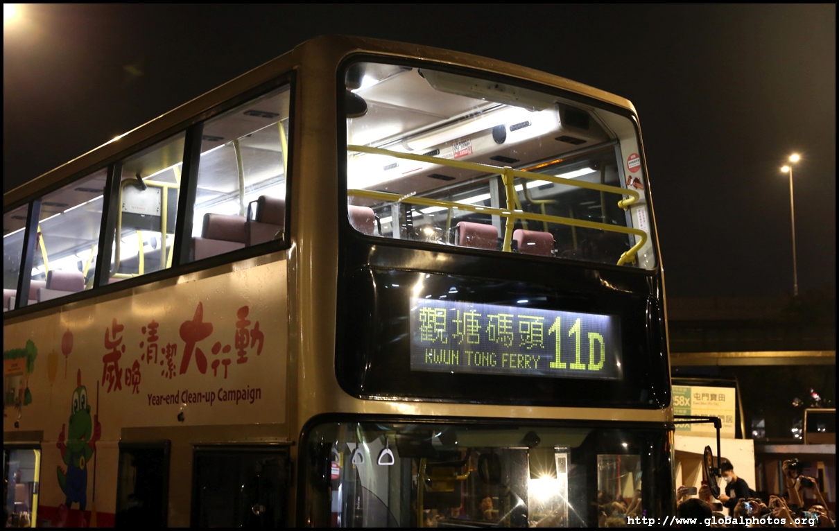 The large crowd moved to Kwun Tong's ferry pier, the end of the line, where the bus stopped for photos before heading back to the garage for retirement at around 11:30pm.