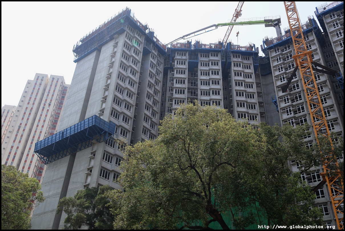 With a major public housing backlog and wait times of almost 6 years, the government is stepping up redevelopment and construction efforts. Across from Richland Gardens and next to the much older Kai Yip Estate in Kowloon Bay, a new public housing estate is under construction with expected completion in 2025-6. The project on Wang Chiu Road has 2 phases, with the first one having 2600 units while Phase 2 will provide 1500 more in towers that won't exceed 120m high.March 2024