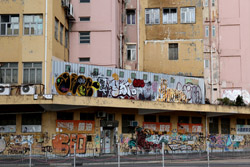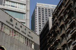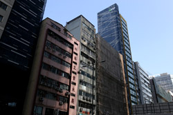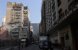 One street in, the scene is still primarily industrial with lots of car repair shops on the ground floor. This was the prevalent scene a decade ago. There are still afew of these buildings on Wai Yip Street itself.