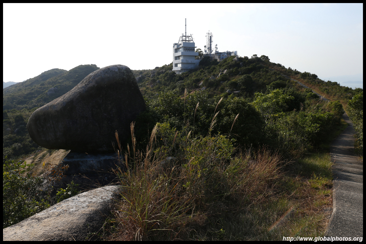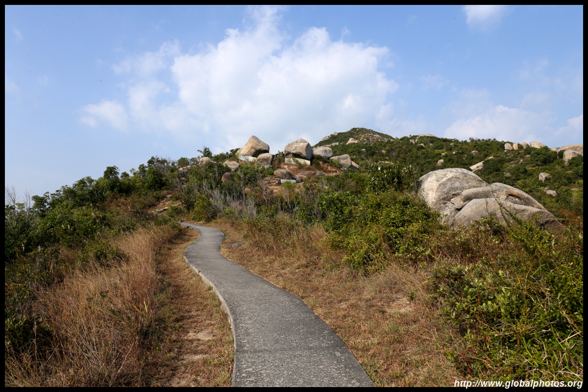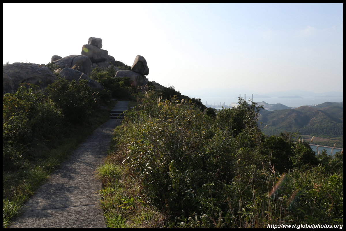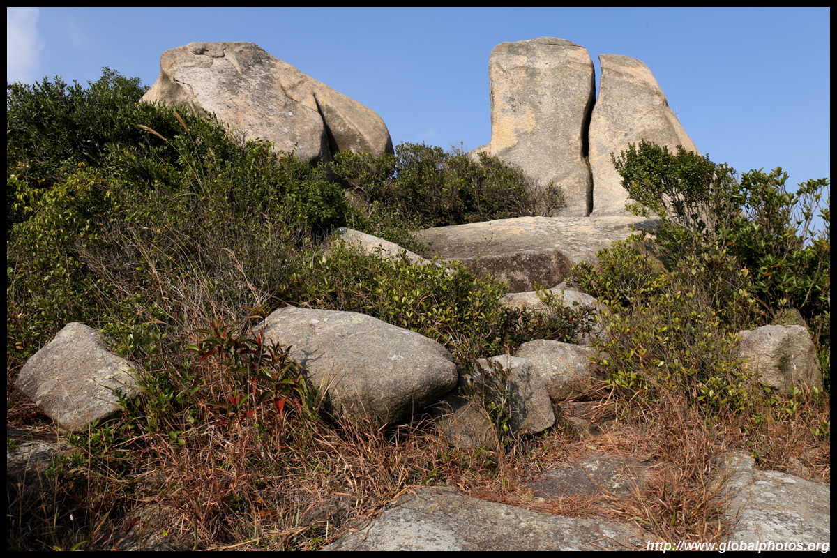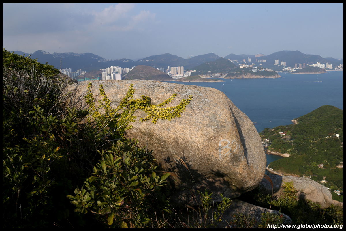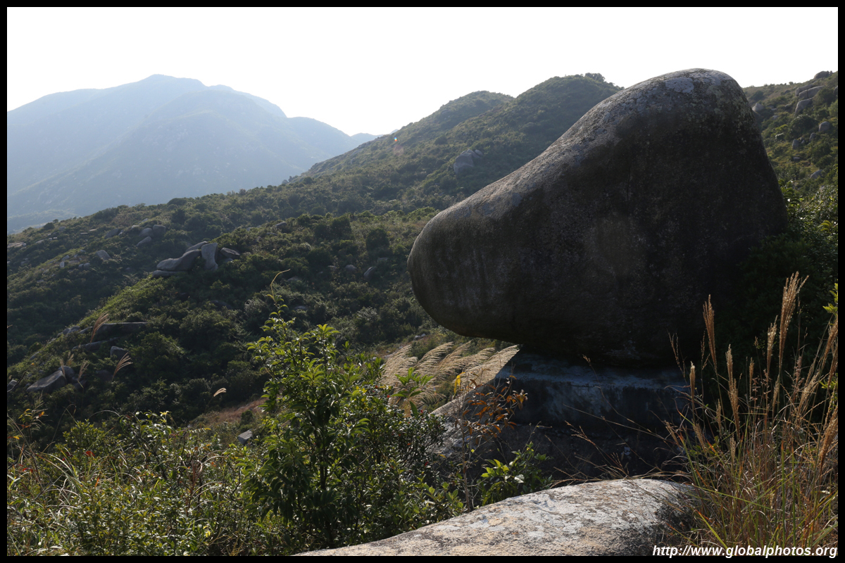 After the pavilion break, head back down to the intersection and continue up the hill ahead. If you want to give up at this point, the path on the left leads back to Sok Kwu Wan downhill. As you climb further to Ling Kok Shan, you will notice a number of large rocks hanging precariously along the hillsides They have been secured with concrete bases to prevent any surprises from rolling downhill.