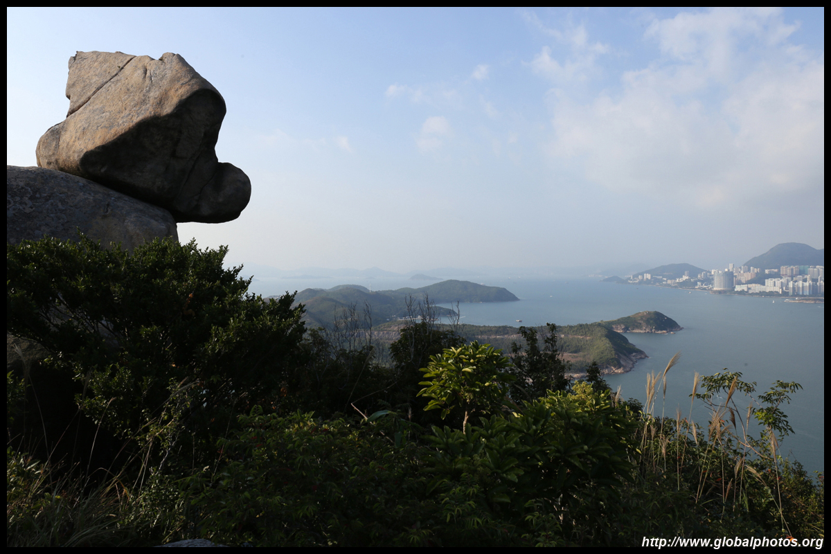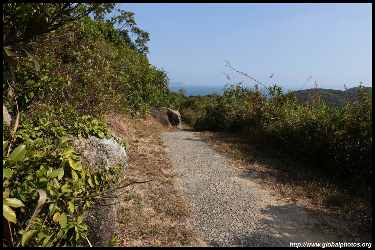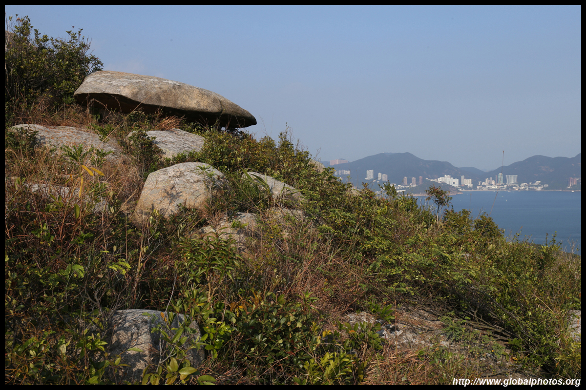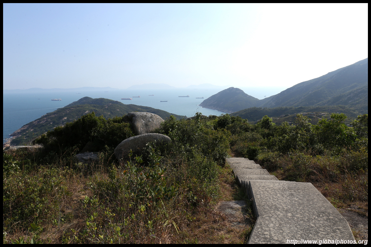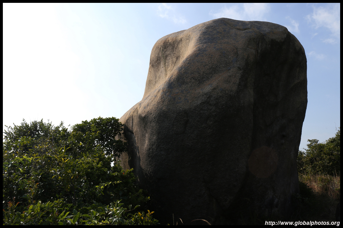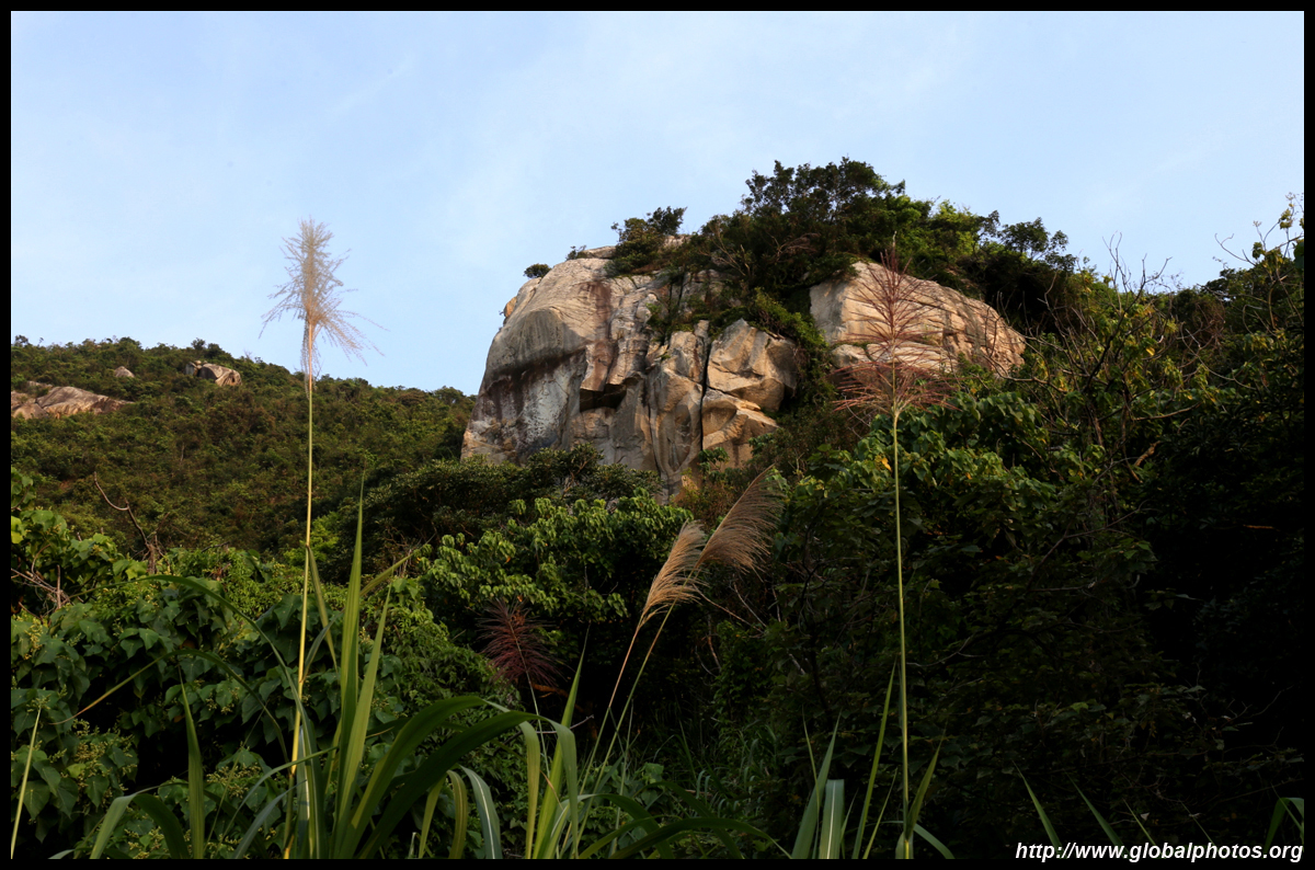 After the pavilion break, head back down to the intersection and continue up the hill ahead. If you want to give up at this point, the path on the left leads back to Sok Kwu Wan downhill. As you climb further to Ling Kok Shan, you will notice a number of large rocks hanging precariously along the hillsides They have been secured with concrete bases to prevent any surprises from rolling downhill.