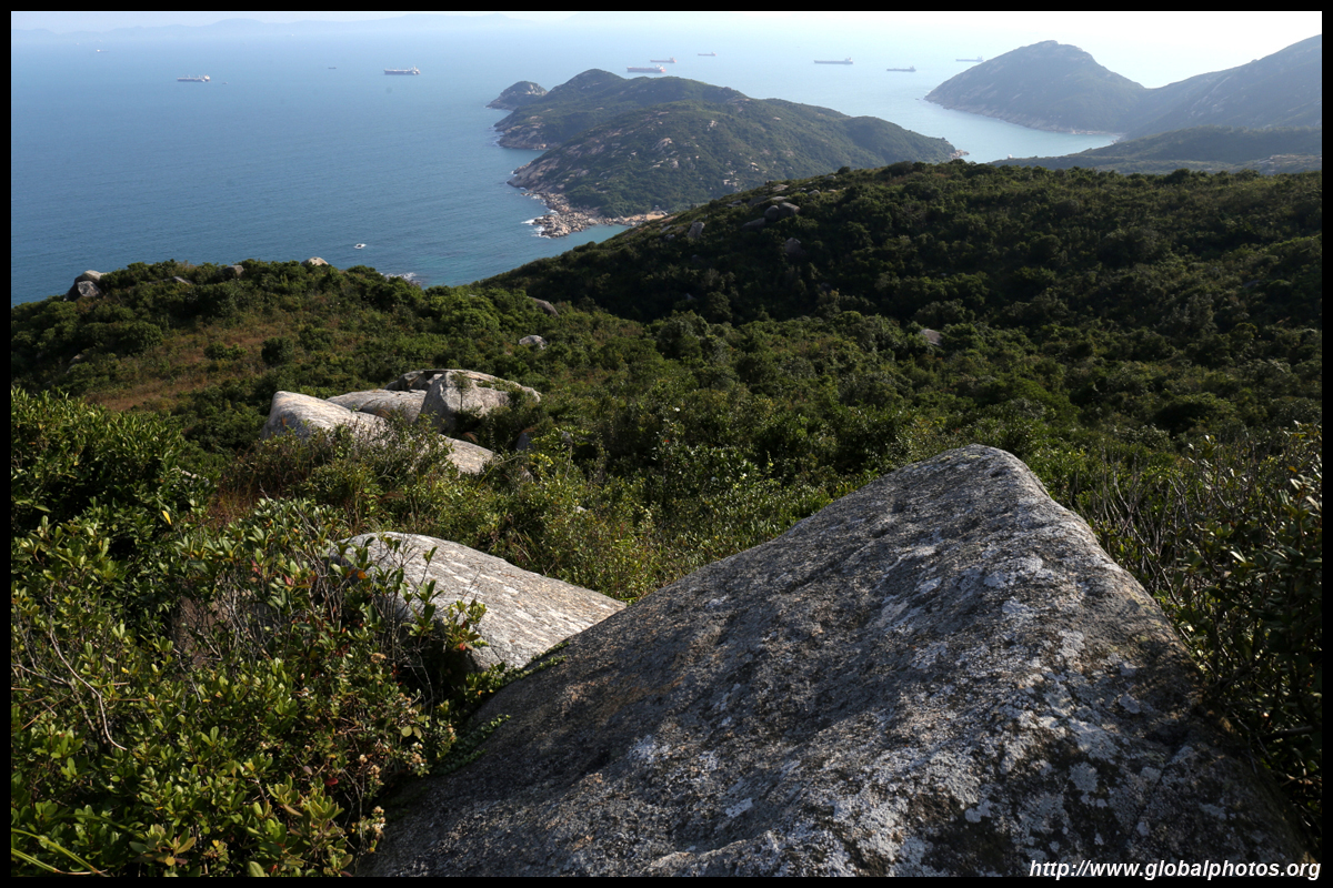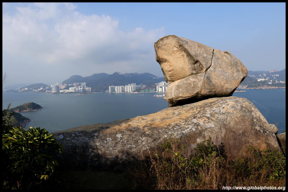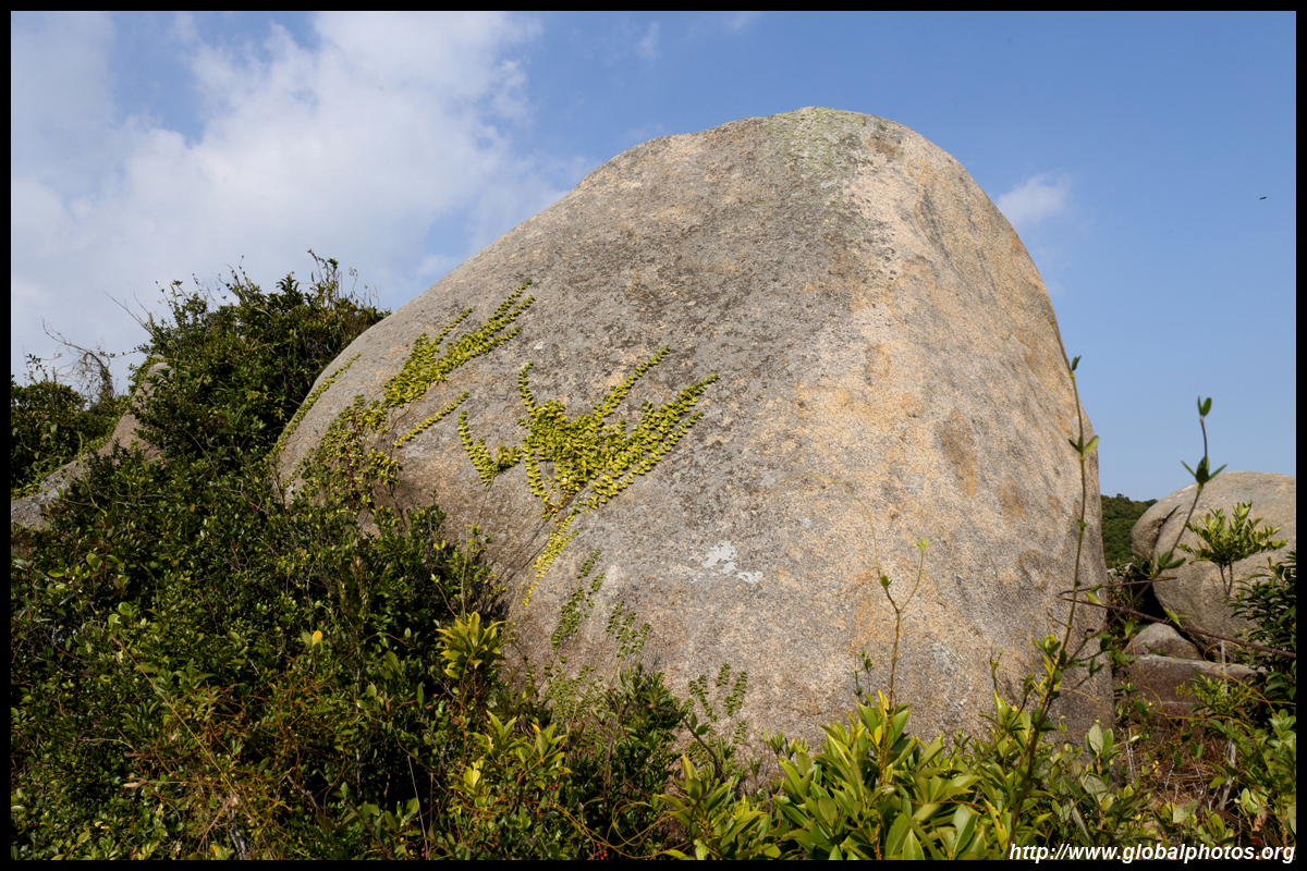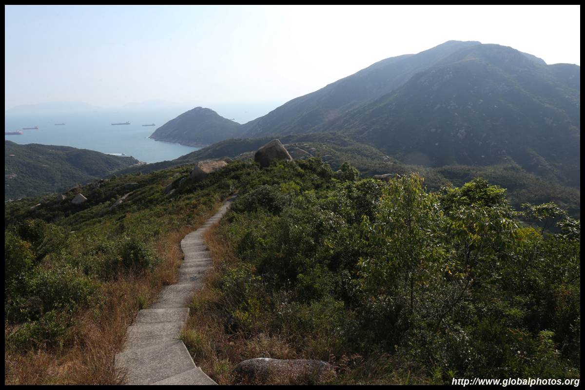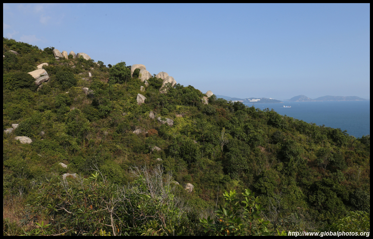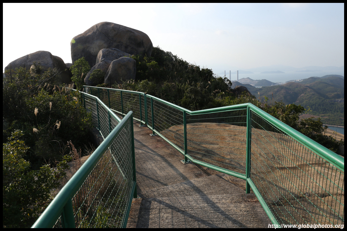 After the pavilion break, head back down to the intersection and continue up the hill ahead. If you want to give up at this point, the path on the left leads back to Sok Kwu Wan downhill. As you climb further to Ling Kok Shan, you will notice a number of large rocks hanging precariously along the hillsides They have been secured with concrete bases to prevent any surprises from rolling downhill.