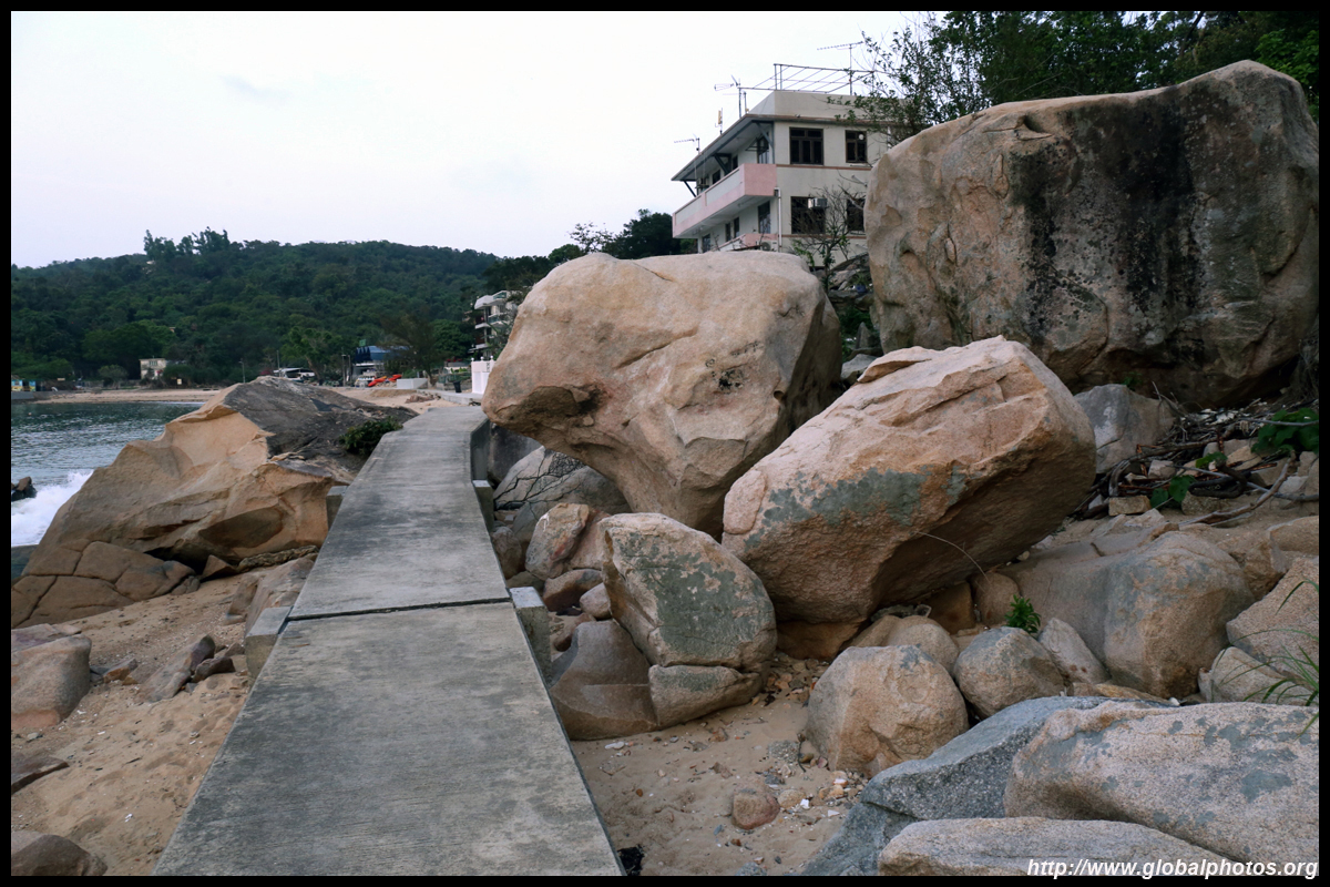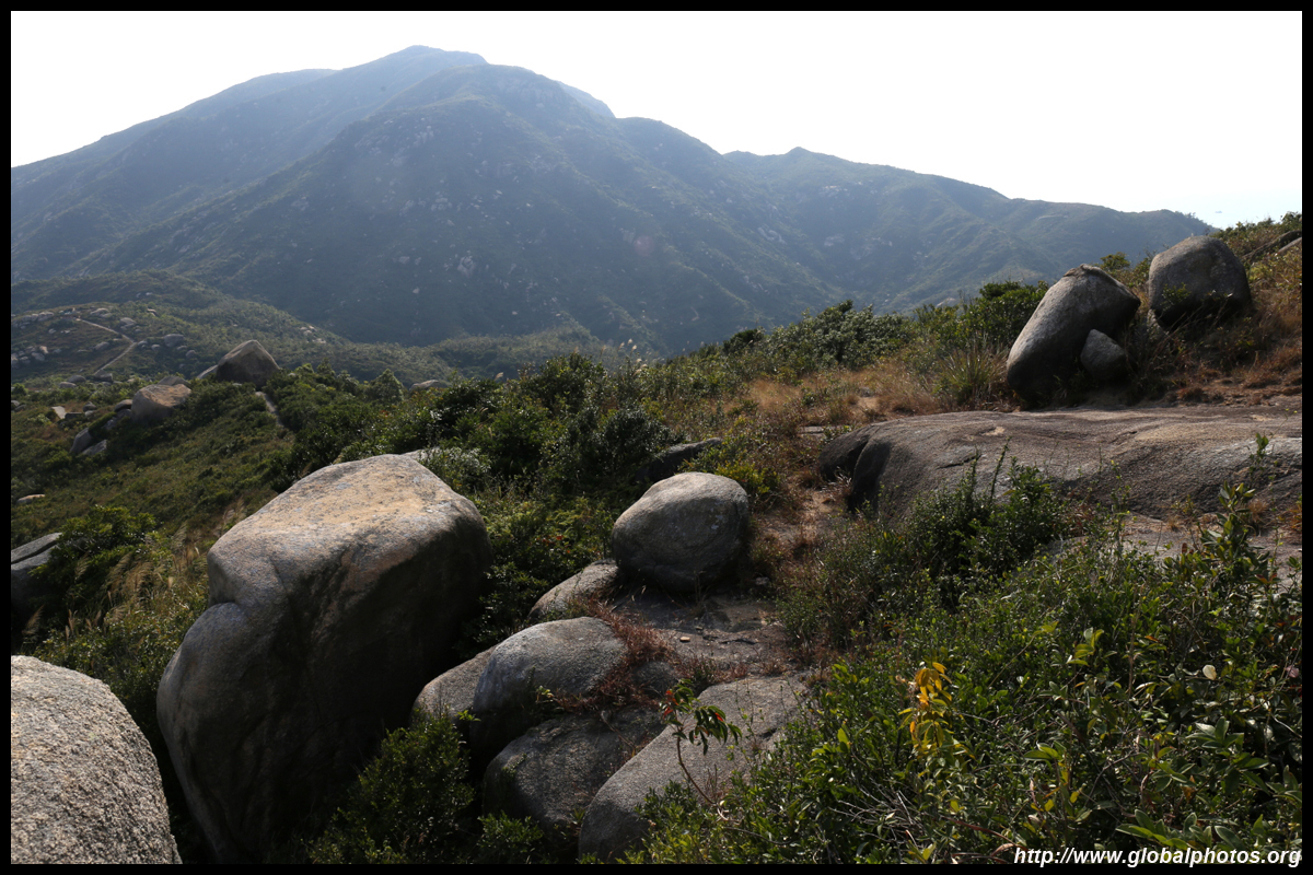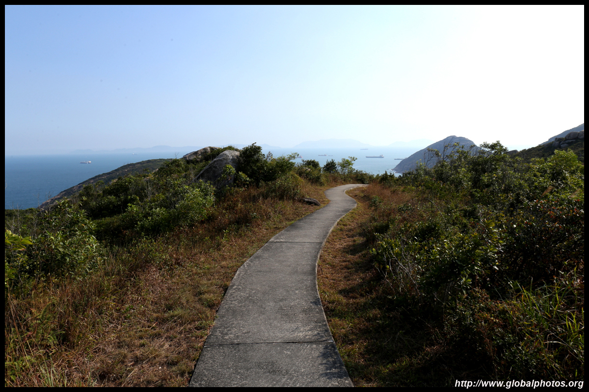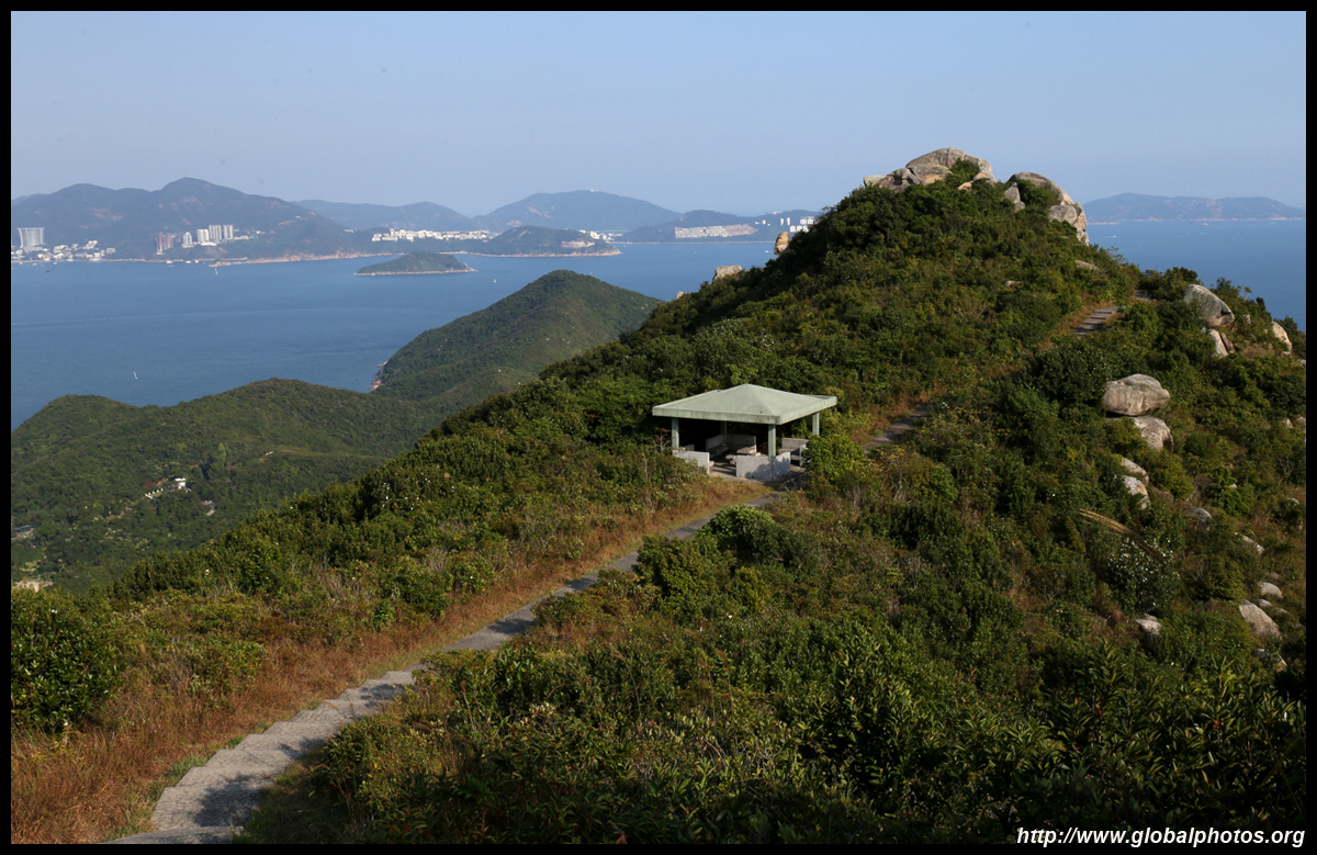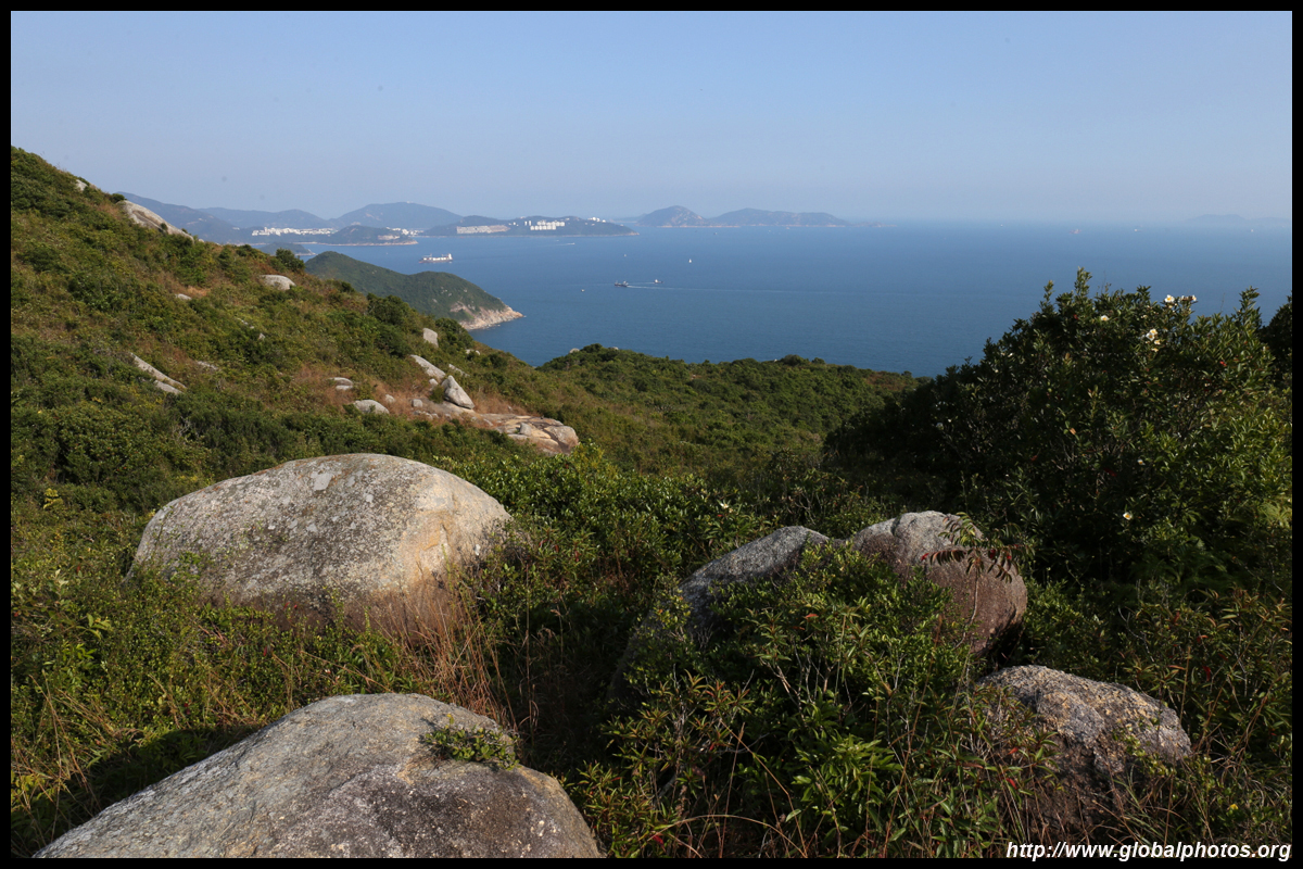 After the pavilion break, head back down to the intersection and continue up the hill ahead. If you want to give up at this point, the path on the left leads back to Sok Kwu Wan downhill. As you climb further to Ling Kok Shan, you will notice a number of large rocks hanging precariously along the hillsides They have been secured with concrete bases to prevent any surprises from rolling downhill.