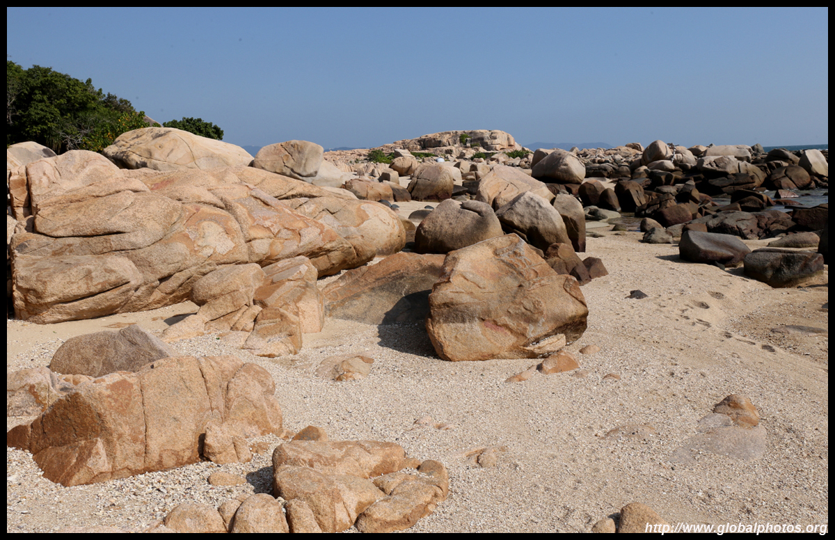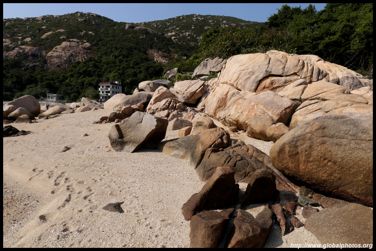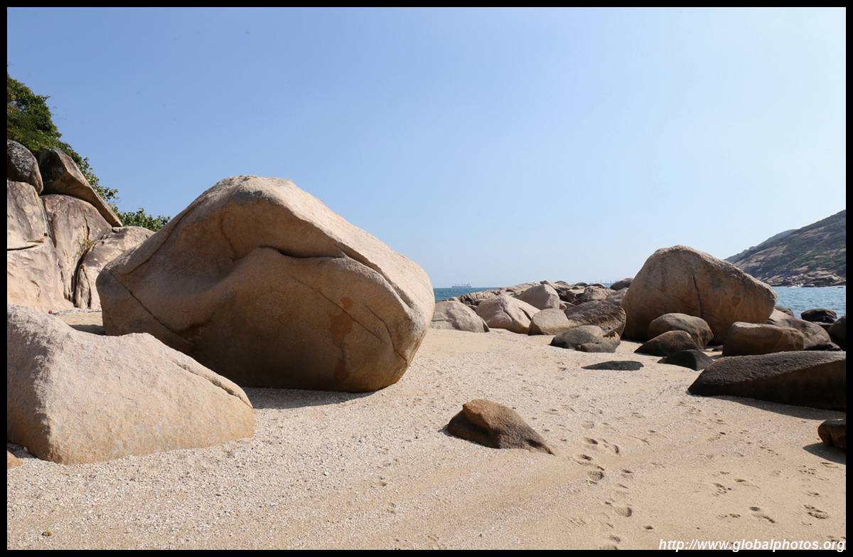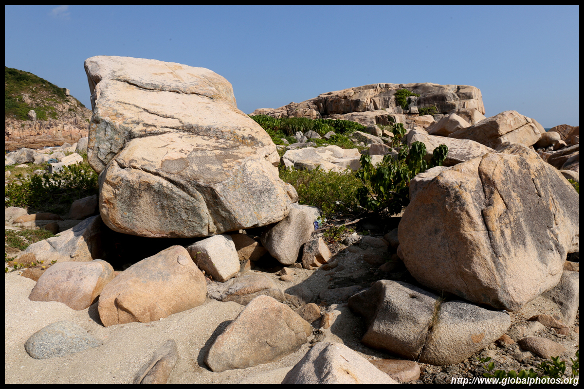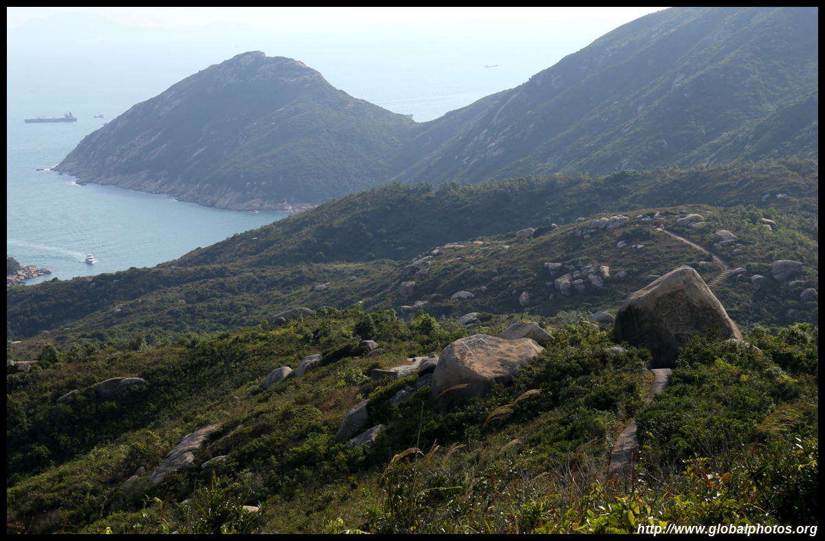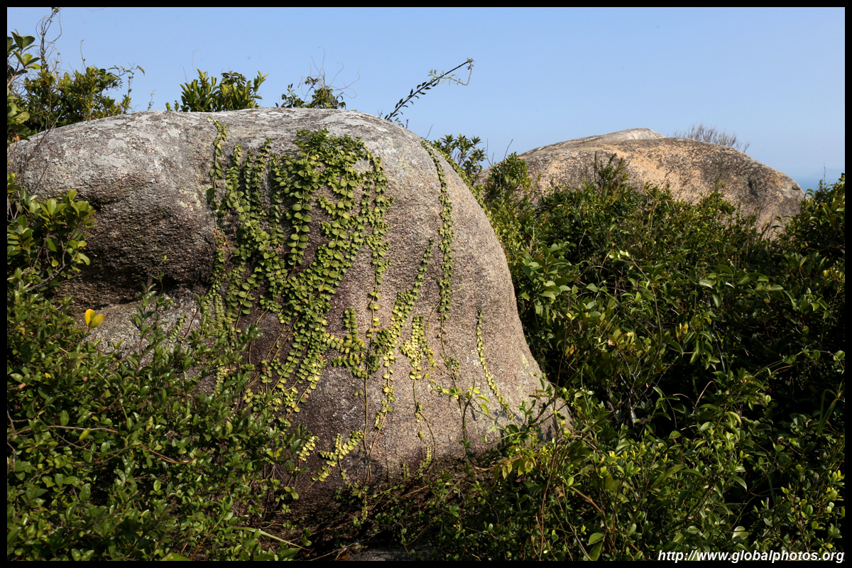 After the pavilion break, head back down to the intersection and continue up the hill ahead. If you want to give up at this point, the path on the left leads back to Sok Kwu Wan downhill. As you climb further to Ling Kok Shan, you will notice a number of large rocks hanging precariously along the hillsides They have been secured with concrete bases to prevent any surprises from rolling downhill.