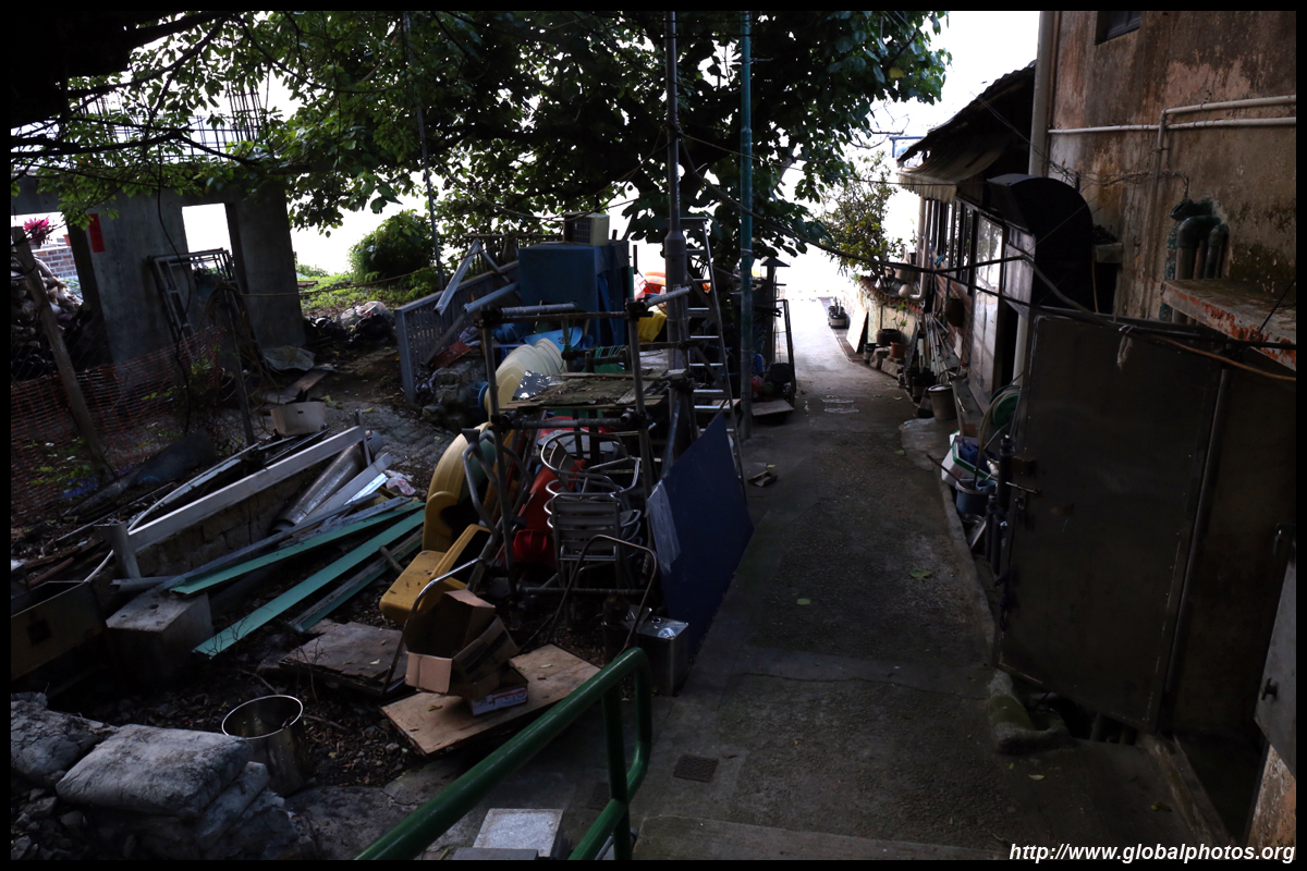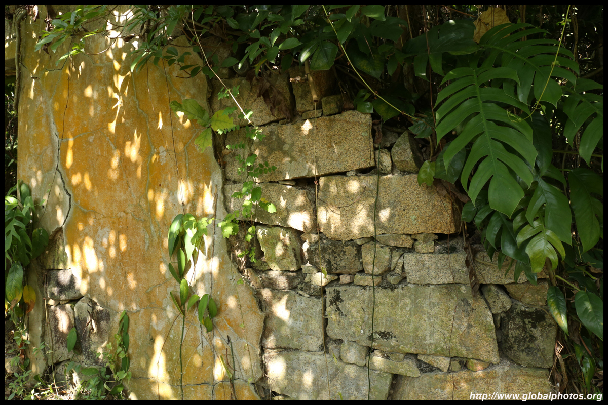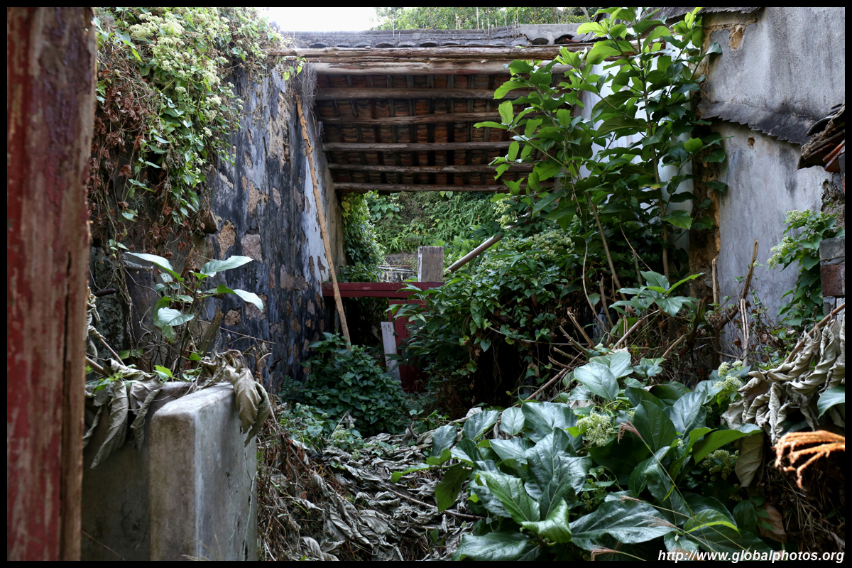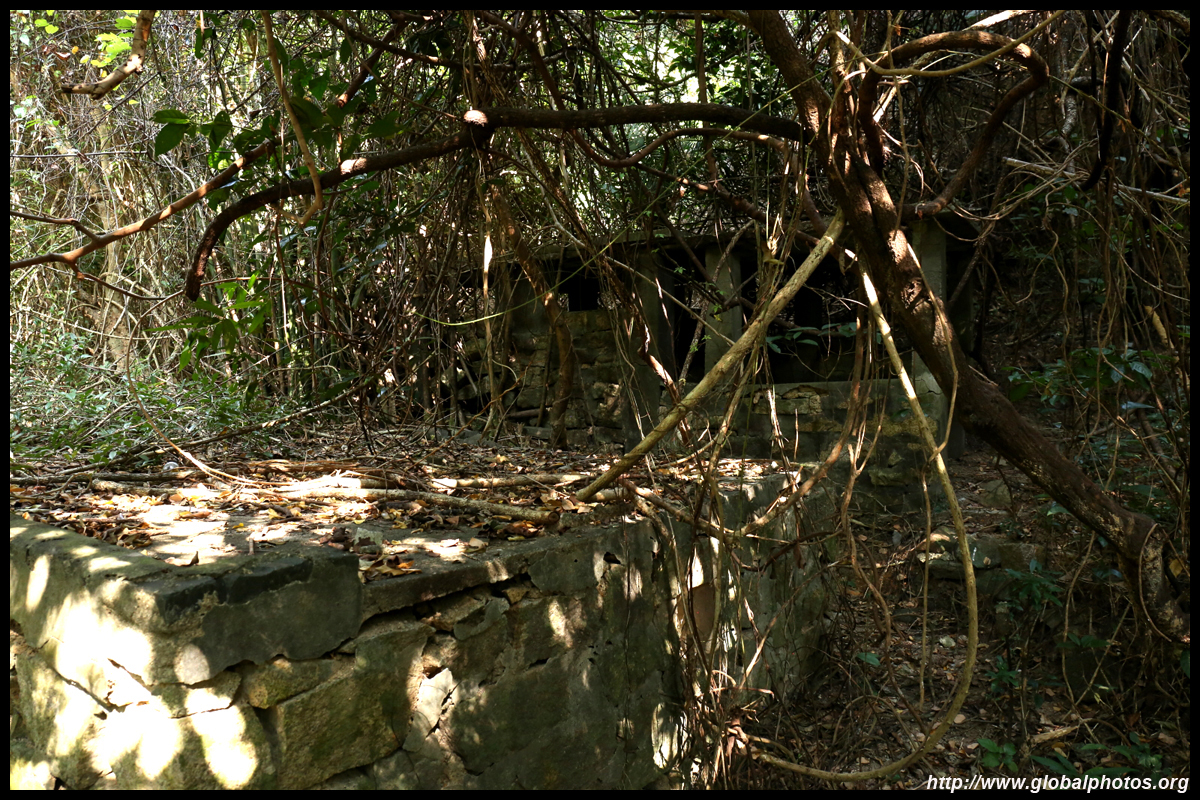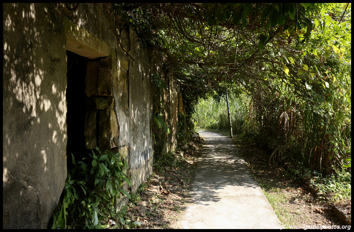 This row of abandoned buildings is the old village of Yung Shue Ha, which is slowly being reclaimed by the forest. The buildings date from the early 19th century and were occupied by the Chow clan until they decided to move nearer to the coast.