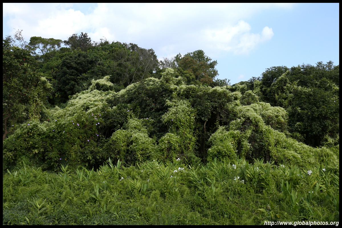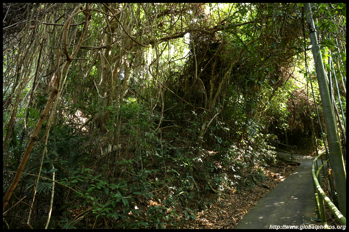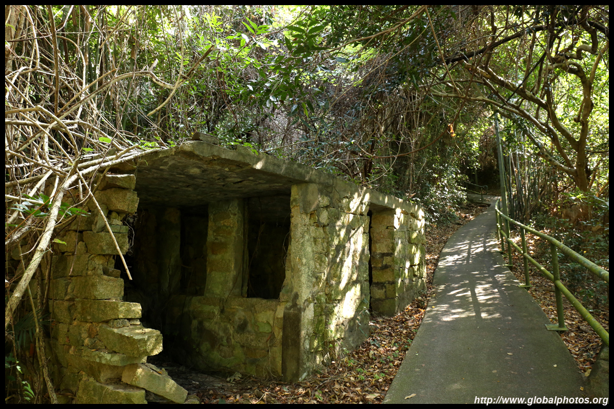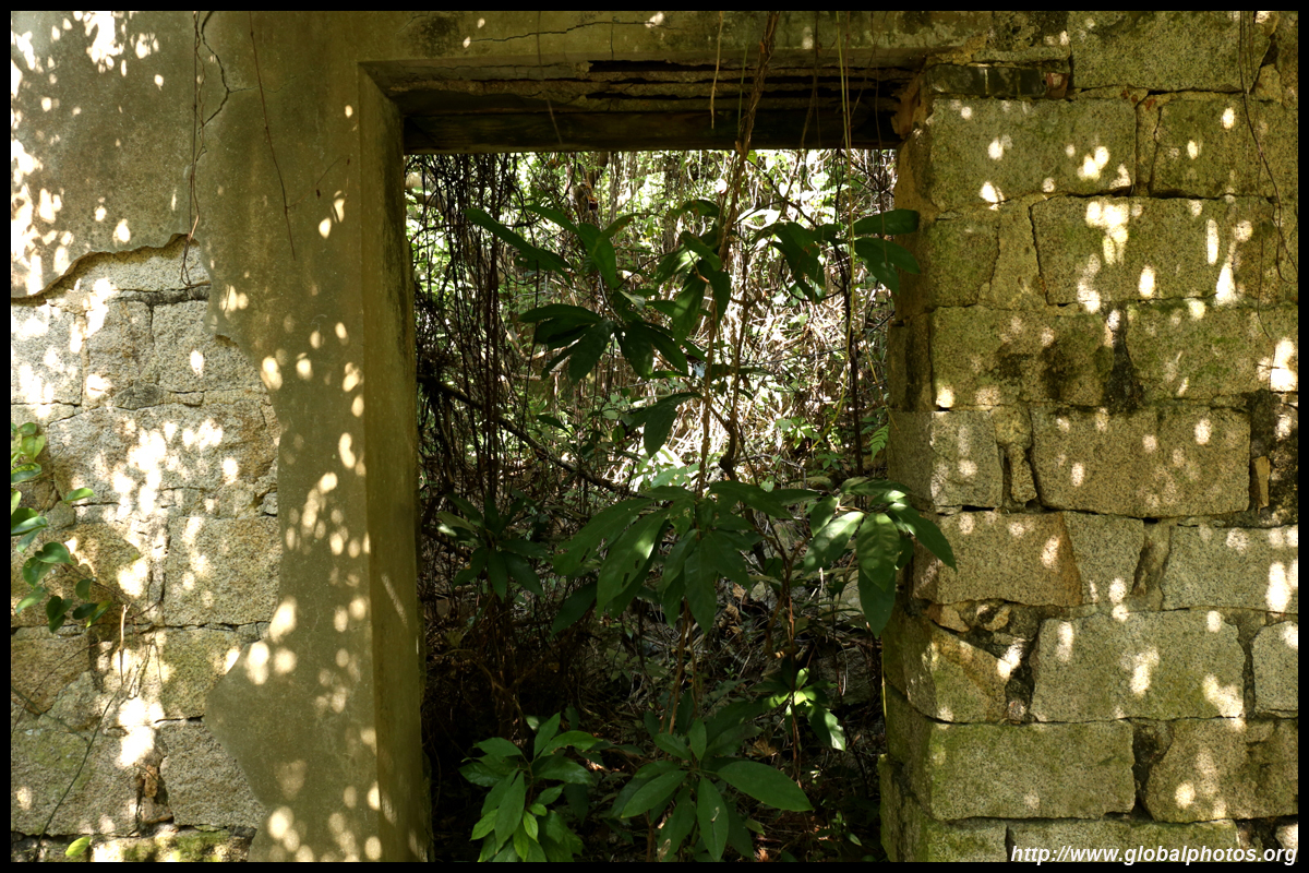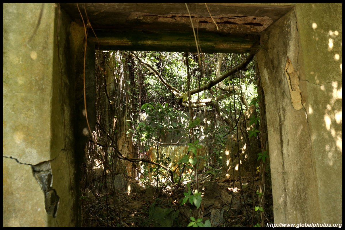 This row of abandoned buildings is the old village of Yung Shue Ha, which is slowly being reclaimed by the forest. The buildings date from the early 19th century and were occupied by the Chow clan until they decided to move nearer to the coast.