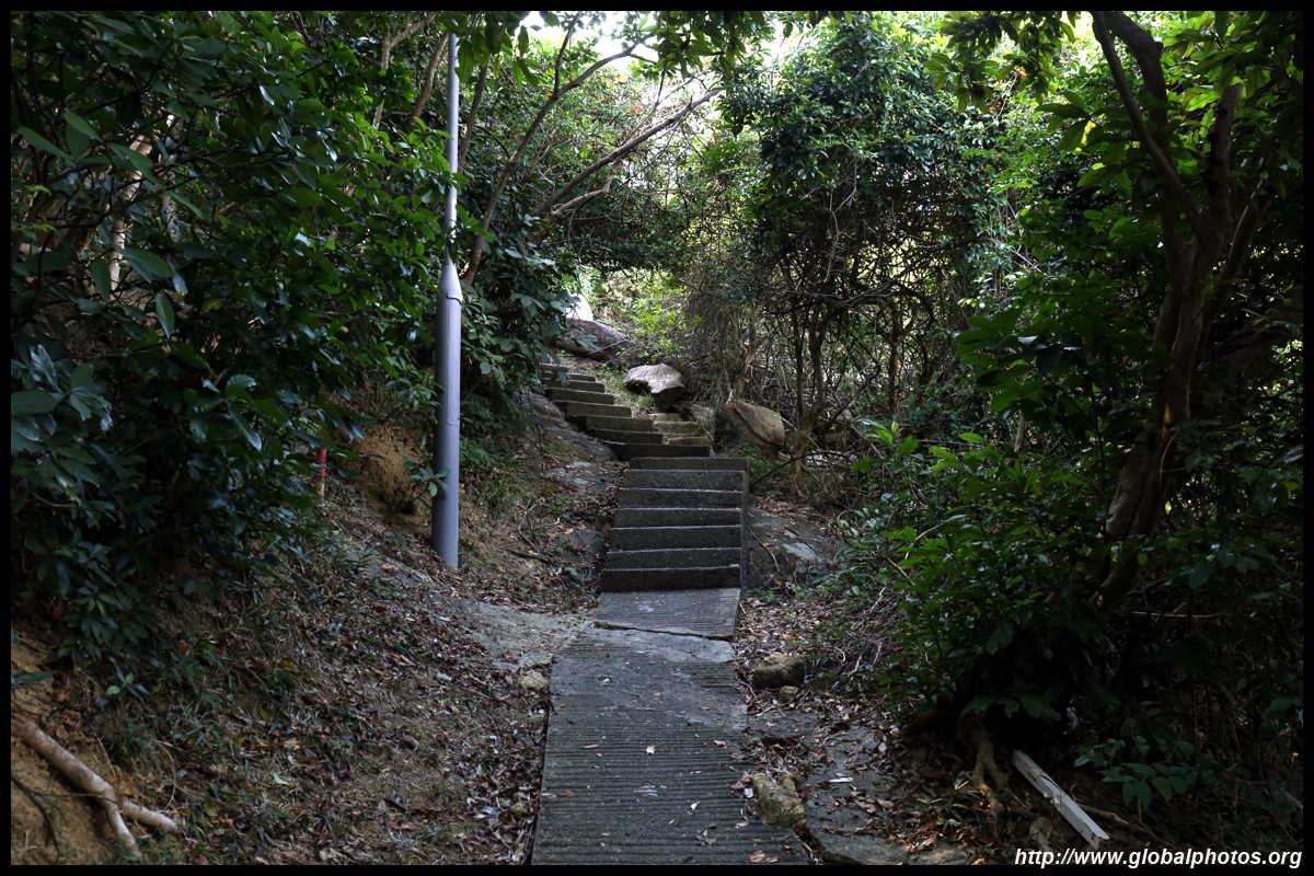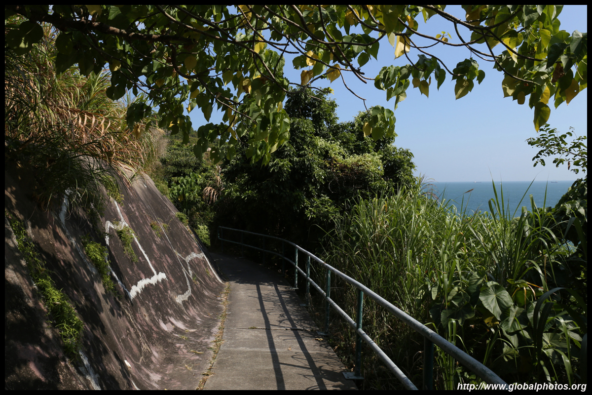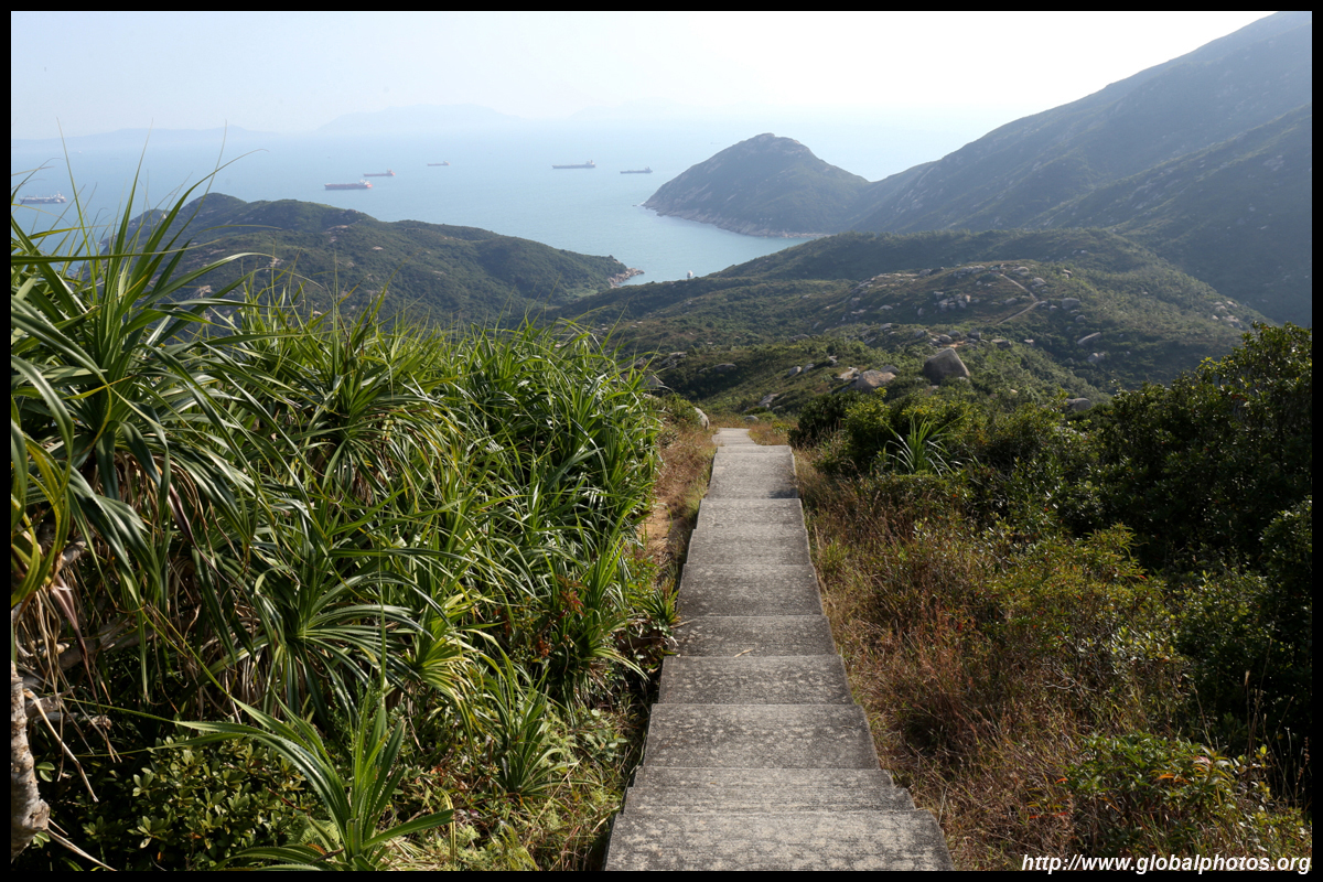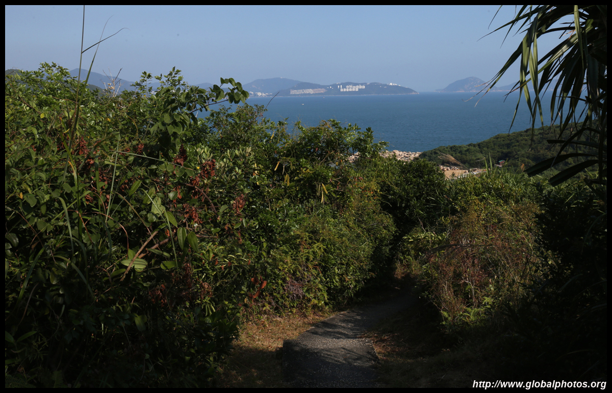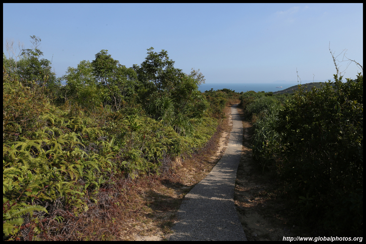 Do not climb up the staircase. That way up to Ling Kok Shan is very painful as the staircases don't stop. A more manageable approach is to ascend from Tung O further down the coast, so keep heading south along the path, which will continue to venture into and out of the forest regularly, poking out with sea views every now and then.