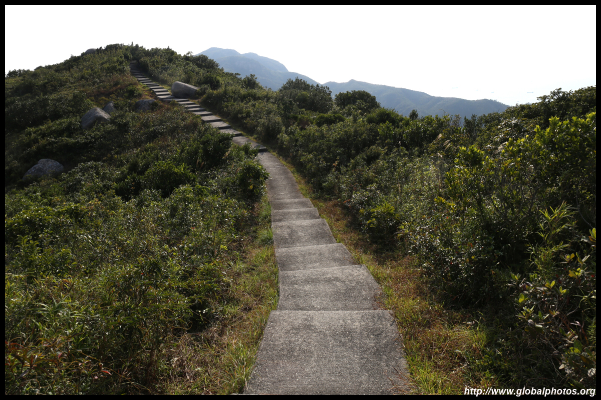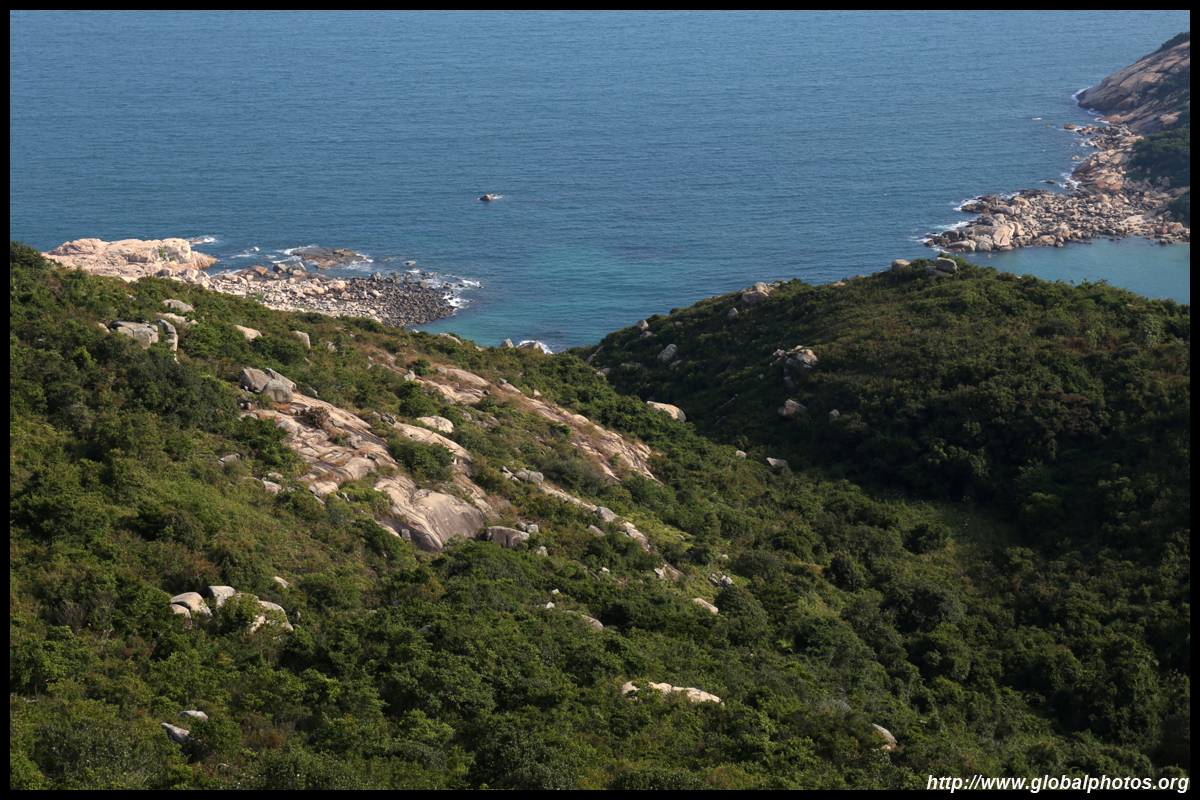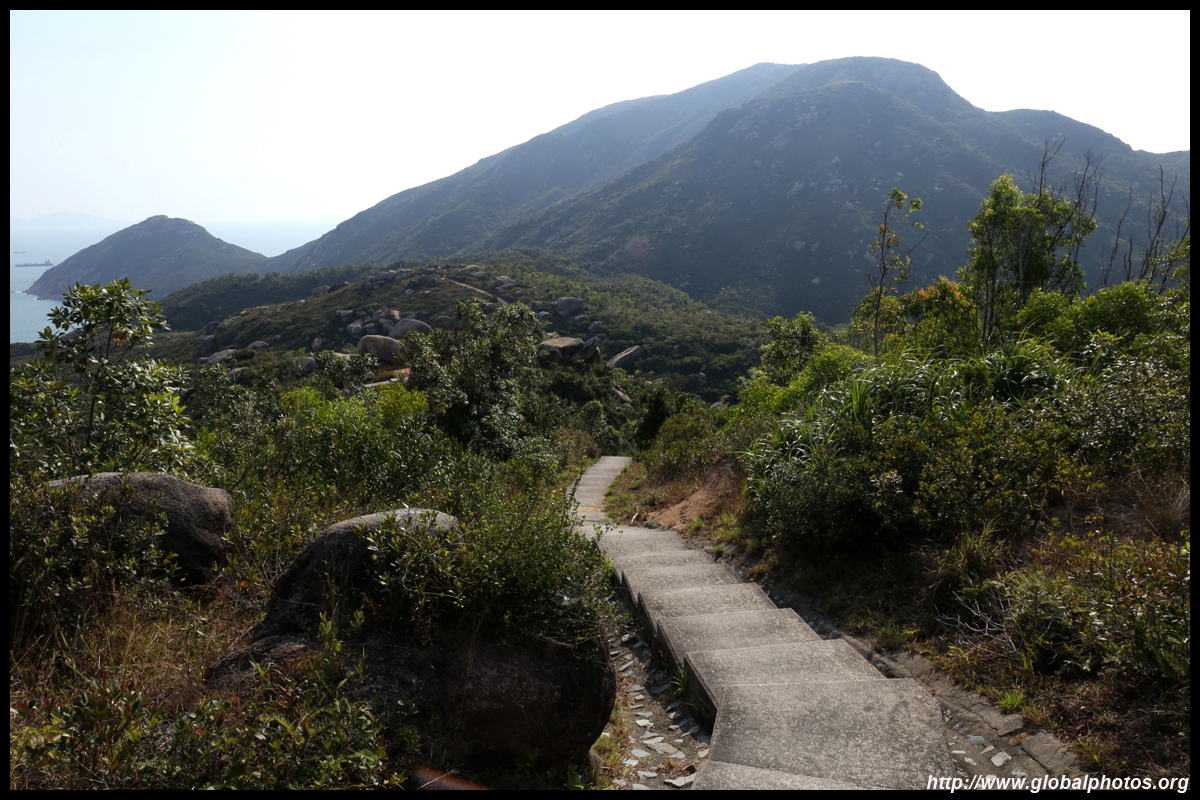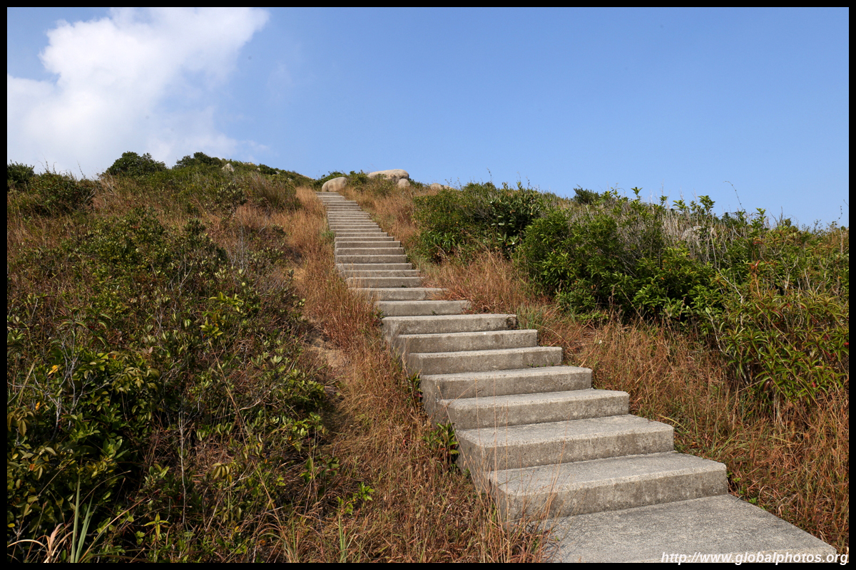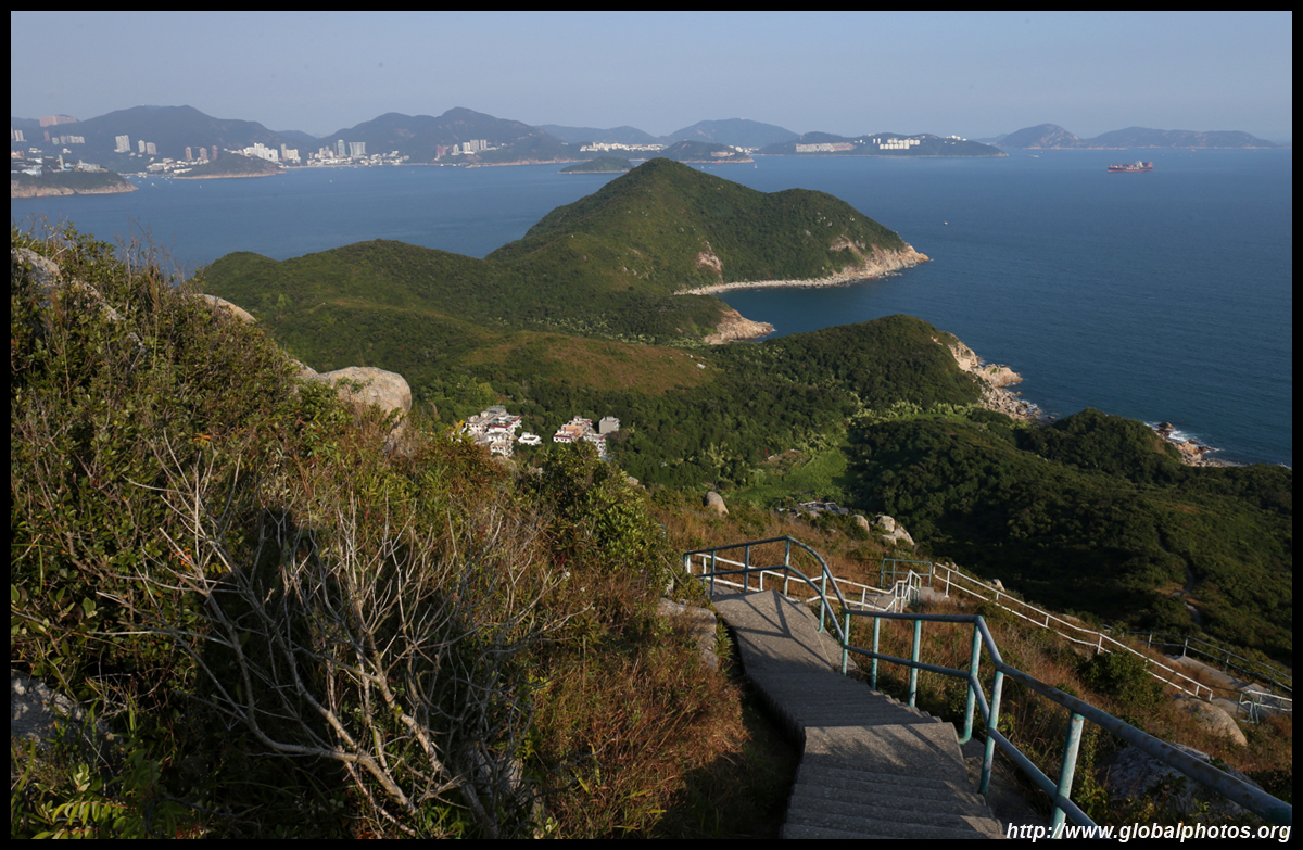 Do not climb up the staircase. That way up to Ling Kok Shan is very painful as the staircases don't stop. A more manageable approach is to ascend from Tung O further down the coast, so keep heading south along the path, which will continue to venture into and out of the forest regularly, poking out with sea views every now and then.