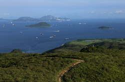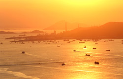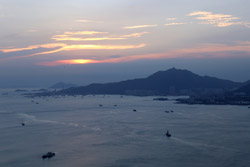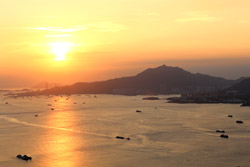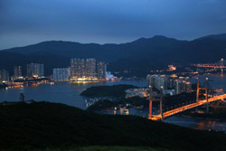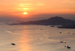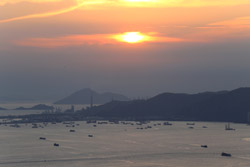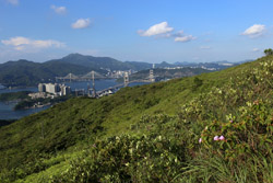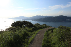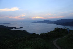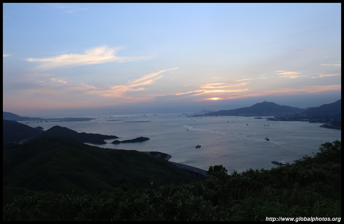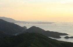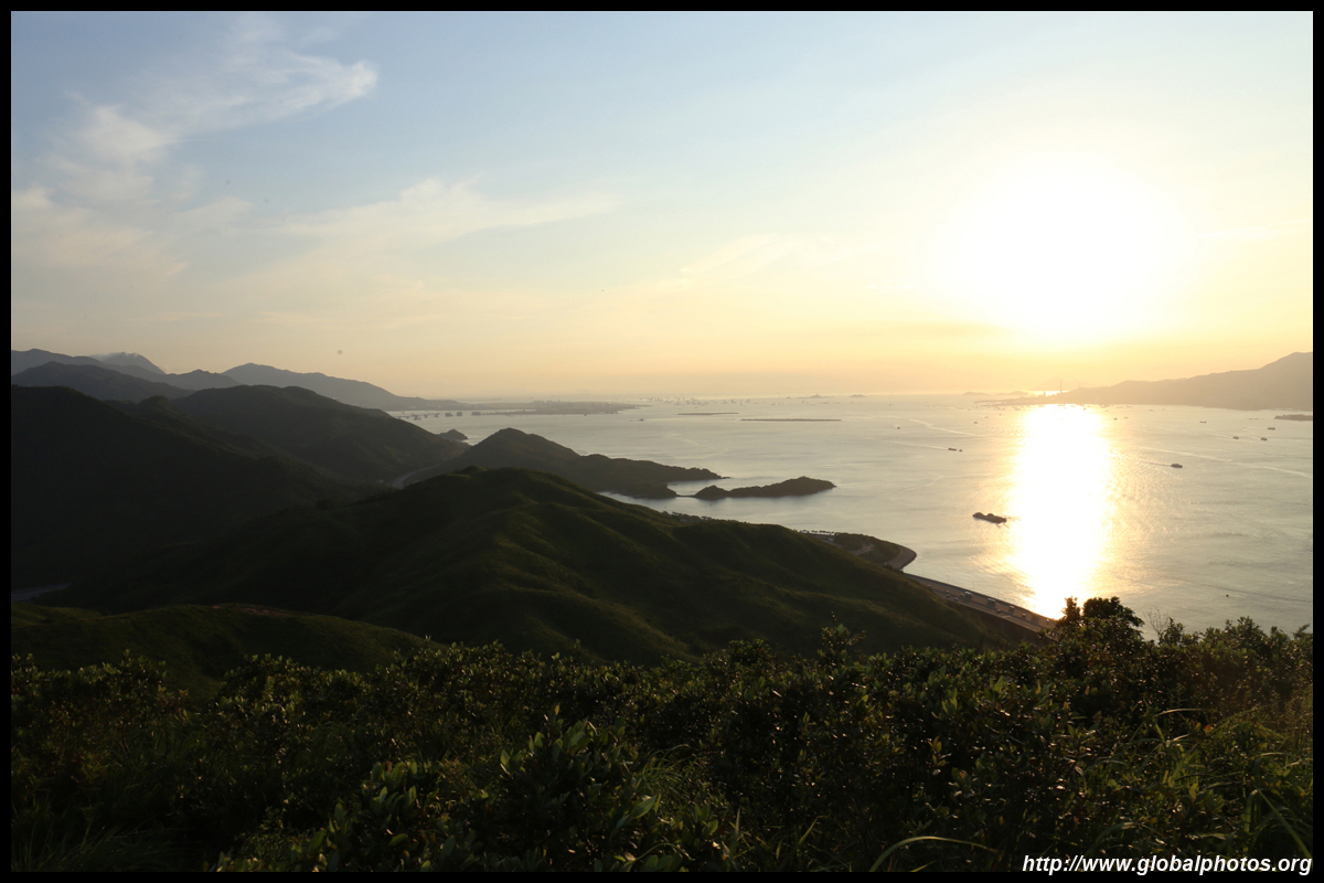 Above the Lantau Link toll booth is a hill with views of sunset, Macau, and the harbour. It is not a difficult hike, although with no shade along the way, a scorching climb in the summer heat.