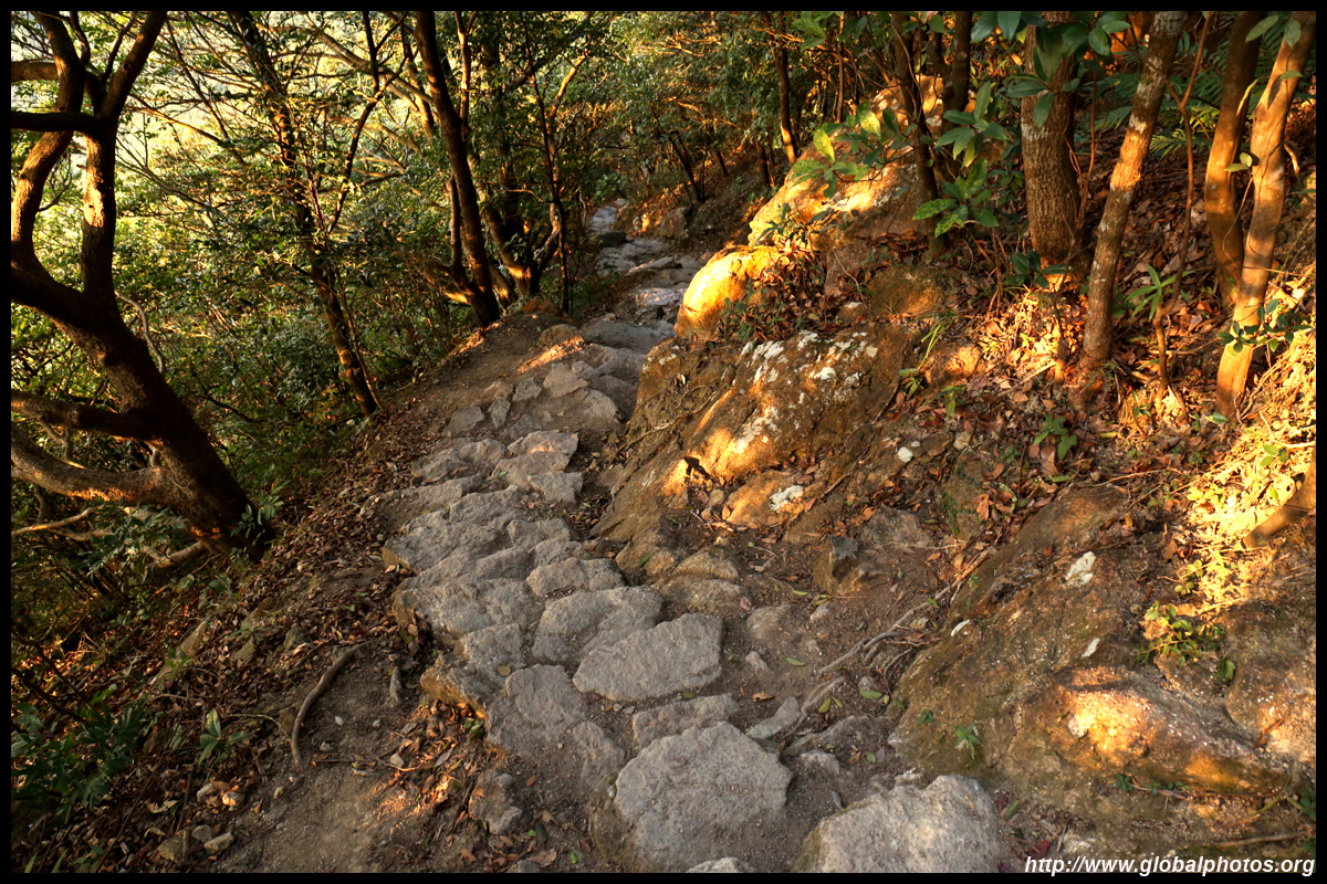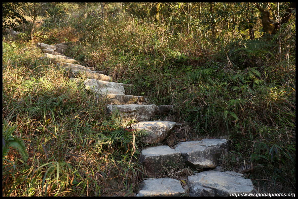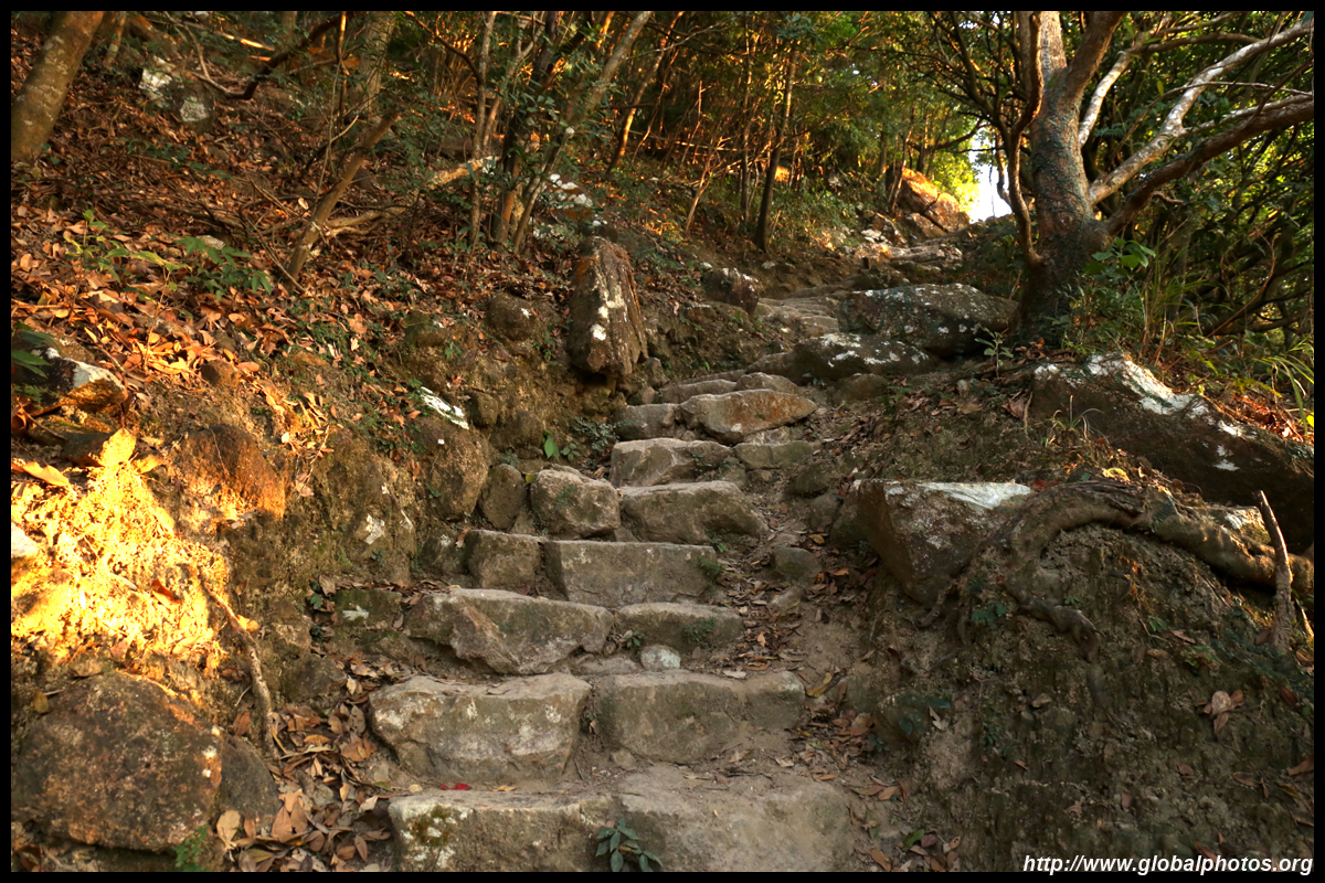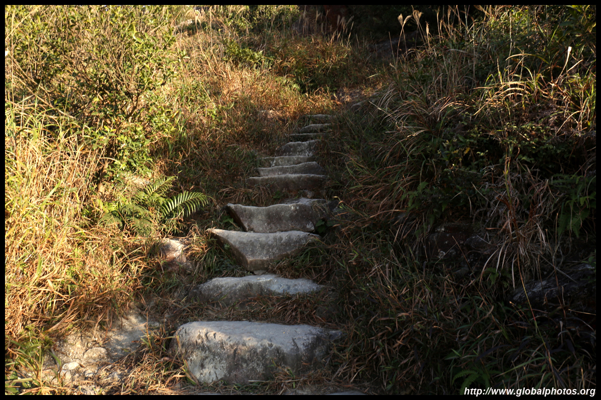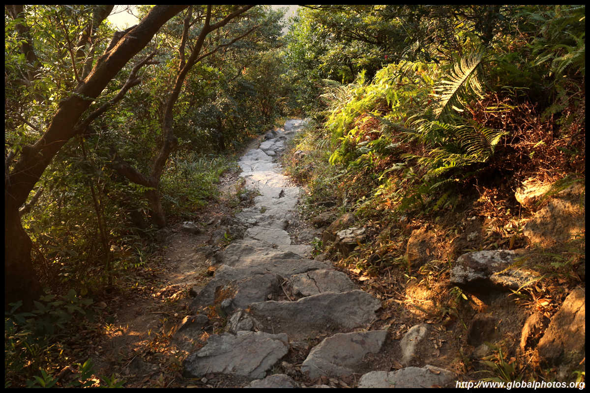 The most treacherous part of the descent ends at a signposted intersection. On the left is an even more dangerous path to the West Dog's Teeth. Take the right path down to Ngong Ping. You will enter a more forested area with a neverending set of stairs.