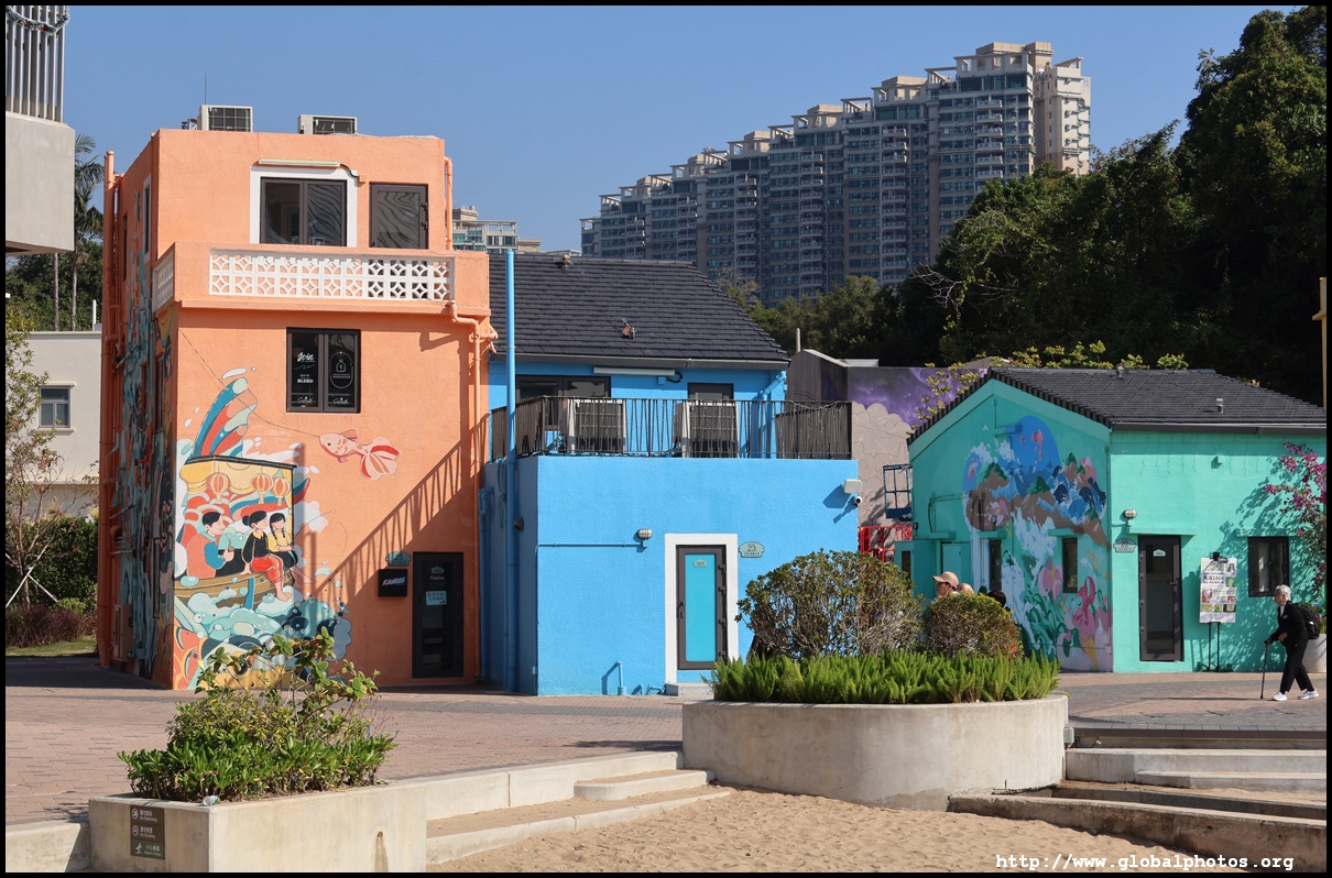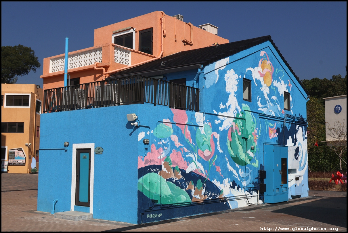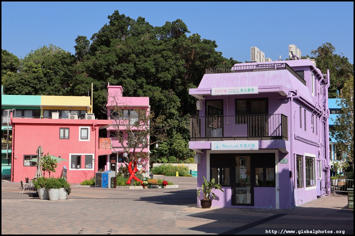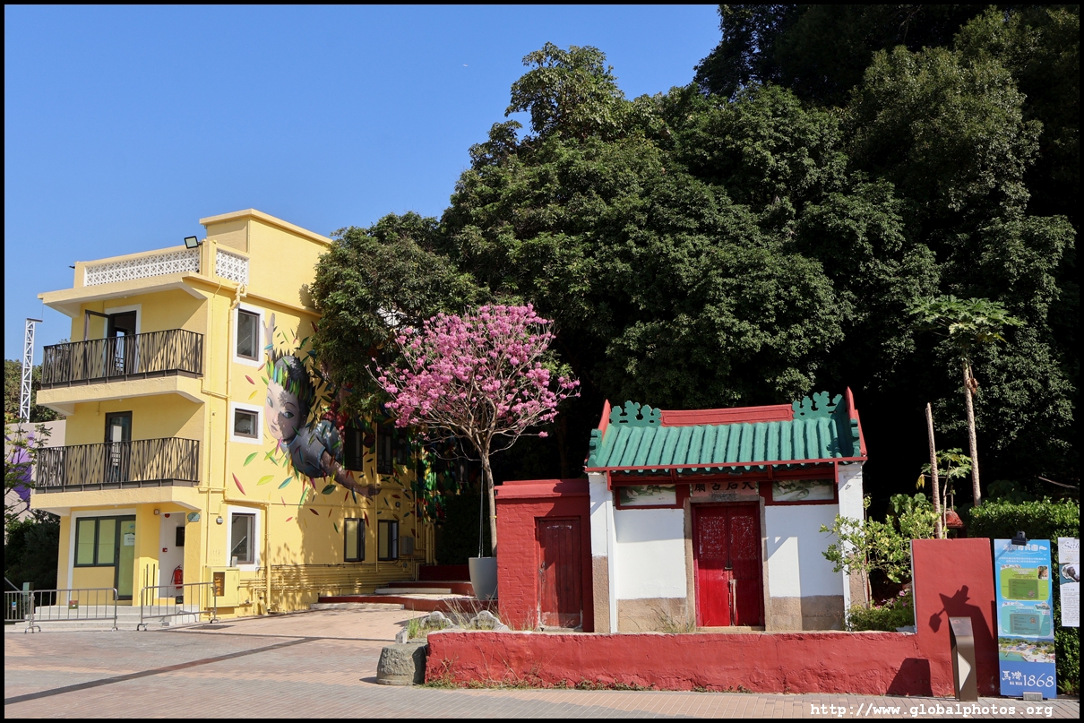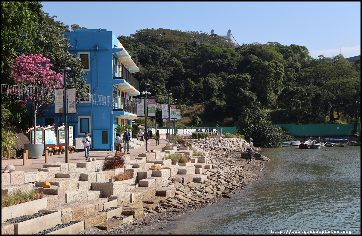 Ma Wan was once a quiet island just off Lantau where fishing was the main deal. That all changed when the new airport was built and as part of the transport infrastructure to serve it, a huge suspension bridge crossed here.Hundreds of villagers were resettled out of their original homes in 1997 to make way for a private developer to build a tourism and cultural facility. That plan stalled for over 20 years but finally opened in March 2025, turning the former village buildings into a Disneyland-like theme park with a new coat of colourful paint. I walked into the site along Fong Yuen Road to find the Ma Wan Heritage Centre. This was previously a study hall that was established in 1956 and now houses artifacts from archaeological excavations during the 1990s. Ruins of a lime kiln from the Tang Dynasty as well as a brick kiln from the more recent Qing Dynasty were found. After a short visit, I continued downhill along the path towards the sea. Soon, I could spot the repainted houses in all sorts of bright colours. Only a small number were open with shops and a large number of buildings were closed.