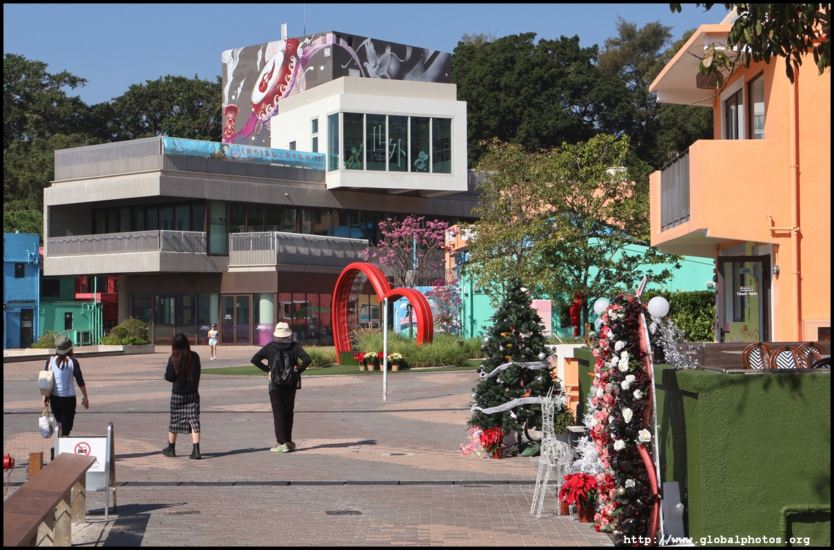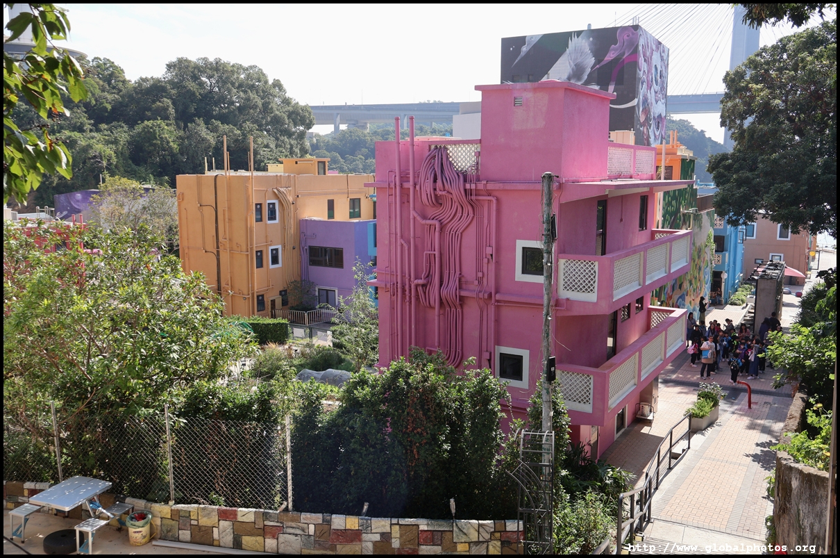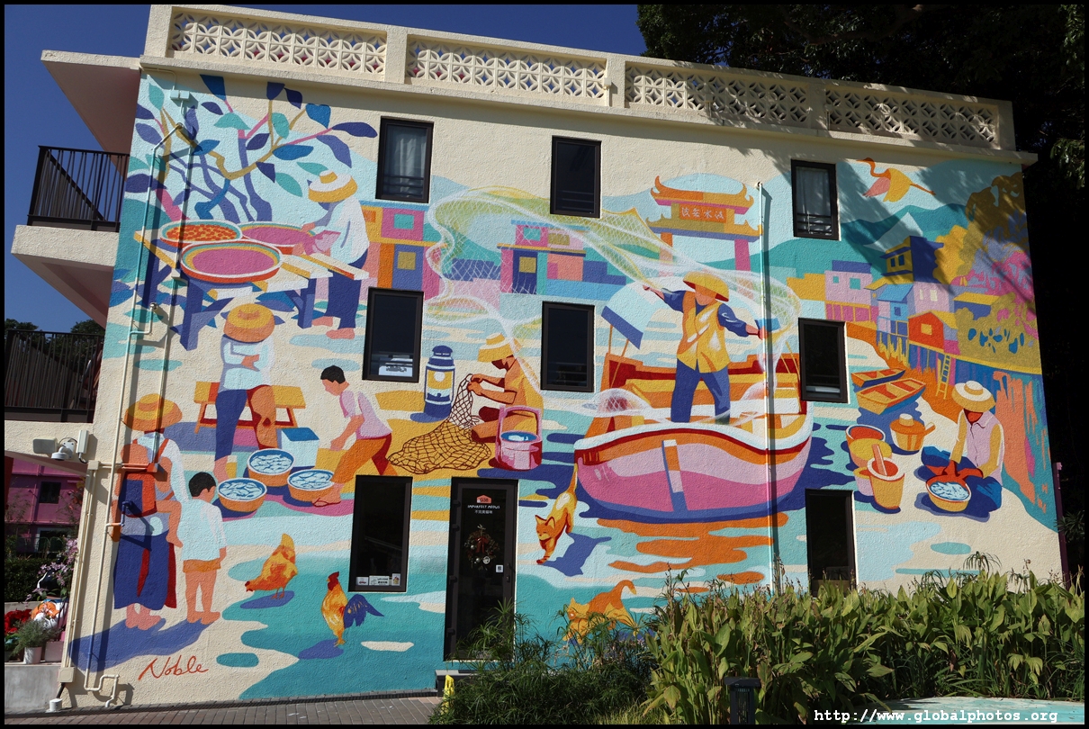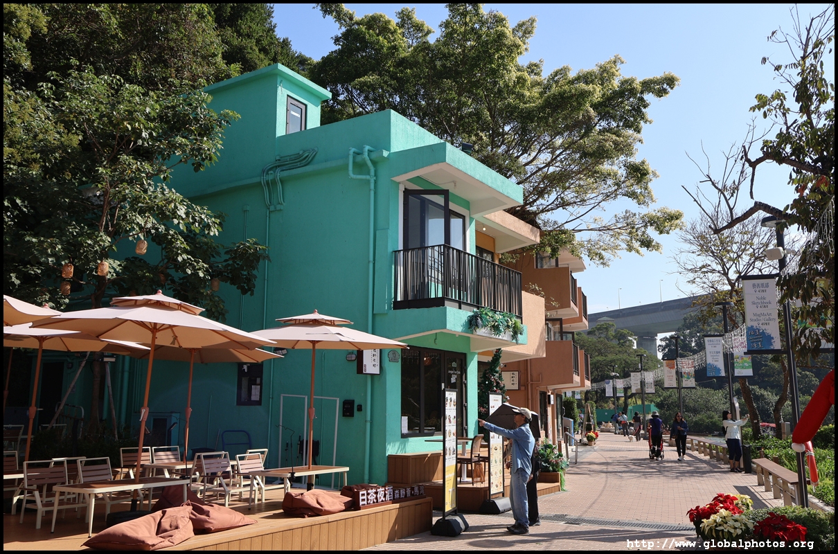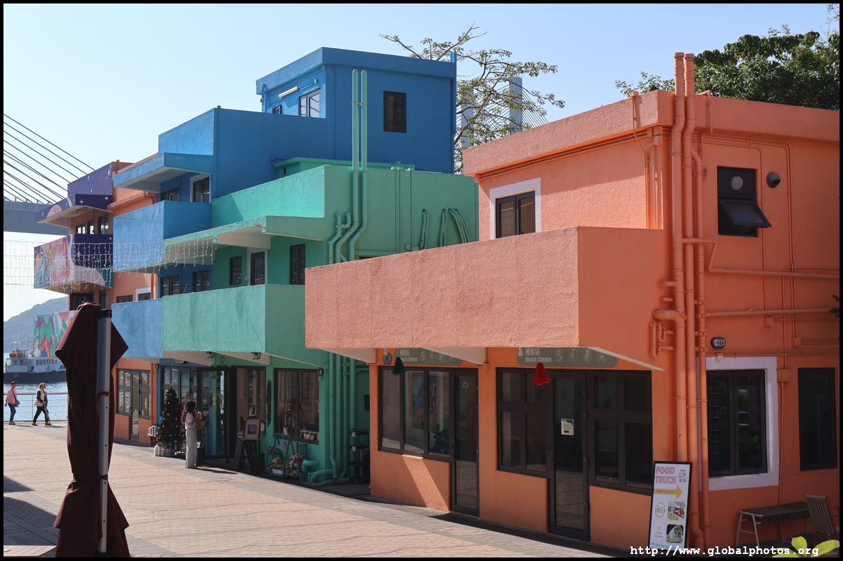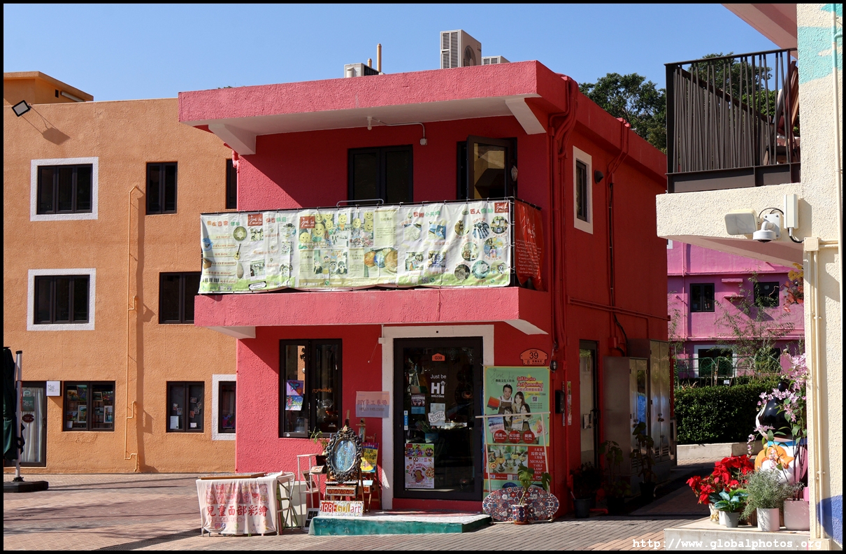 Ma Wan was once a quiet island just off Lantau where fishing was the main deal. That all changed when the new airport was built and as part of the transport infrastructure to serve it, a huge suspension bridge crossed here.Hundreds of villagers were resettled out of their original homes in 1997 to make way for a private developer to build a tourism and cultural facility. That plan stalled for over 20 years but finally opened in March 2025, turning the former village buildings into a Disneyland-like theme park with a new coat of colourful paint. I walked into the site along Fong Yuen Road to find the Ma Wan Heritage Centre. This was previously a study hall that was established in 1956 and now houses artifacts from archaeological excavations during the 1990s. Ruins of a lime kiln from the Tang Dynasty as well as a brick kiln from the more recent Qing Dynasty were found. After a short visit, I continued downhill along the path towards the sea. Soon, I could spot the repainted houses in all sorts of bright colours. Only a small number were open with shops and a large number of buildings were closed.