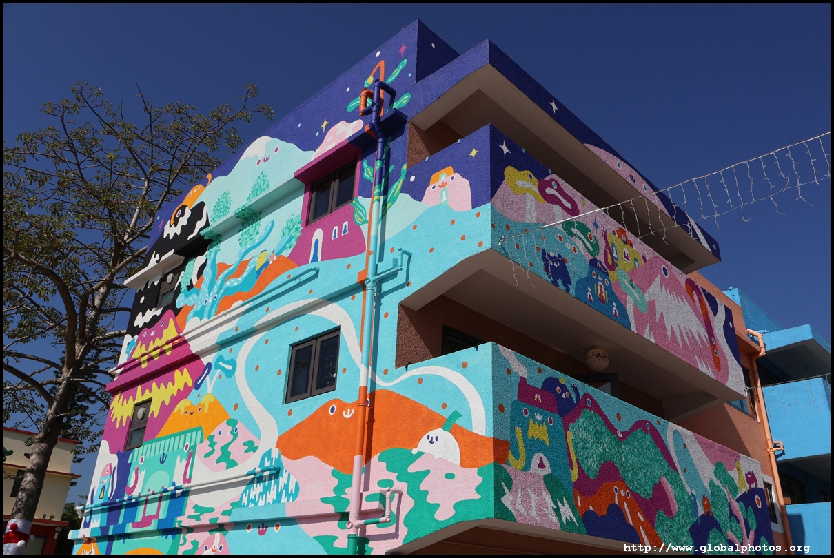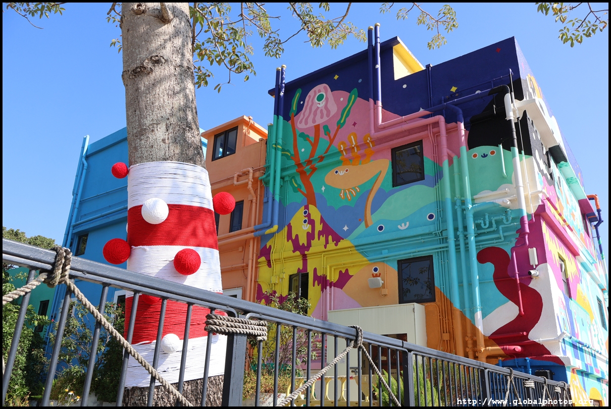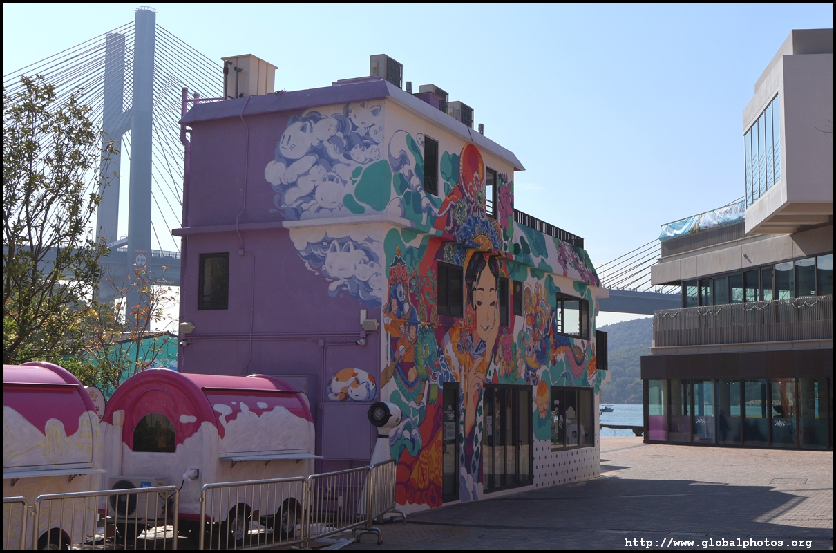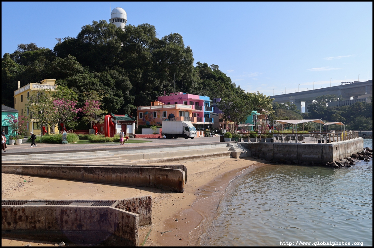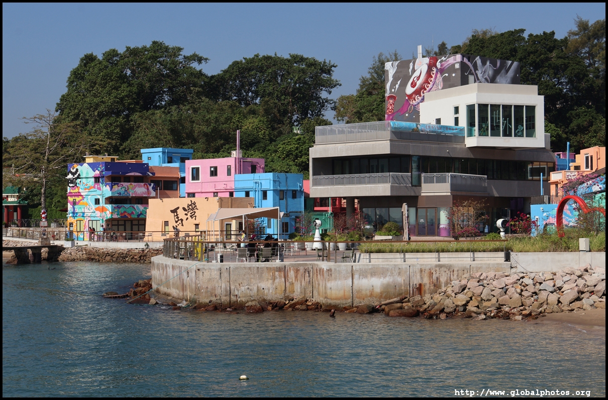 Ma Wan was once a quiet island just off Lantau where fishing was the main deal. That all changed when the new airport was built and as part of the transport infrastructure to serve it, a huge suspension bridge crossed here.Hundreds of villagers were resettled out of their original homes in 1997 to make way for a private developer to build a tourism and cultural facility. That plan stalled for over 20 years but finally opened in March 2025, turning the former village buildings into a Disneyland-like theme park with a new coat of colourful paint. I walked into the site along Fong Yuen Road to find the Ma Wan Heritage Centre. This was previously a study hall that was established in 1956 and now houses artifacts from archaeological excavations during the 1990s. Ruins of a lime kiln from the Tang Dynasty as well as a brick kiln from the more recent Qing Dynasty were found. After a short visit, I continued downhill along the path towards the sea. Soon, I could spot the repainted houses in all sorts of bright colours. Only a small number were open with shops and a large number of buildings were closed.