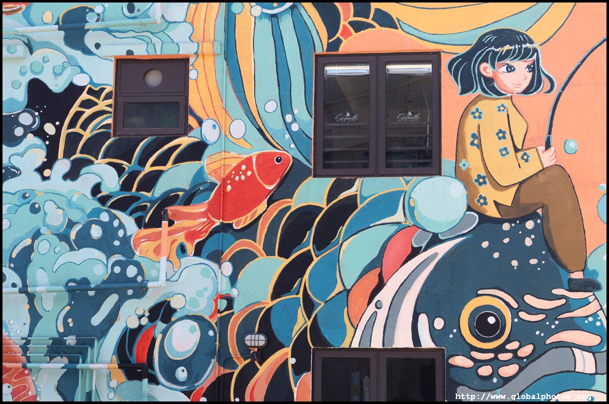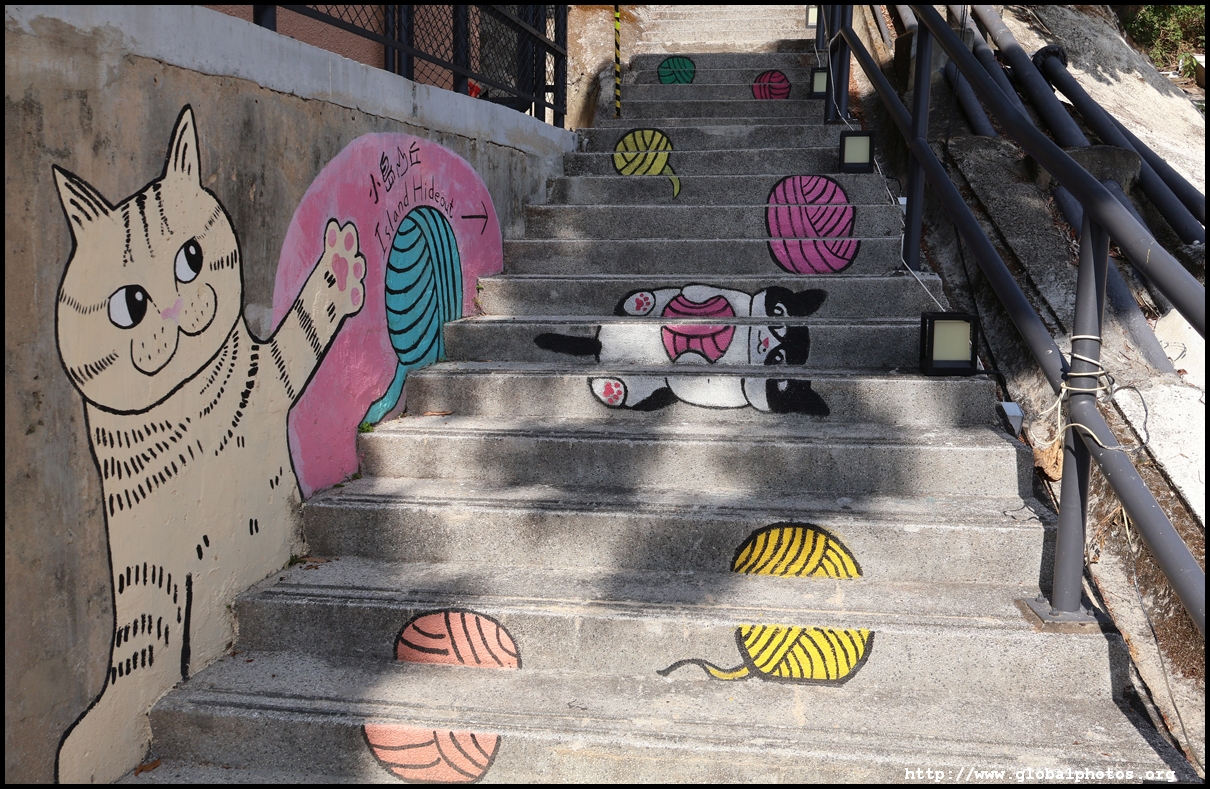 Inside the protected bay, they built a nice step-sloping area where you can sit down and enjoy the view. There are a small handful of fishing boats here, a far cry from what this fishing village used to be. Those residents have now moved to newer lowrise homes uphill.