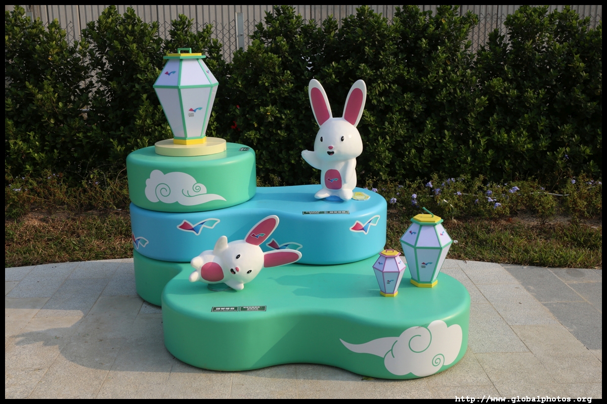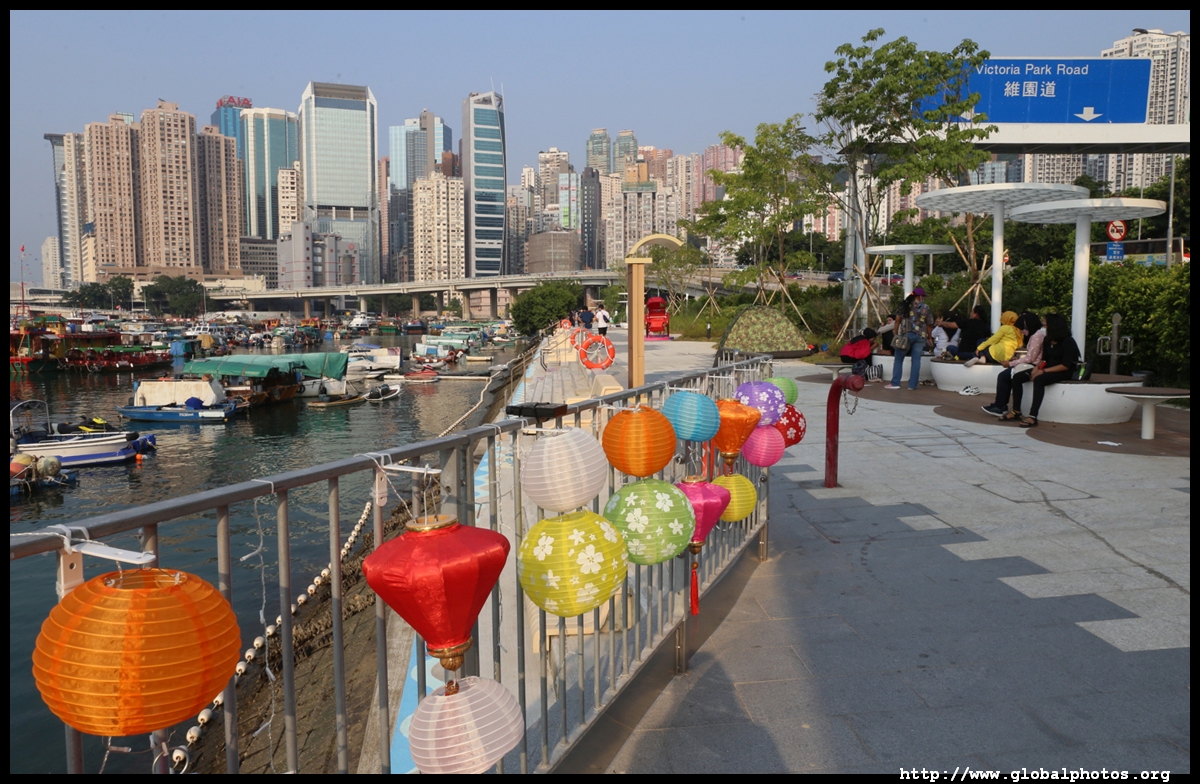 The recently-revitalized Causeway Bay typhoon shelter promenade has a smaller collection of lanterns and rabbit displays.