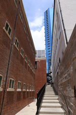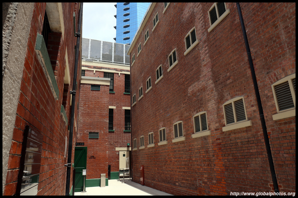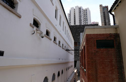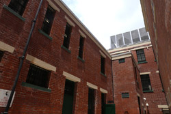 The Prison Yard at the back of the site is bounded by a huge wall to prevent escape.
