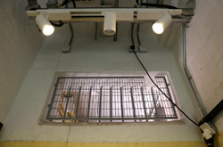 Medical personnel would sit in the cage for protection while prisoners waited in the circle.