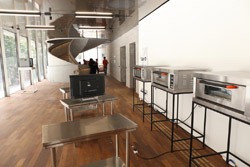 Contemporary art exhibitions adorne the interior spaces. Views from the balcony are quite decent.
