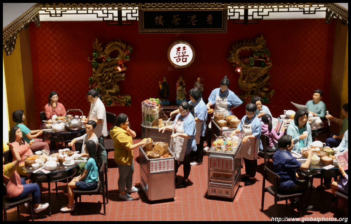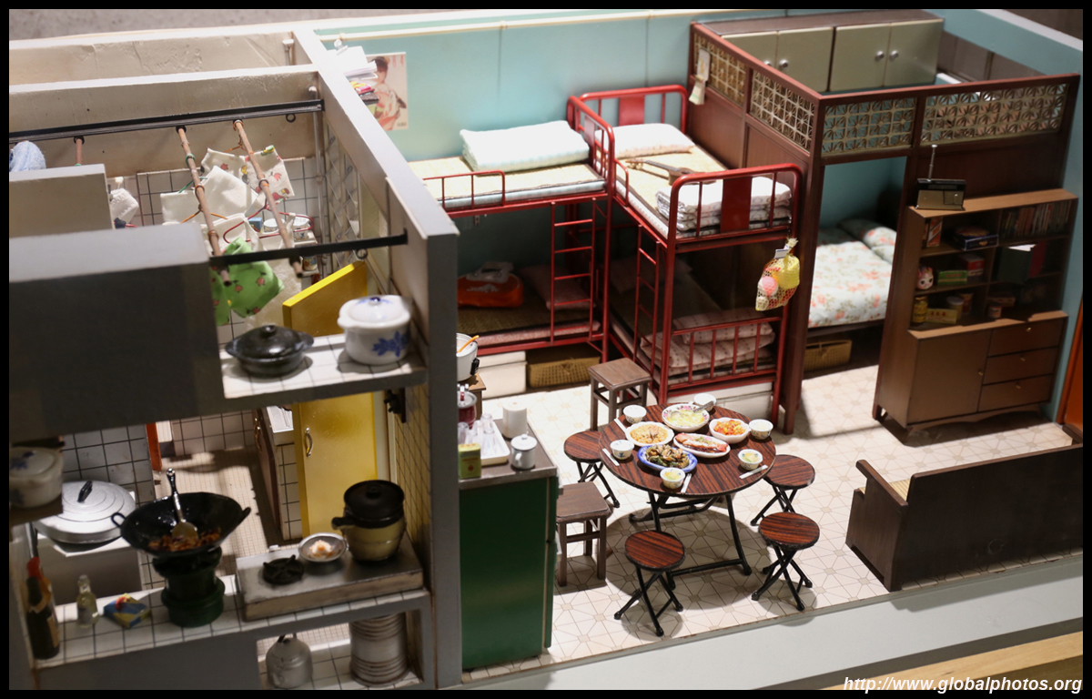 The next zones depict life in a typical small apartment in the 1980s and the local food culture such as eating dim sum or a local cha chaan teng restaurant.