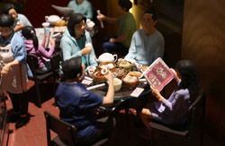 Dim sum carts with name plaques of its contents at the front once roamed restaurants, but labour got progressively expensive and now the common way to enjoy dim sum is to check off what you like on a piece of paper.