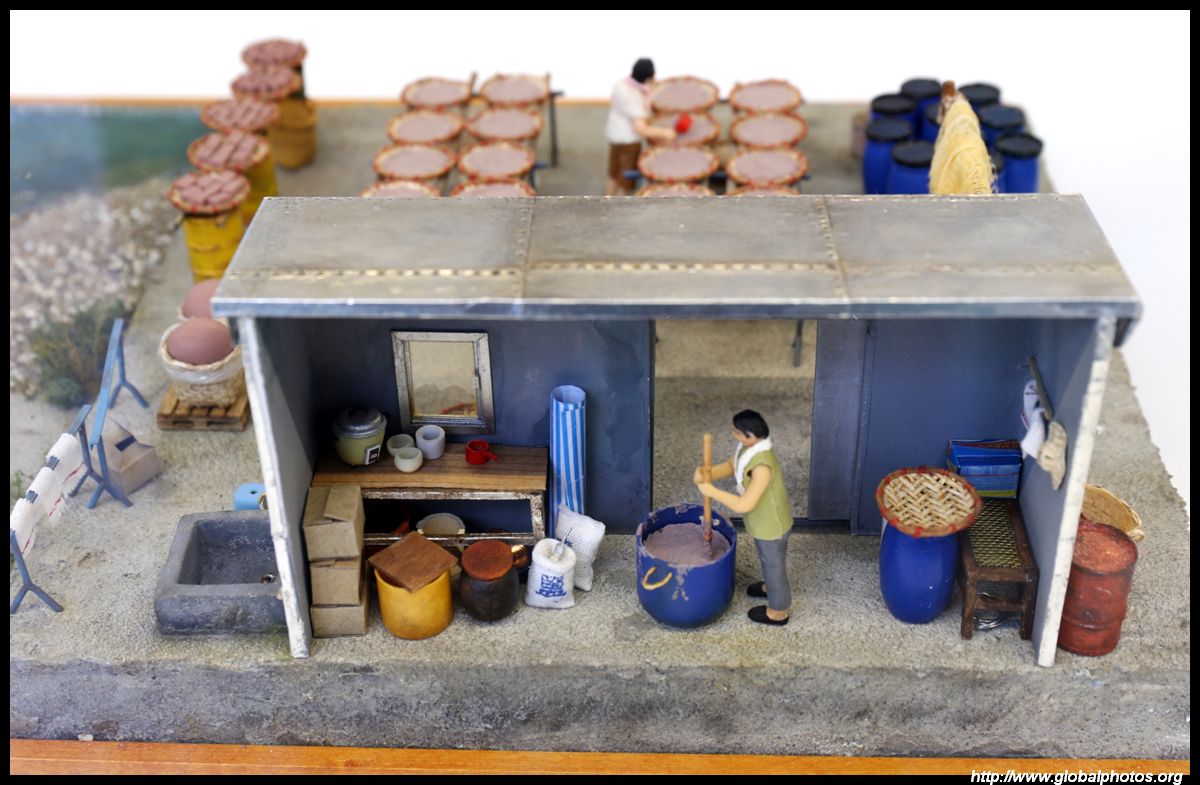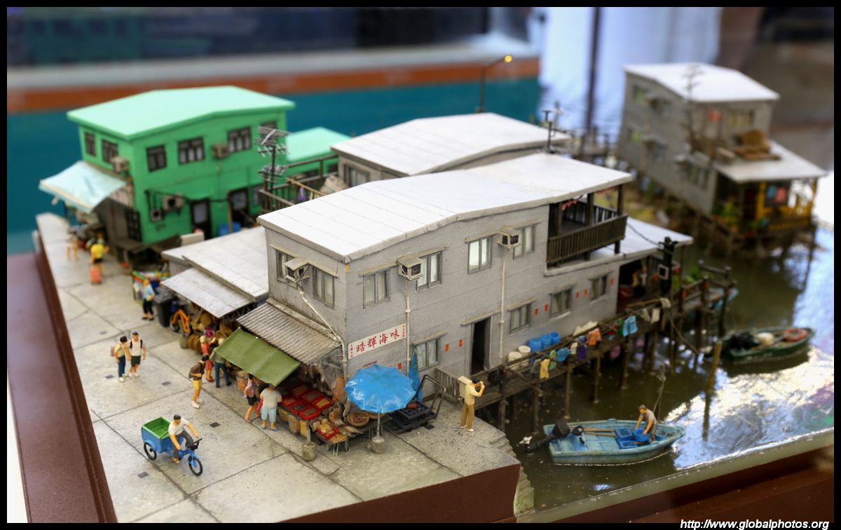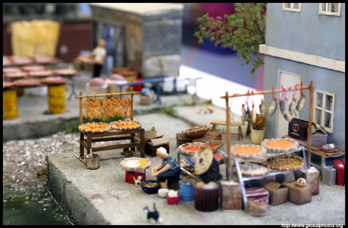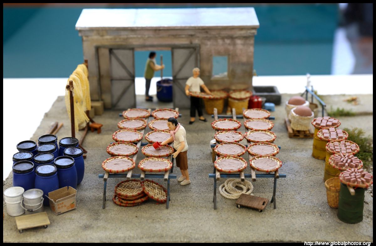 The main hall has many more dioramas of traditional life in Hong Kong. Here are some stilt houses in Tai O with residents making shrimp paste and drying seafood.
