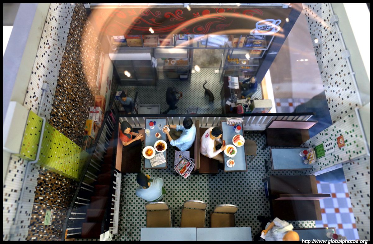 Next to it are more dioramas of the traditional cafes, shops, streets, and festivals.
