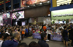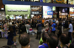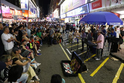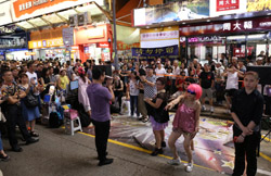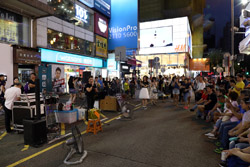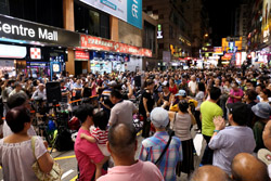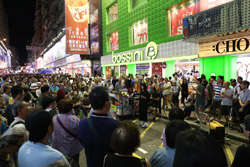 Sai Yeung Choi Street South was pedestrianized in 2000 to boost the shopping experience in the area. The zone was taken over by street performers in recent years, whose loudspeakers and noise late into the night have caused much nuisance to local residents. The government decided in 2013 to restrict pedestrianization to weekends and holidays only, then deciding to cancel the pedestrian scheme altogether after July 29, 2018.
