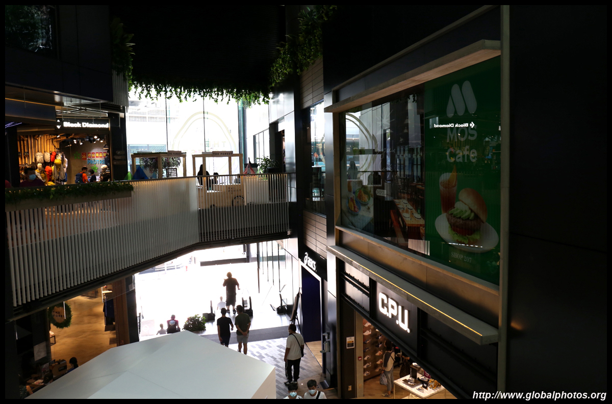 Formerly a run-down group of buildings, this block that once housed many sneaker shops was redeveloped into The Forest, a shopping mall with a sports retail theme. Residences sit on top of the mall. The project was completed in 2017.