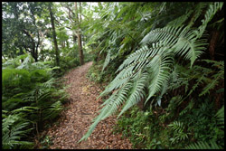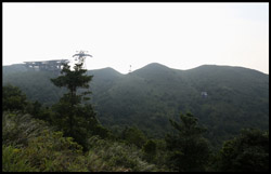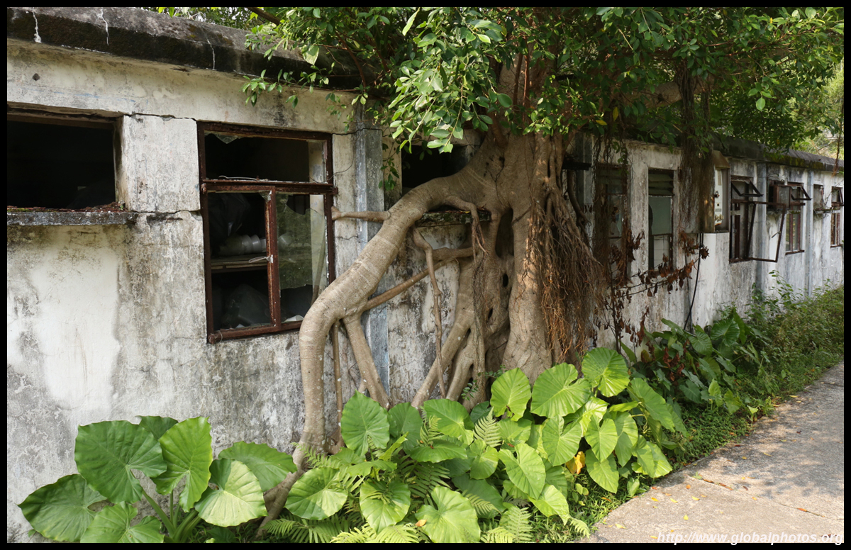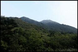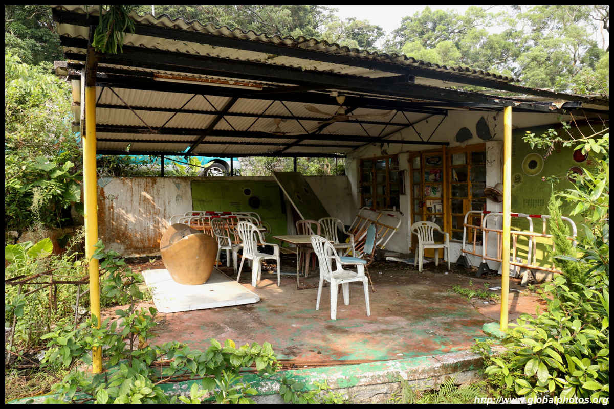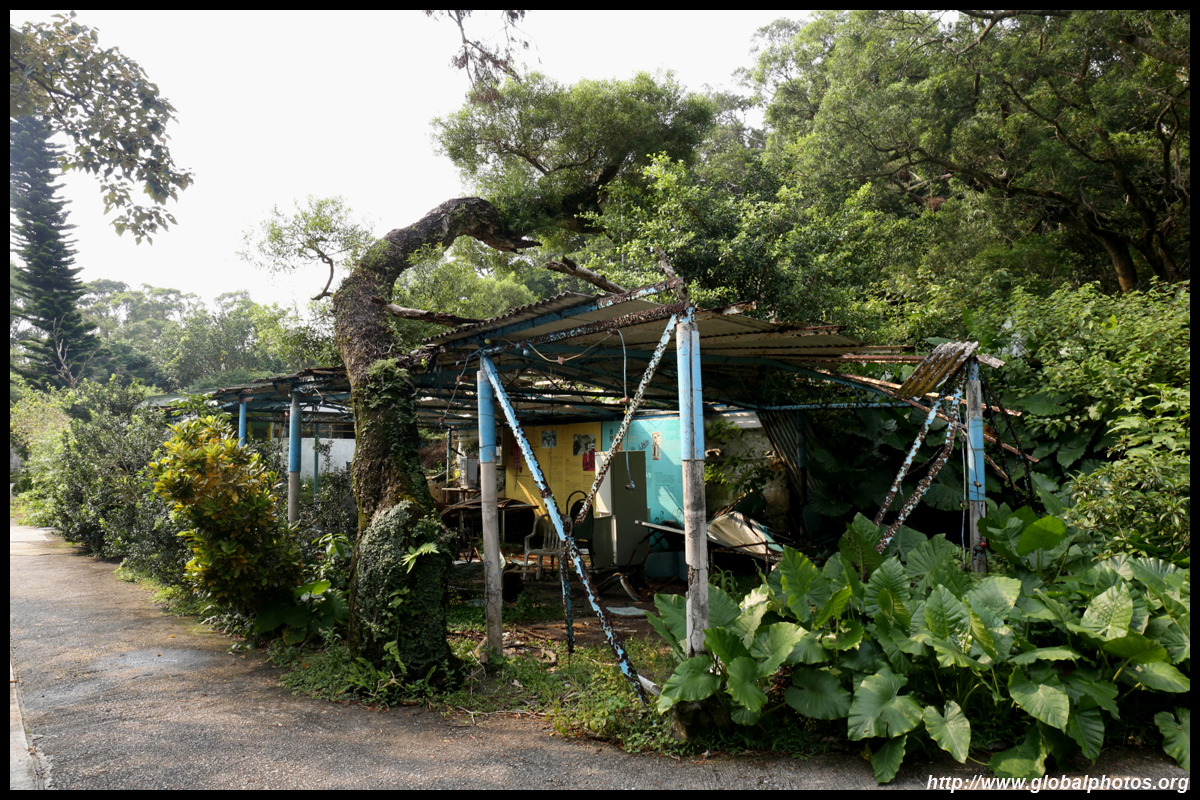 From the bottom of the Big Buddha, continue down the service road around the monastery towards the Wisdom Path, passing by a few abandoned buildings that used to serve the tourist and hiking crowd.