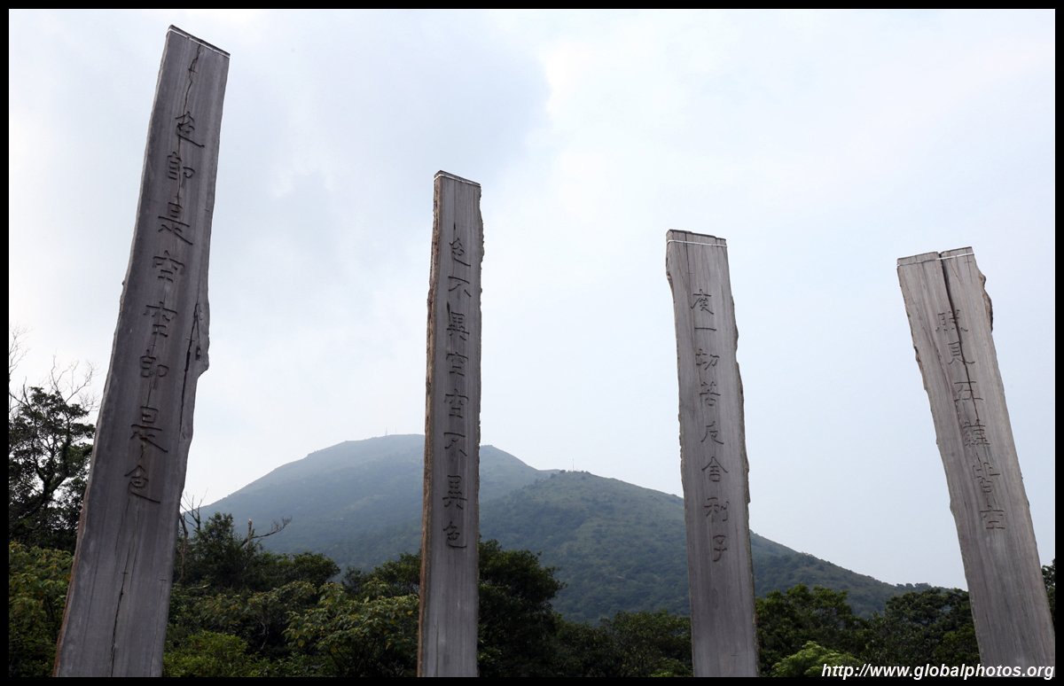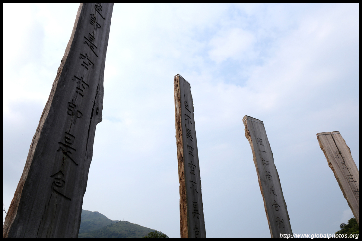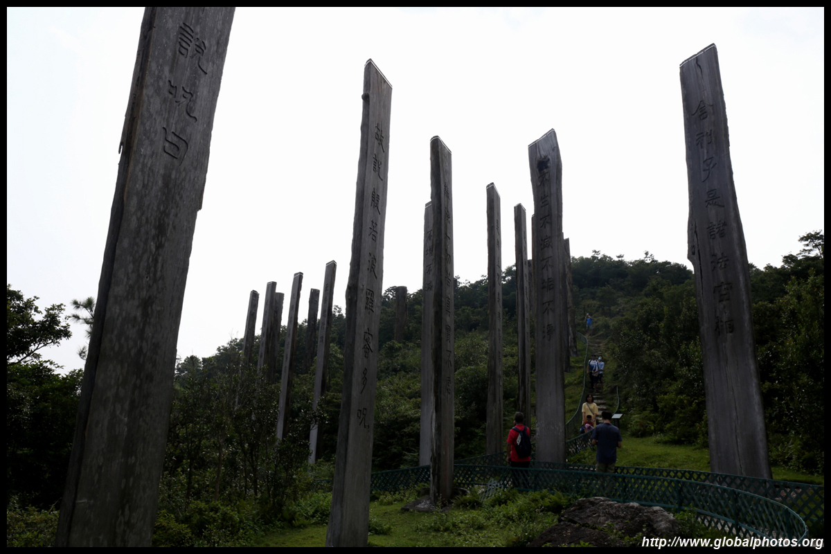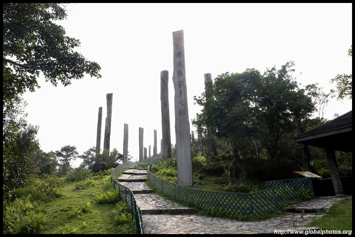 The Wisdom Path is a series of 38 wood columns with calligraphy from the Heart Sutra. Originally in Sanskrit, it was translated into Chinese during the Tang Dynasty.