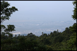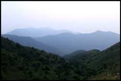 Backtracking, head back to the intersection before the abandoned buildings and turn right into the mountains. You may encounter a monk driving carts along the way. Past the public toilet, you will see a monastery gate. To the left is a defined dirt path into the mountains. Take that and it will be a long walk around the mountain.