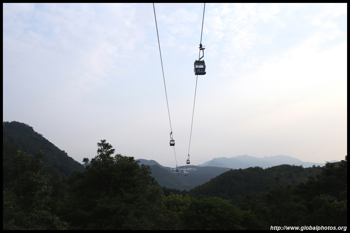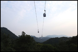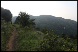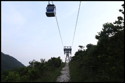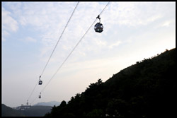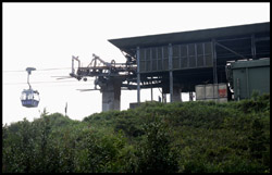 As you turn around the side of the mountain, you will see the cable car emerge. It is possible to start the hike nearer to the cable car station without having to go around this mountain, which is shorter as well.