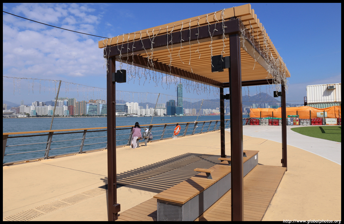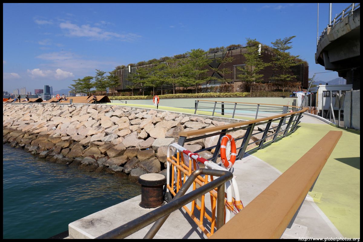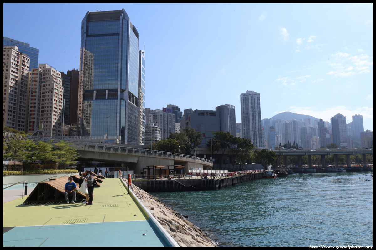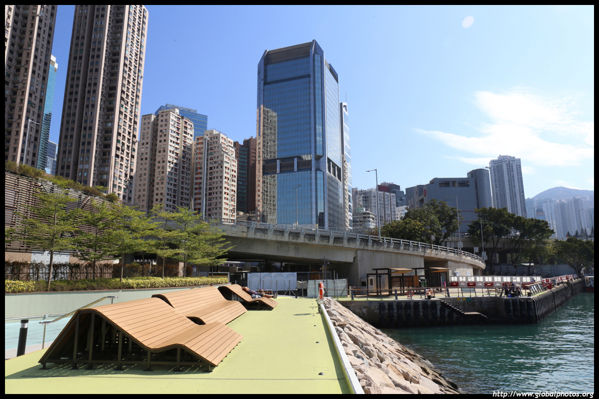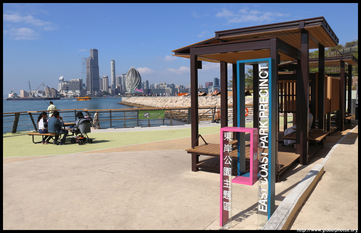 The Island Eastern Corridor runs just off the coastline from North Point to Quarry Bay, cutting off the public's direct access to the harbour views. While in recent years some improvements have been made with more public space along the coast looking at the highway bridge, a new park opened in September 2021 in front of the highway with unobstructed skyline and harbour views.Phase 1 of the East Coast Park Precinct is about 9800 square metres large and was formerly a construction site for the Central-Wan Chai Bypass. It includes the first breakwater open to the public in the harbour, stretching about 100m long towards the bypass' ventilation shaft. The park is a bit hidden from the existing city. Entry points are at the ends of Watson Road and Hing Fat Street.
