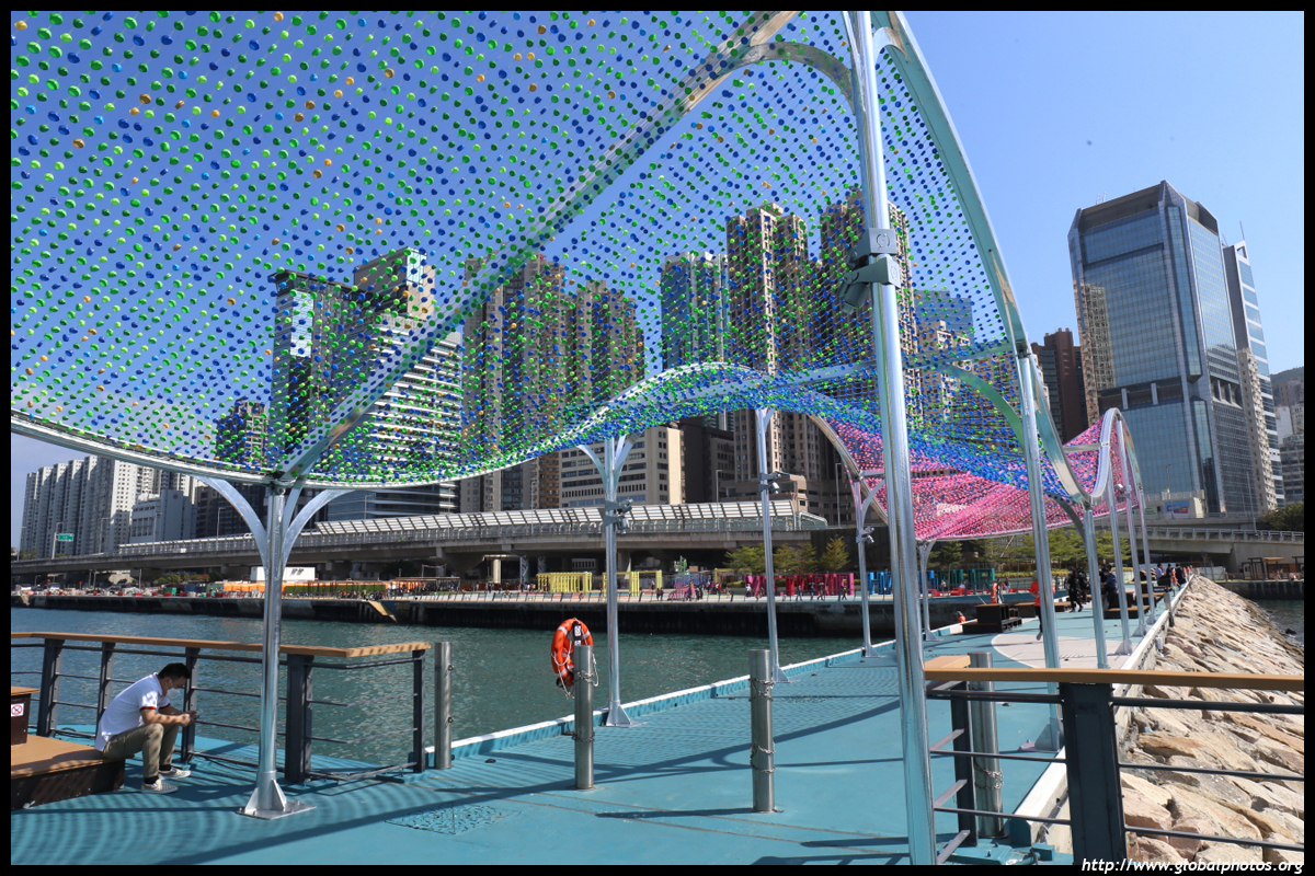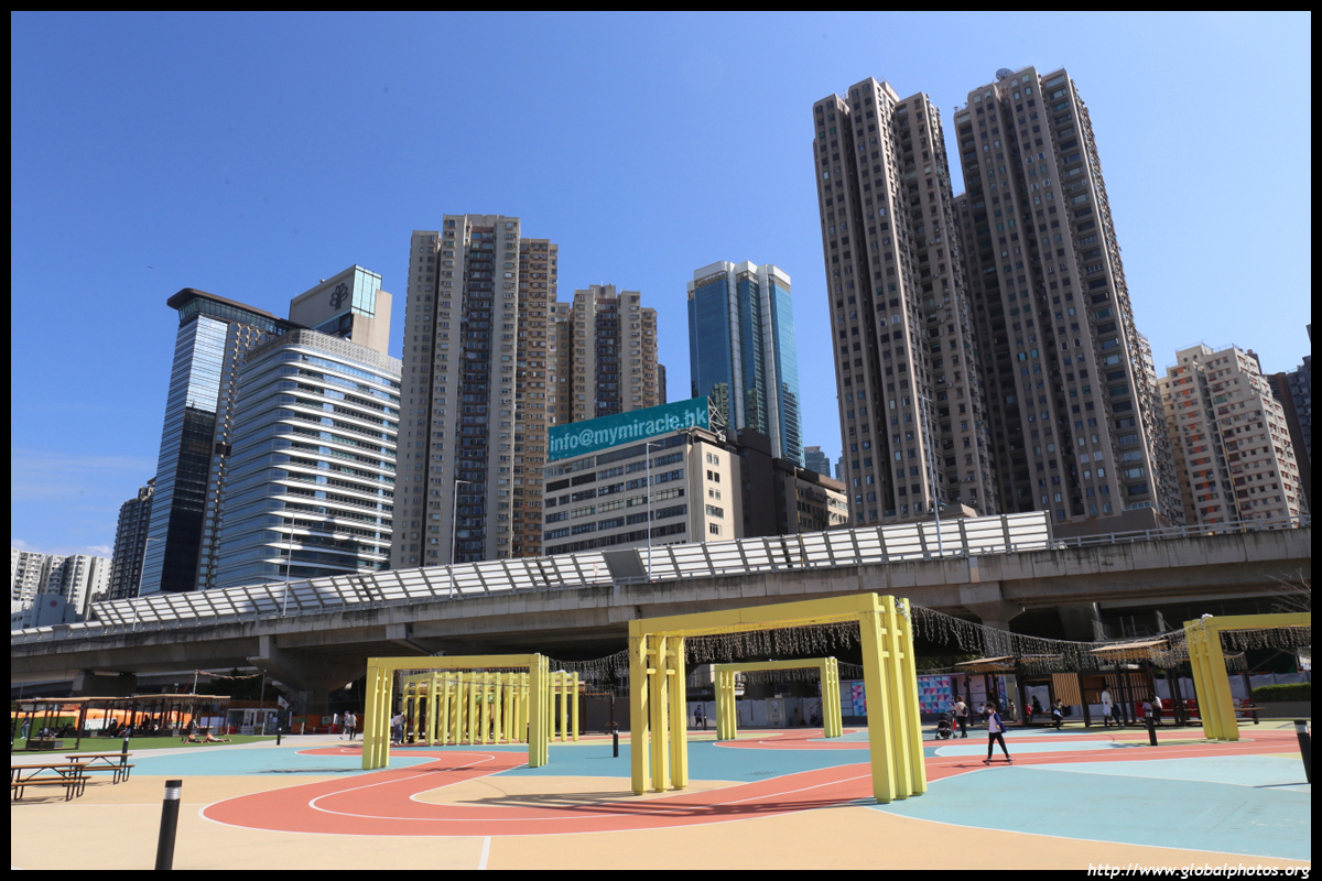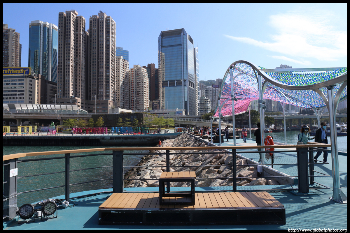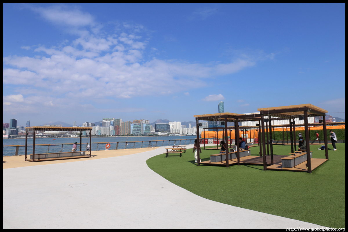 The Island Eastern Corridor runs just off the coastline from North Point to Quarry Bay, cutting off the public's direct access to the harbour views. While in recent years some improvements have been made with more public space along the coast looking at the highway bridge, a new park opened in September 2021 in front of the highway with unobstructed skyline and harbour views.Phase 1 of the East Coast Park Precinct is about 9800 square metres large and was formerly a construction site for the Central-Wan Chai Bypass. It includes the first breakwater open to the public in the harbour, stretching about 100m long towards the bypass' ventilation shaft. The park is a bit hidden from the existing city. Entry points are at the ends of Watson Road and Hing Fat Street.