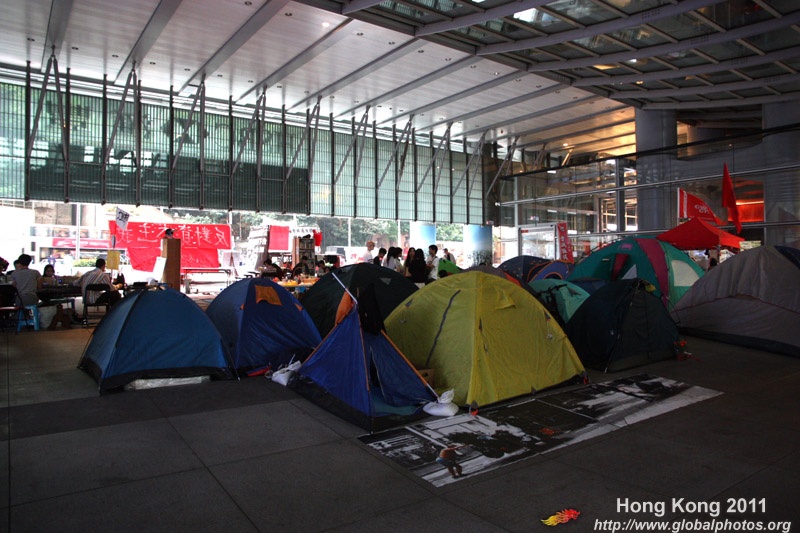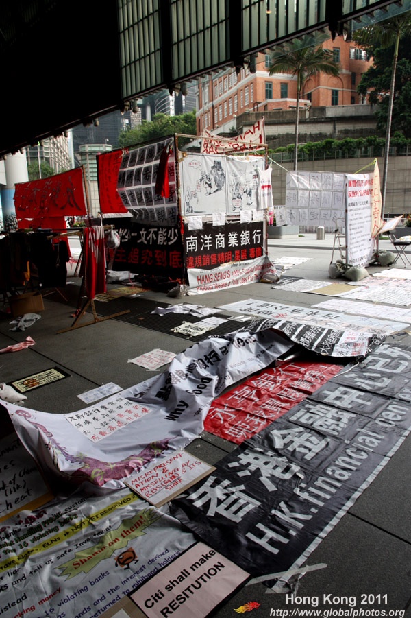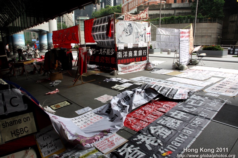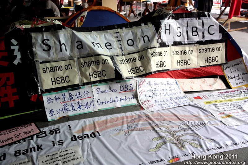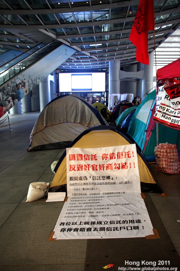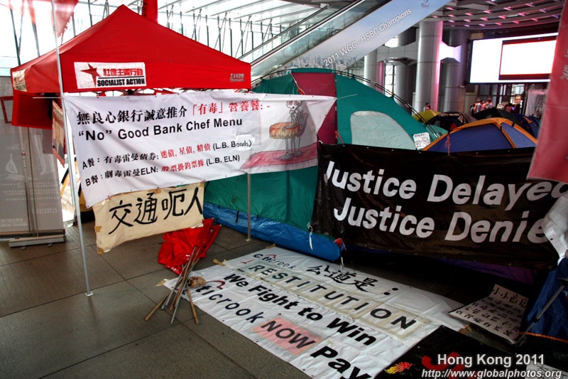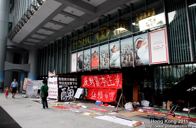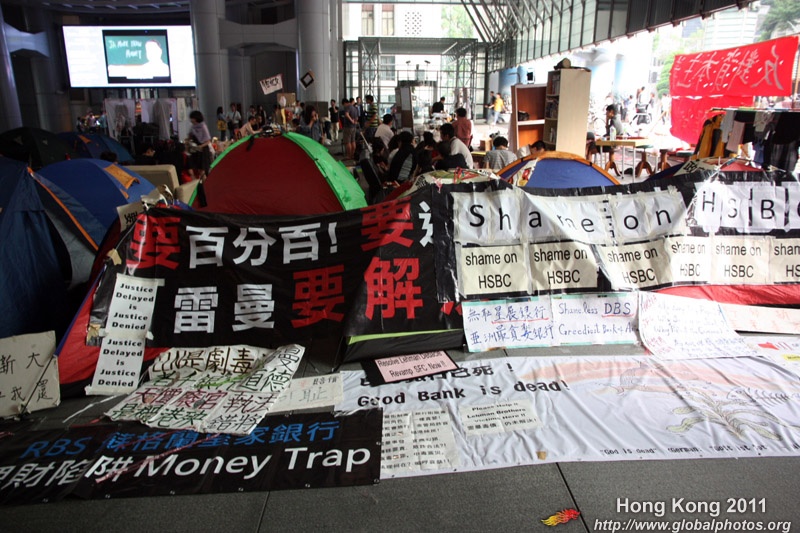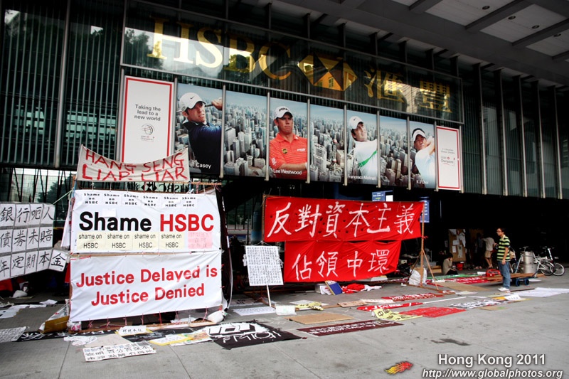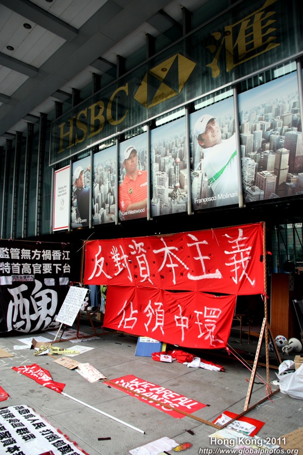 The global Occupy movement has taken over the HSBC headquarter's ground floor. While the number of campers is not large, their message against social injustice and corporate greed is heard loud and clear.