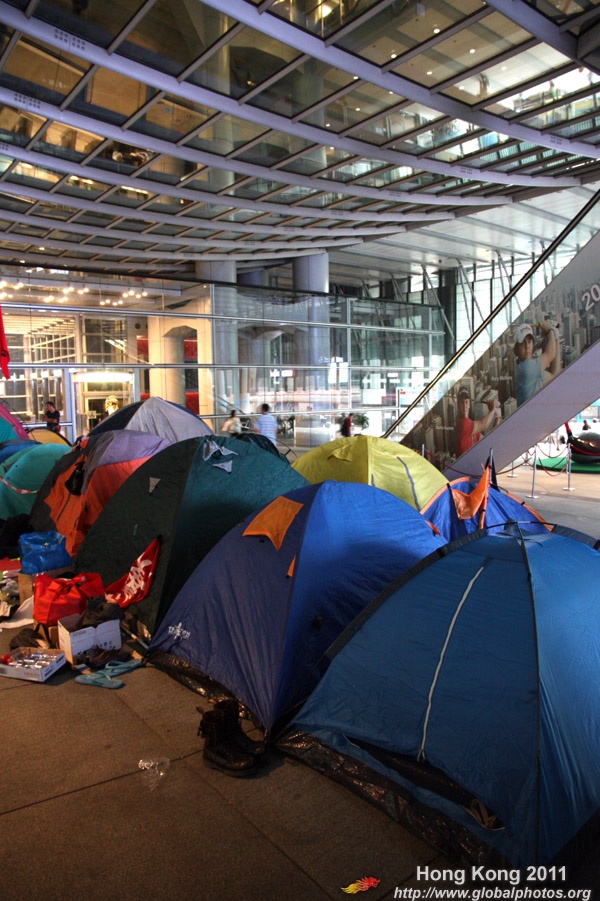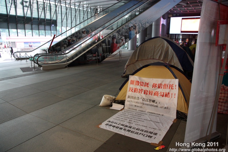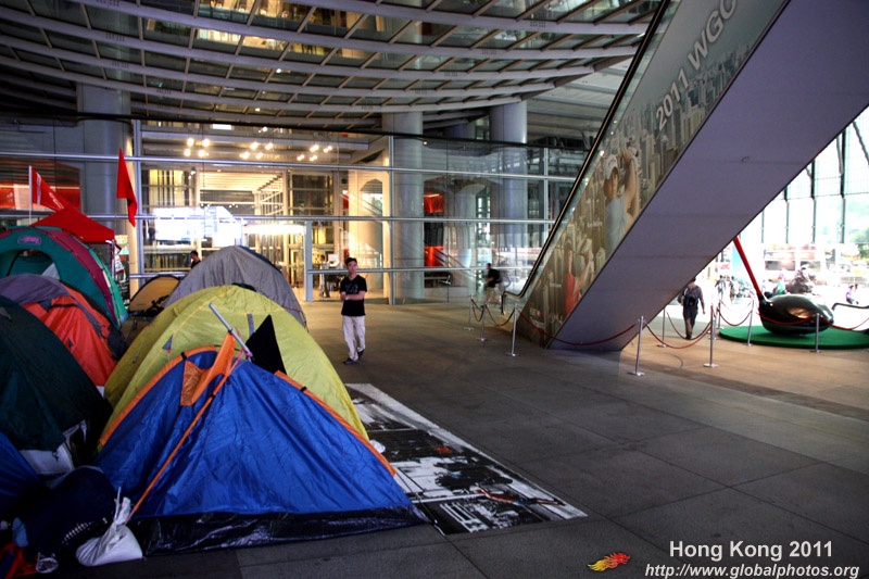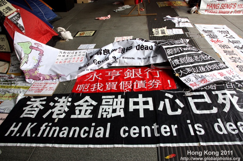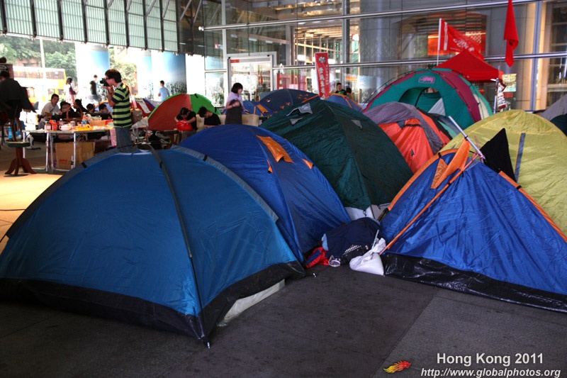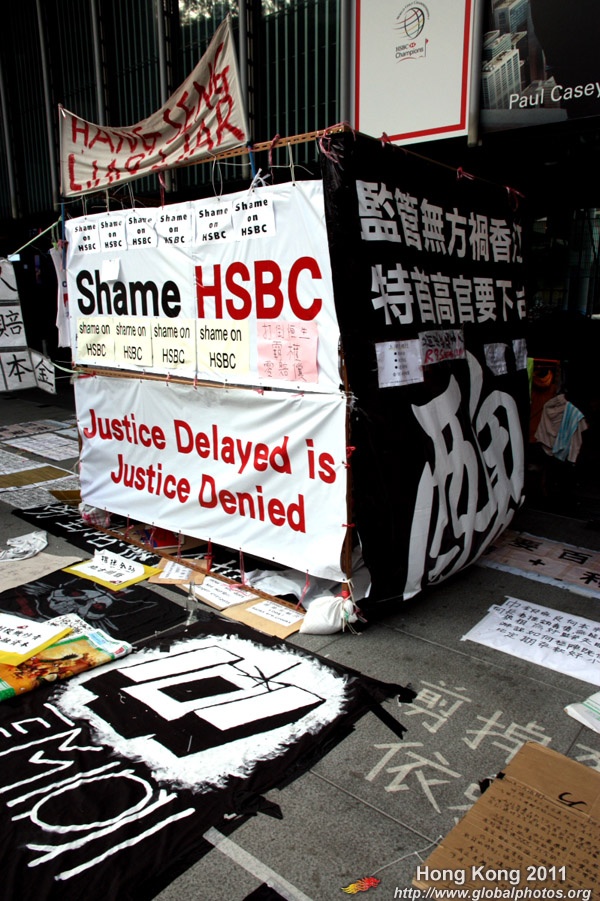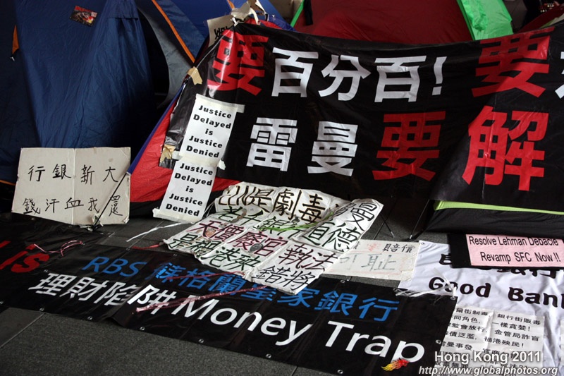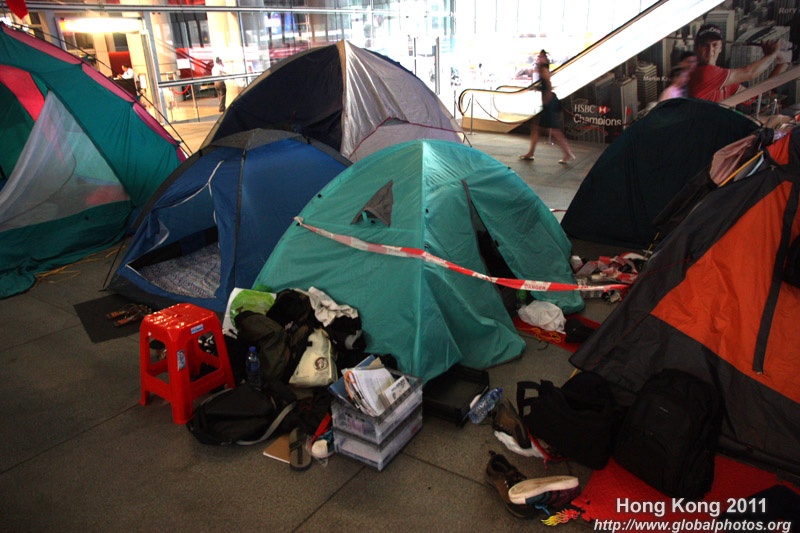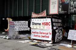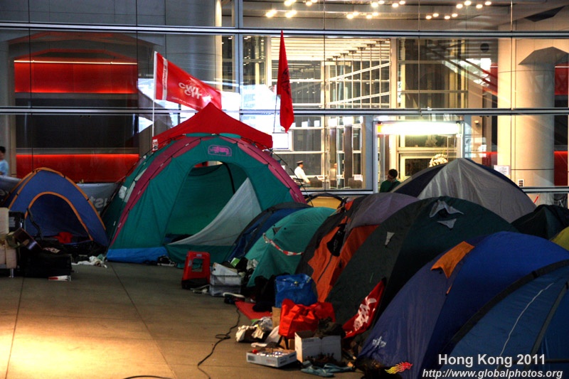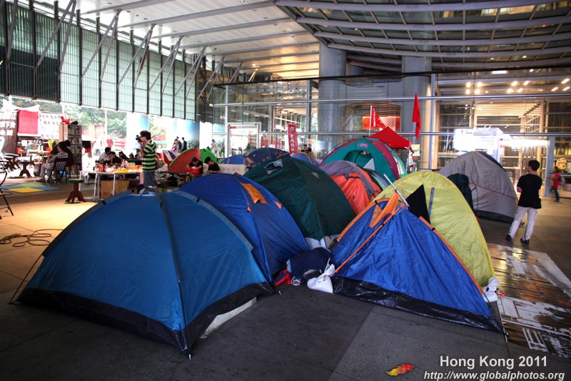 The global Occupy movement has taken over the HSBC headquarter's ground floor. While the number of campers is not large, their message against social injustice and corporate greed is heard loud and clear.
