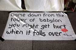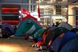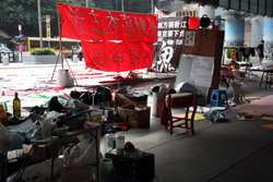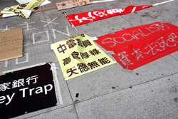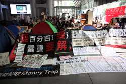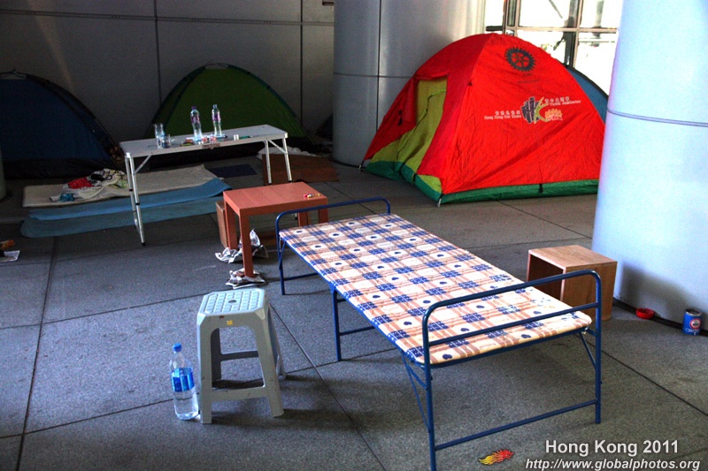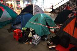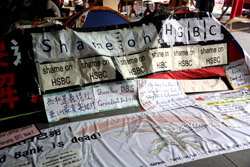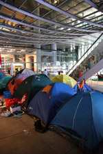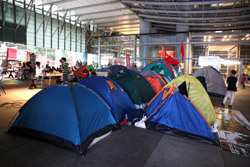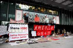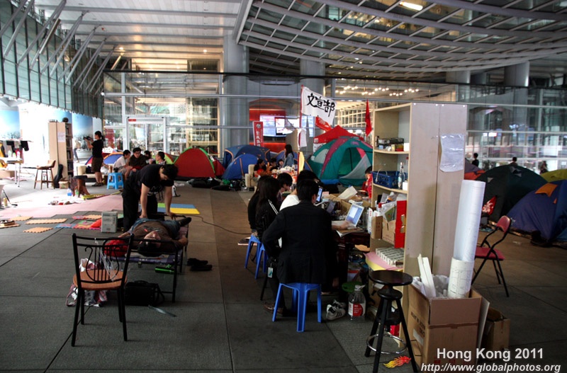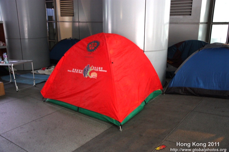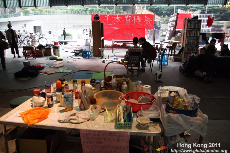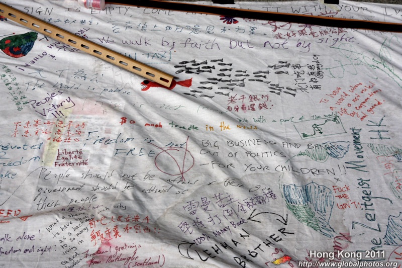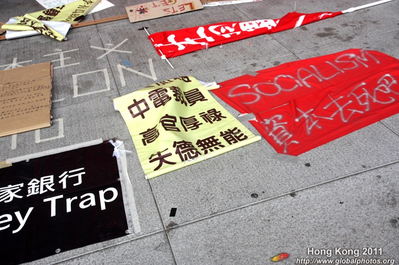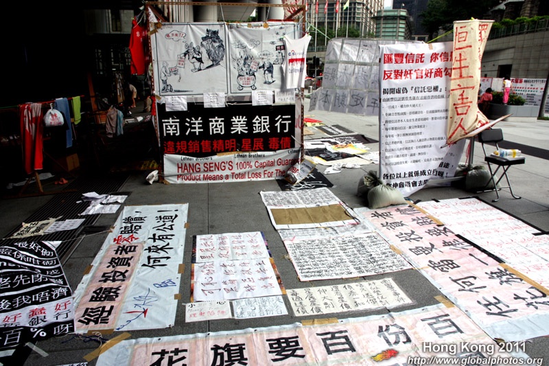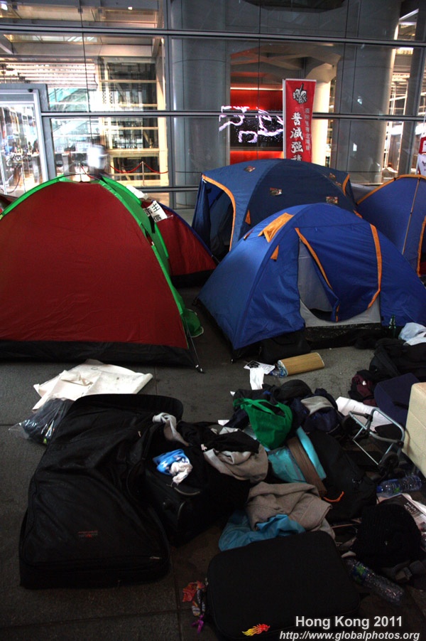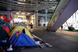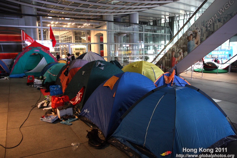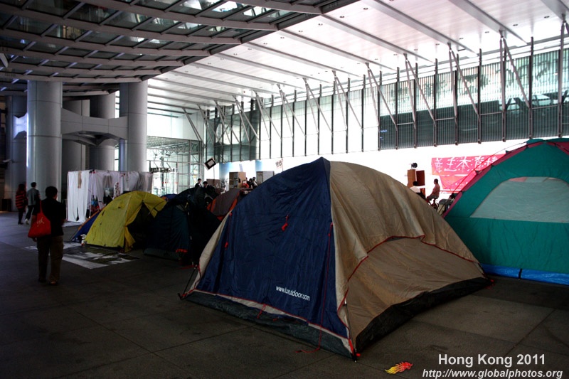The global Occupy movement has taken over the HSBC headquarter's ground floor. While the number of campers is not large, their message against social injustice and corporate greed is heard loud and clear.