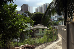 A short walk away, Sheung Cheung Wai was a walled village dating from 200 years ago. The layout was symmetrical with rows of houses enclosed inside. The moat has since been filled in, and many redevelopments have taken place.