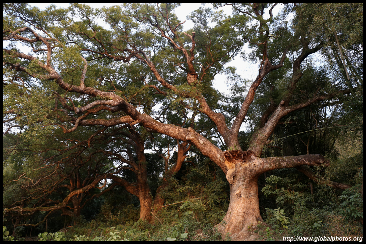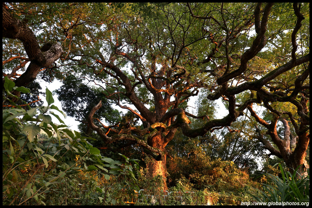 While in the area, drive a bit further down towards the highway barrier to find these very old trees magnificently spread out behind a few houses.