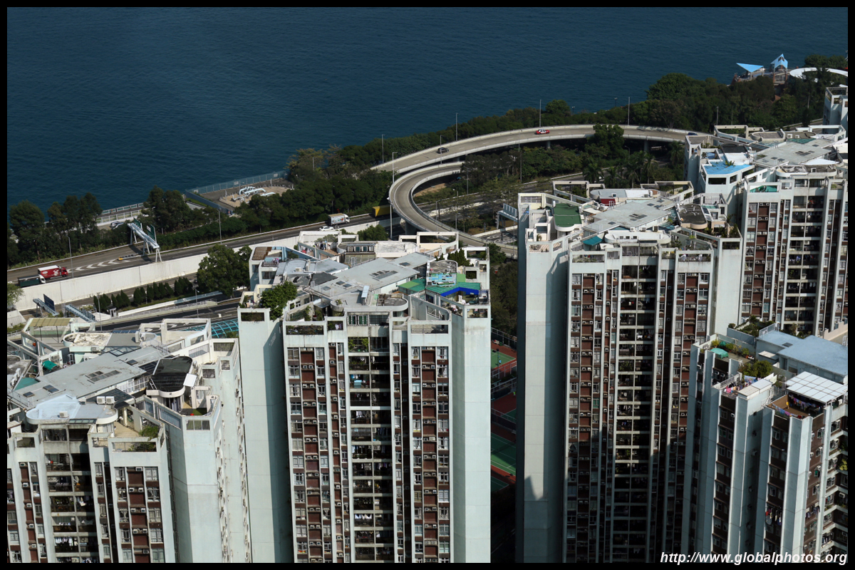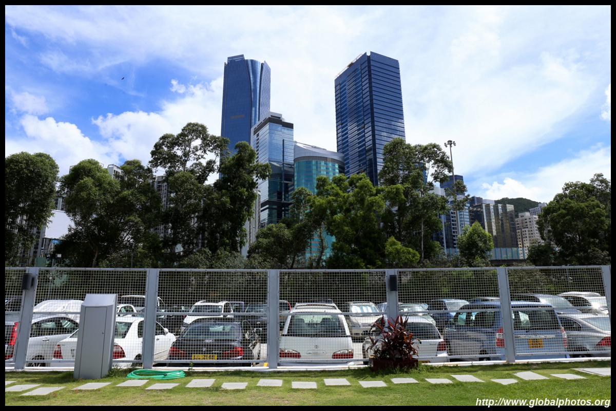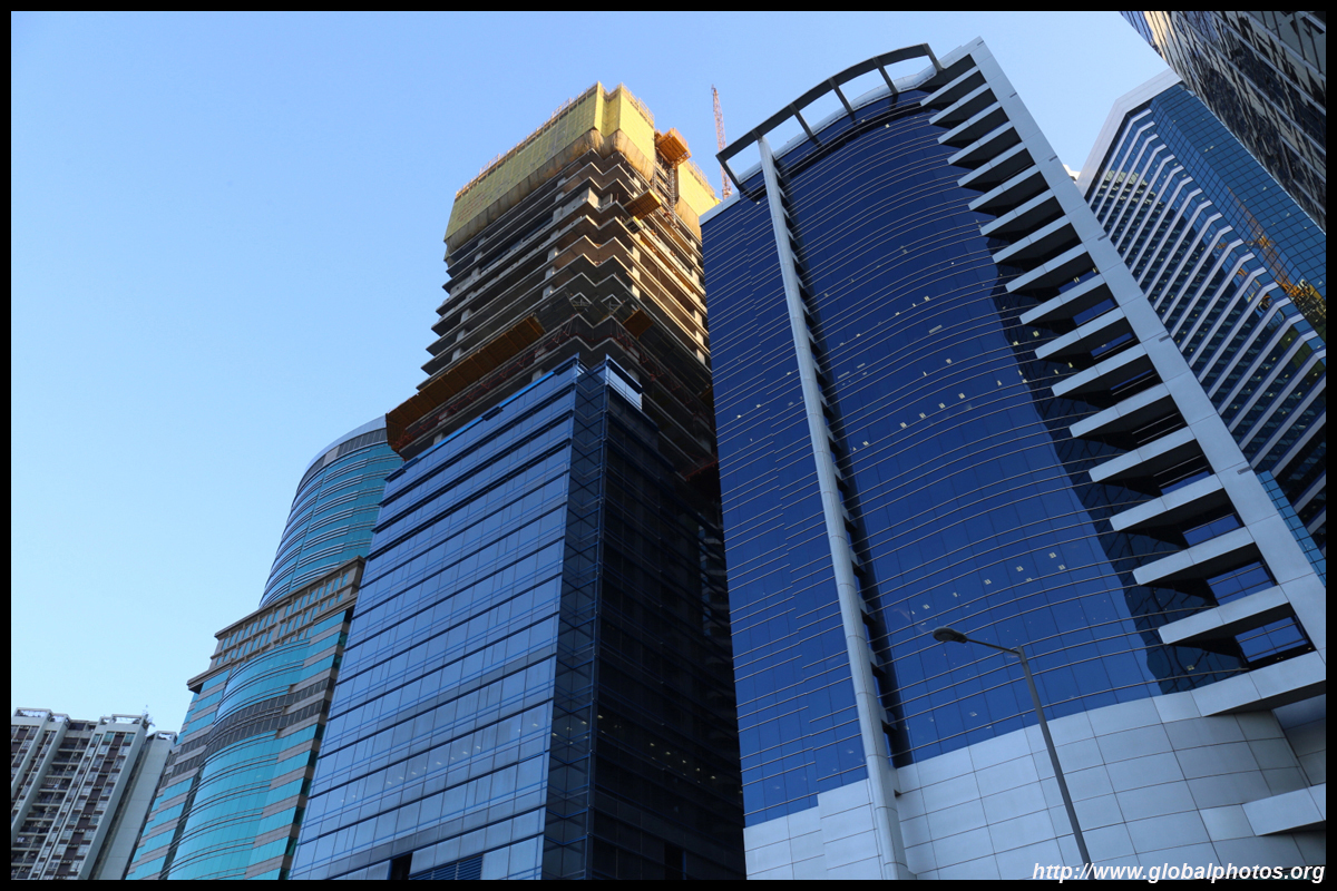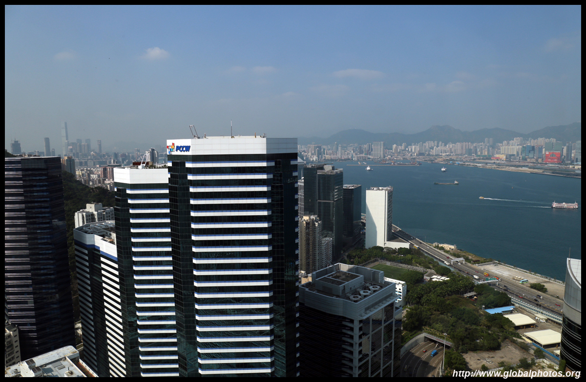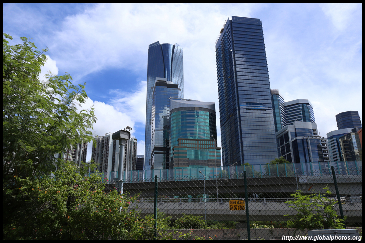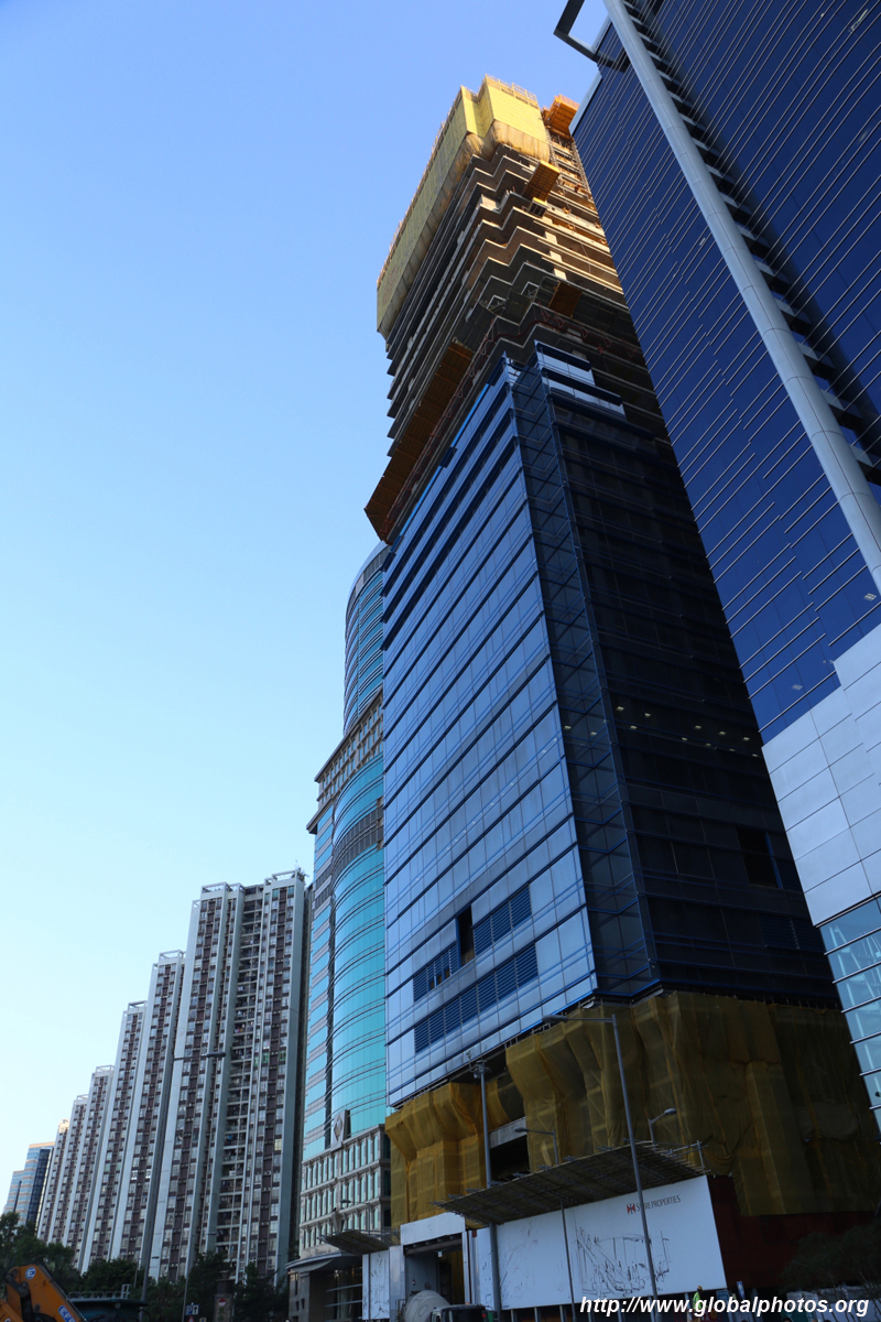 One Island East is the tallest office building in the district with 59 floors. The sky lobby on the 37th floor is a public space with a restaurant.
