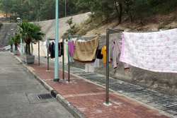 Residents air out their laundry in the open. With cooler autumn weather in full swing, these clothes should dry in no time.